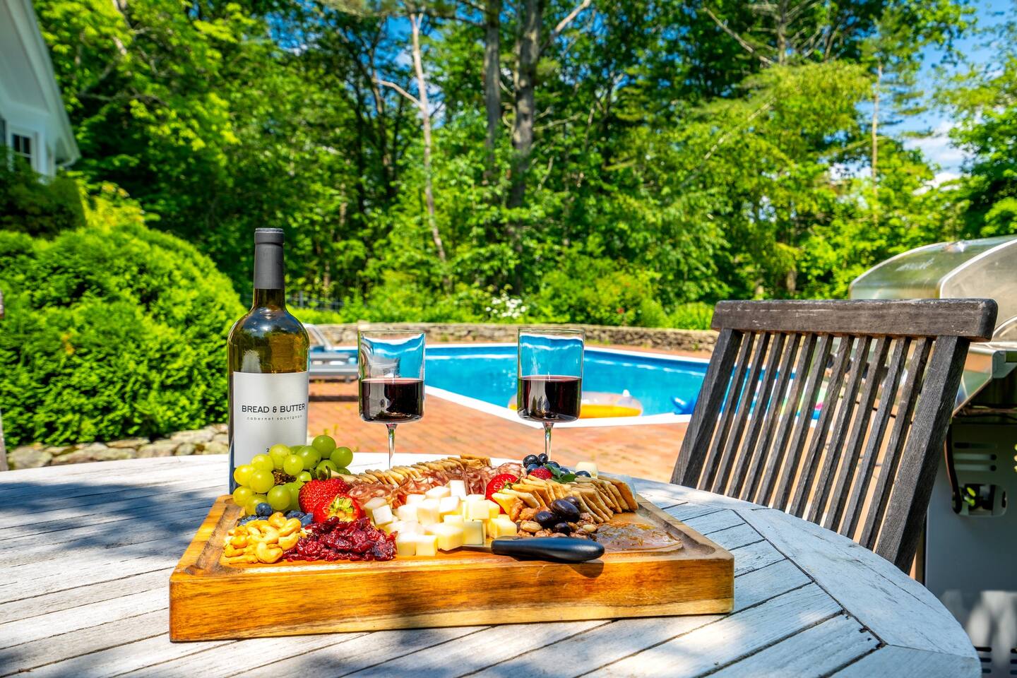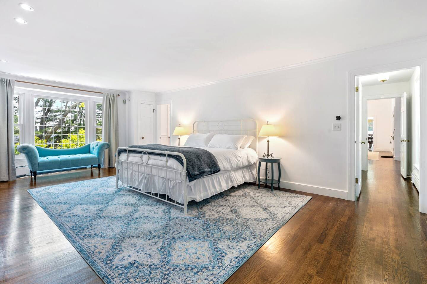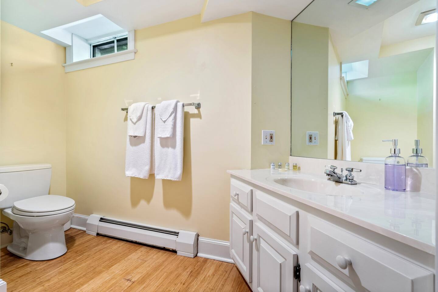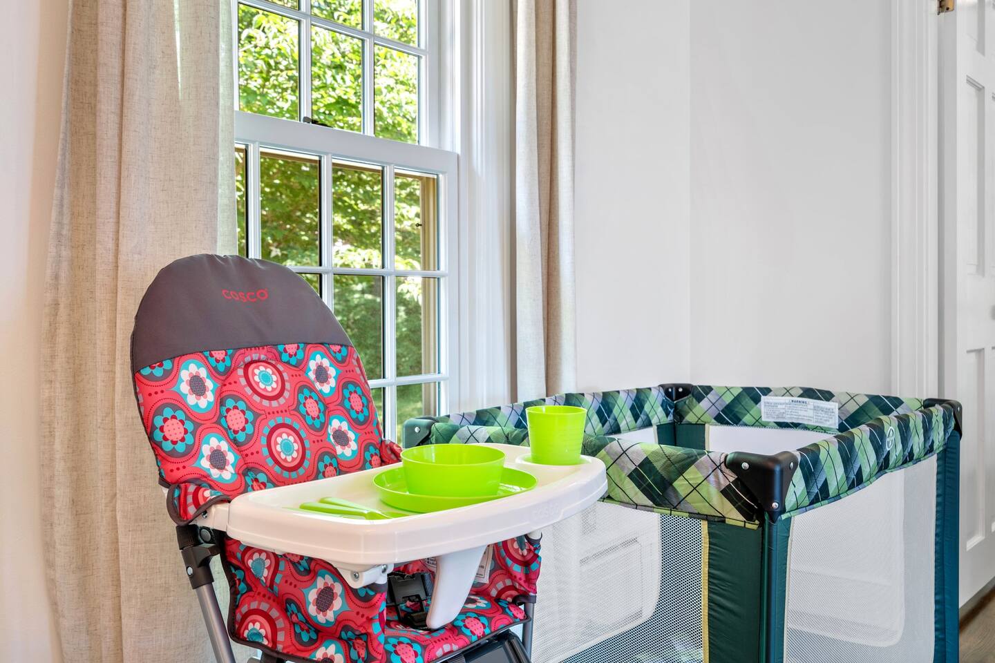 Guests will have access to all described rooms and amenities, including a washer/dryer and the two-car garage. Please note the pool is only available from June 15th through the first week in September. There are three window AC units installed in the summer months - one in the master bedroom, and one in each of the upstairs bedrooms. The entire basement has central air. The other areas of the house (first floor living rooms, dining room and kitchen) do not have AC as they are large, open spaces. The house generally gets a good breeze in the summer and opening the windows cools it down pretty well. We also have portable fans available for guest use. You’ll receive a code for the smart lock for secure and easy entrance into the home.
