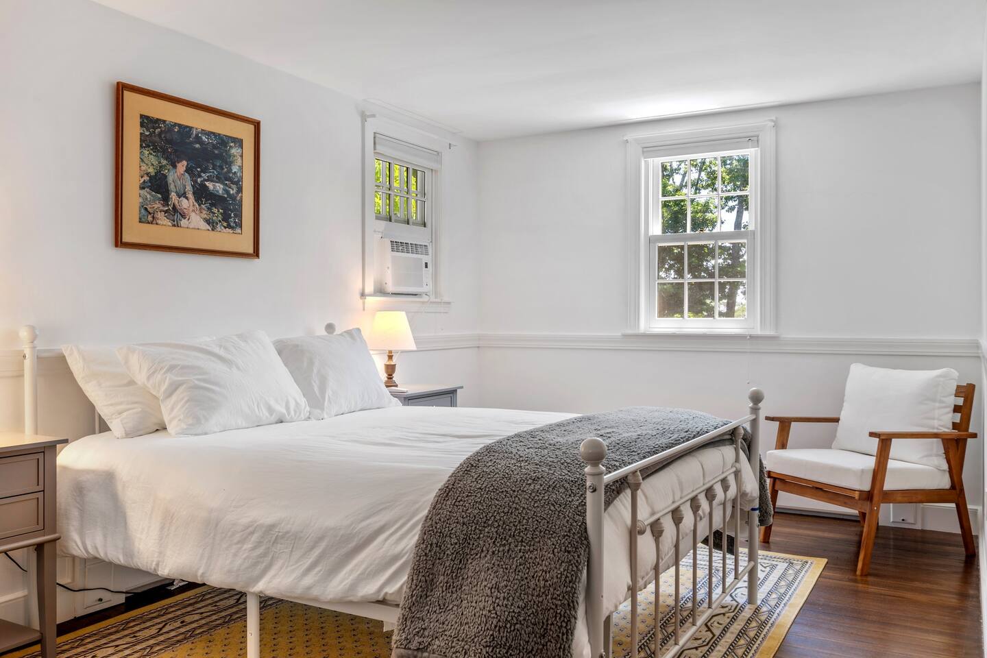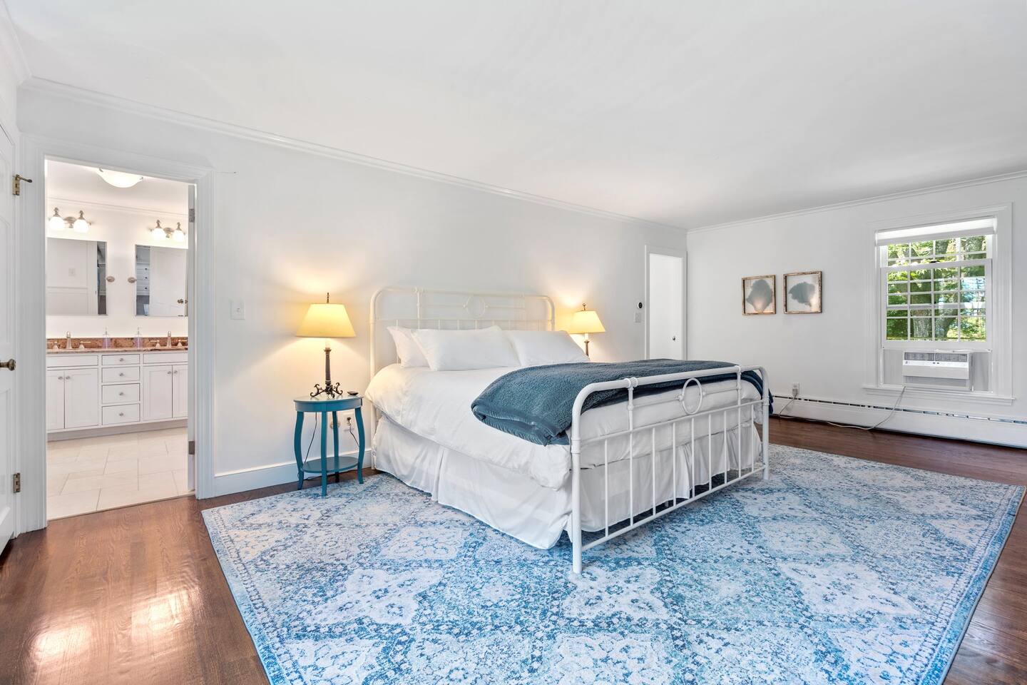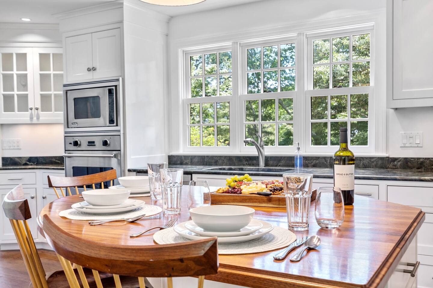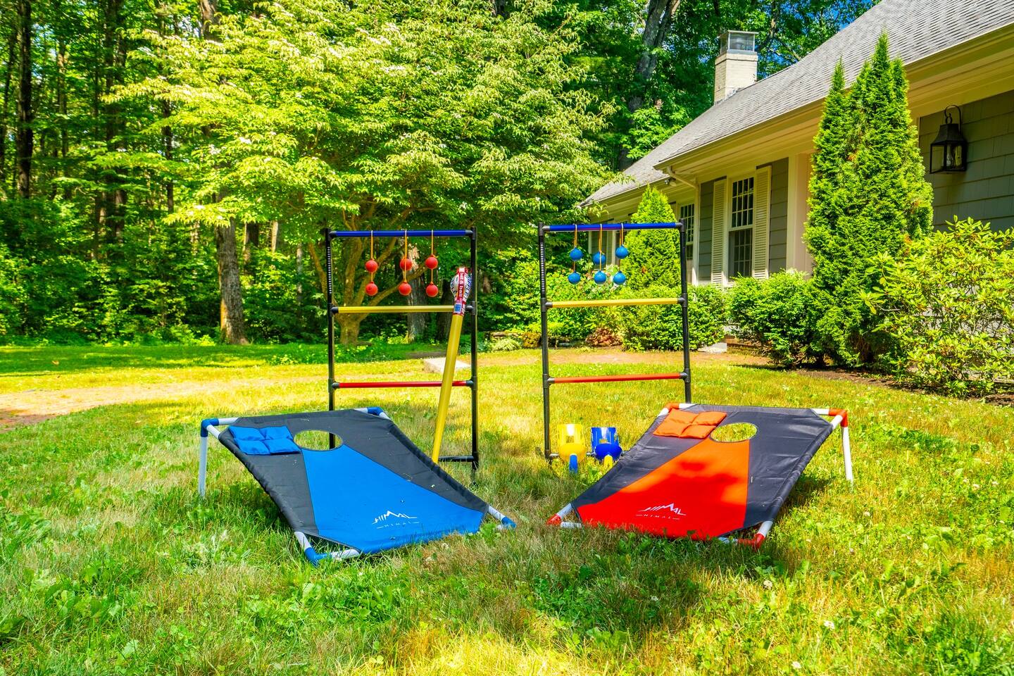 Guests will have access to all described rooms and amenities, including a washer/dryer and the two-car garage. Please note the pool is only available from June 15th through the first week in September. There are three window AC units installed in the summer months - one in the master bedroom, and one in each of the upstairs bedrooms. The entire basement has central air. The other areas of the house (first floor living rooms, dining room and kitchen) do not have AC as they are large, open spaces. The house generally gets a good breeze in the summer and opening the windows cools it down pretty well. We also have portable fans available for guest use. You’ll receive a code for the smart lock for secure and easy entrance into the home.