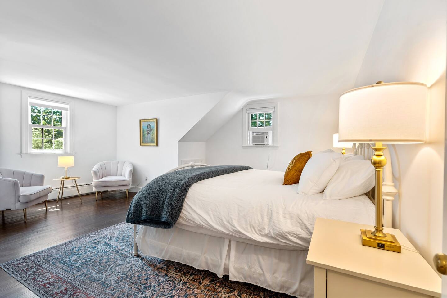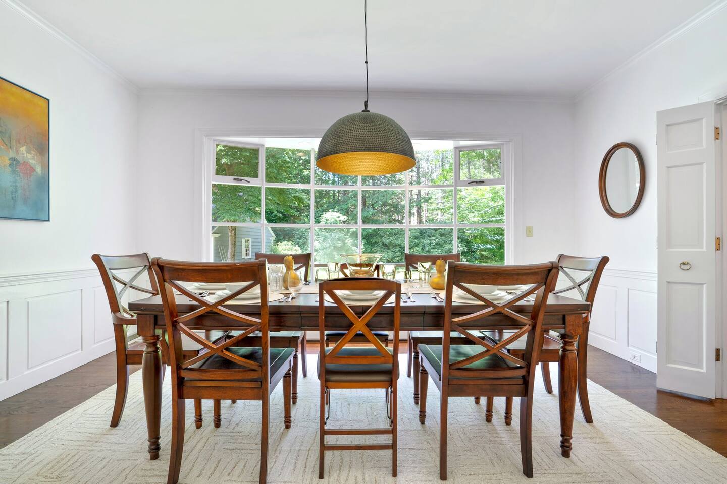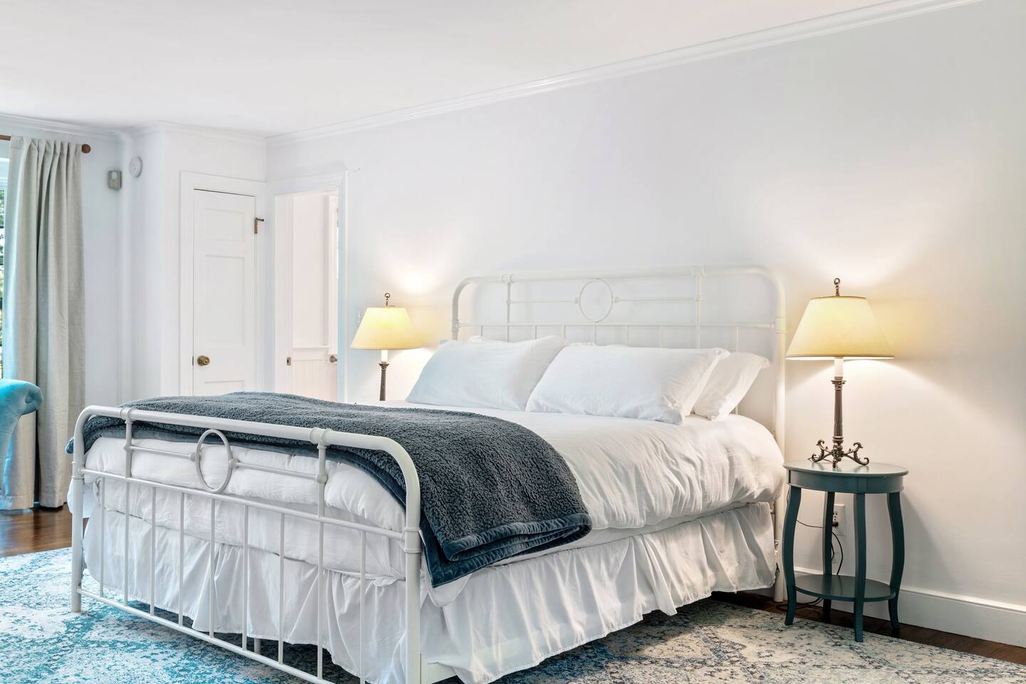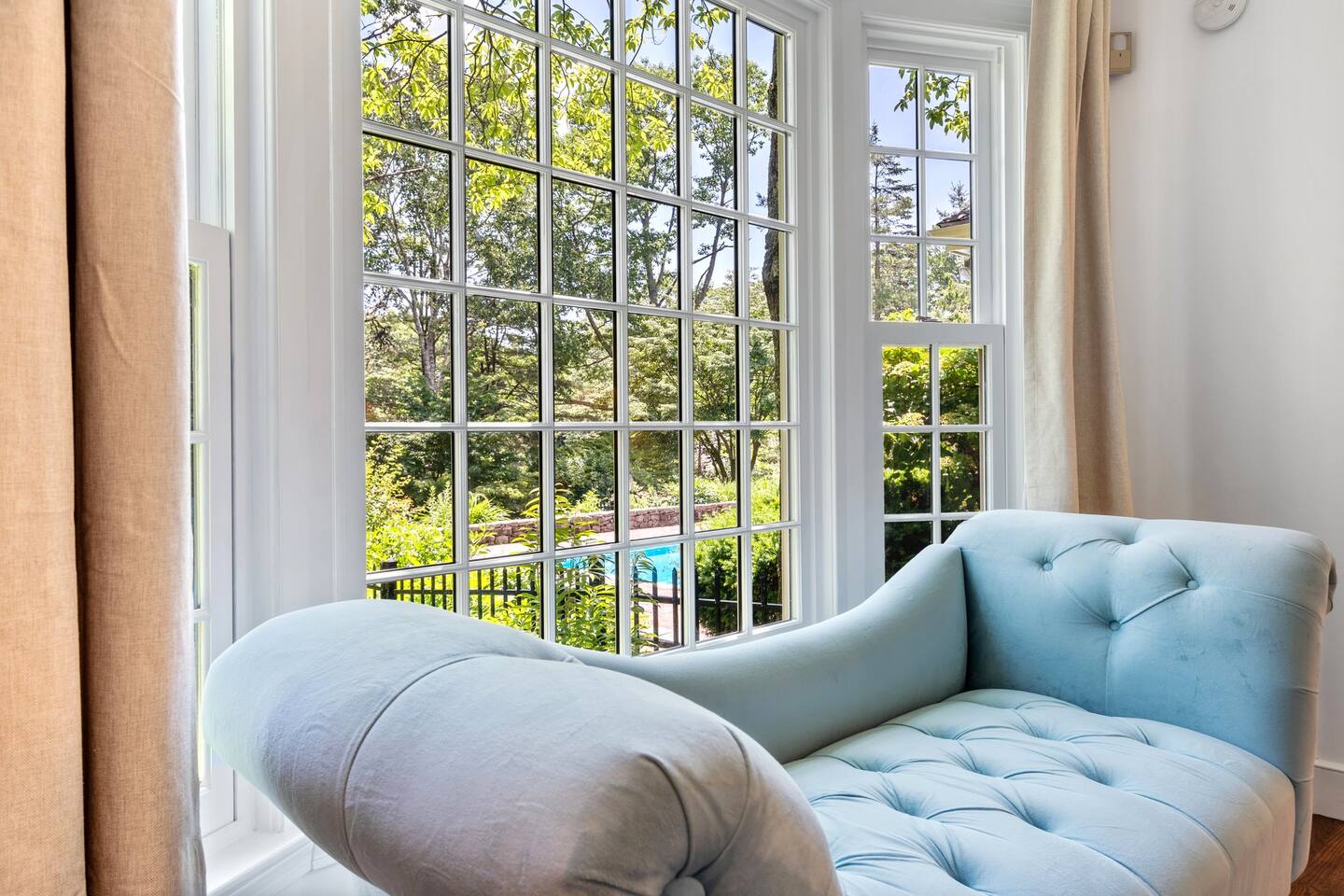 Guests will have access to all described rooms and amenities, including a washer/dryer and the two-car garage. Please note the pool is only available from June 15th through the first week in September. There are three window AC units installed in the summer months - one in the master bedroom, and one in each of the upstairs bedrooms. The entire basement has central air. The other areas of the house (first floor living rooms, dining room and kitchen) do not have AC as they are large, open spaces. The house generally gets a good breeze in the summer and opening the windows cools it down pretty well. We also have portable fans available for guest use. You’ll receive a code for the smart lock for secure and easy entrance into the home.
