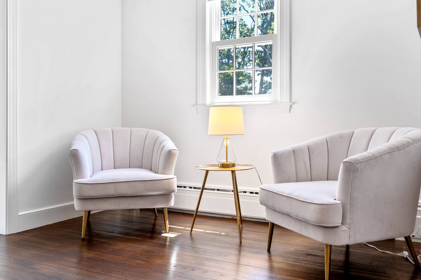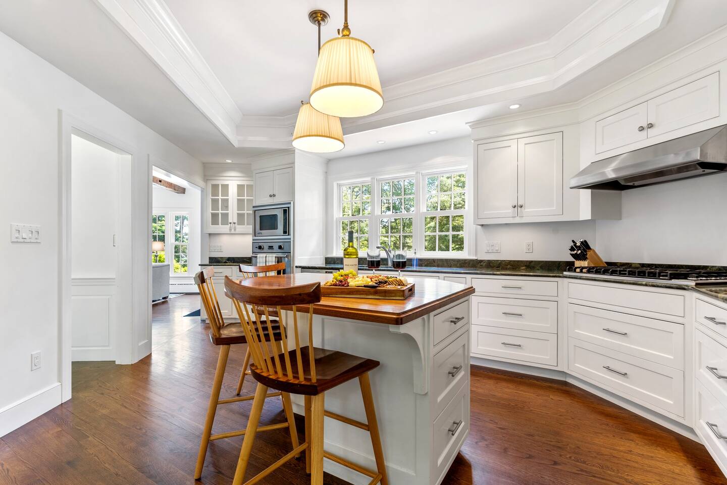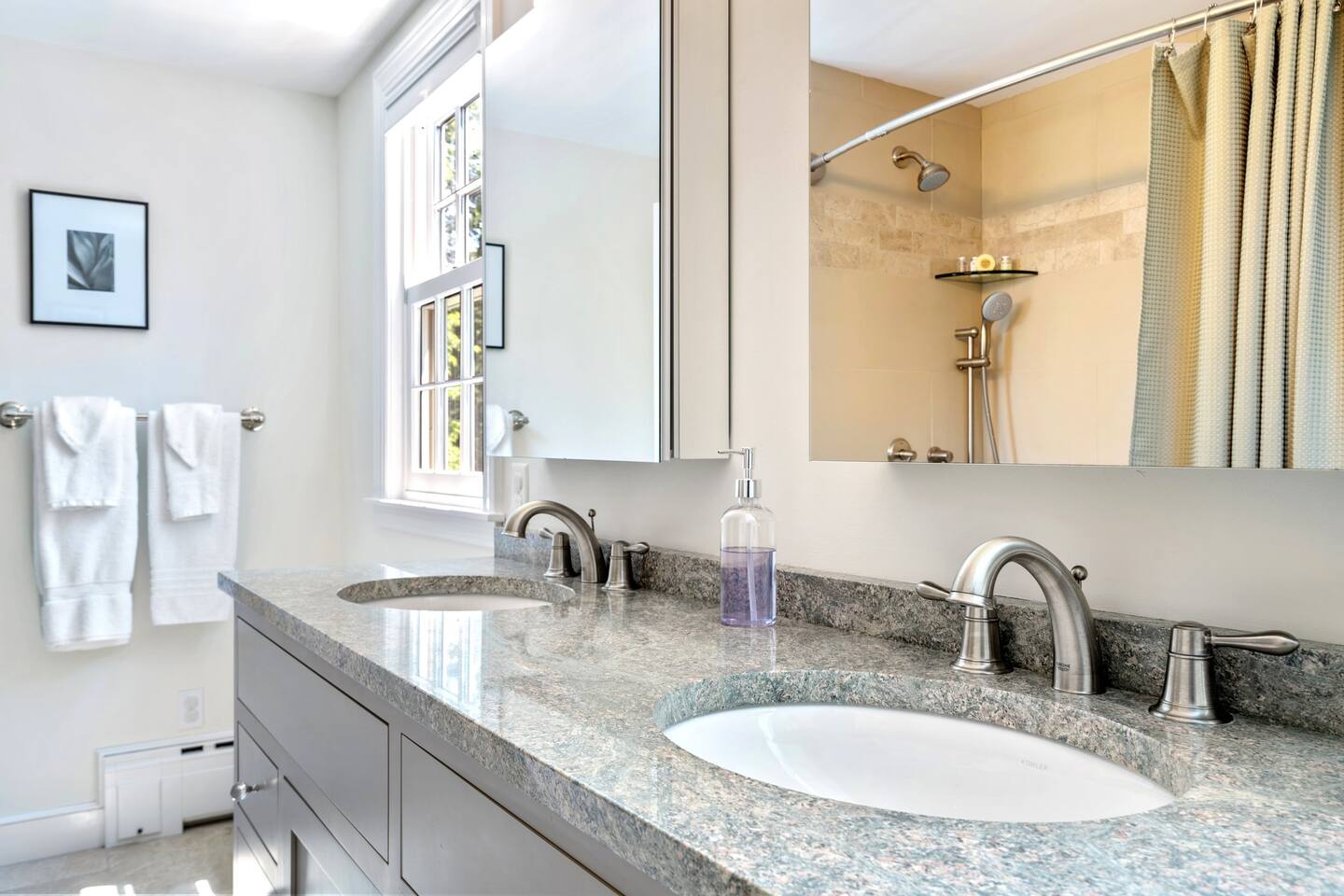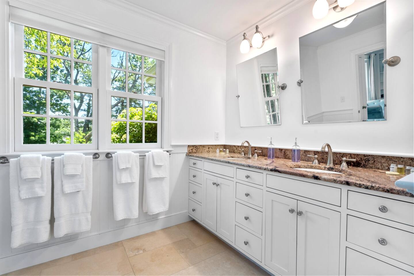 Guests will have access to all described rooms and amenities, including a washer/dryer and the two-car garage. Please note the pool is only available from June 15th through the first week in September. There are three window AC units installed in the summer months - one in the master bedroom, and one in each of the upstairs bedrooms. The entire basement has central air. The other areas of the house (first floor living rooms, dining room and kitchen) do not have AC as they are large, open spaces. The house generally gets a good breeze in the summer and opening the windows cools it down pretty well. We also have portable fans available for guest use. You’ll receive a code for the smart lock for secure and easy entrance into the home.