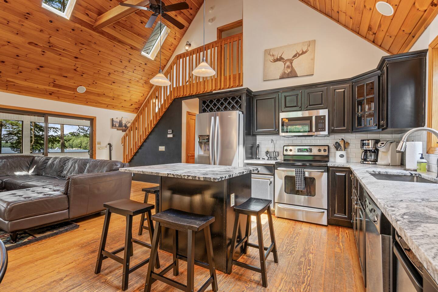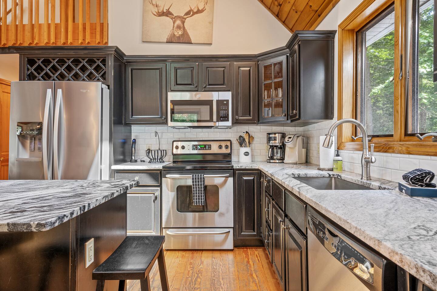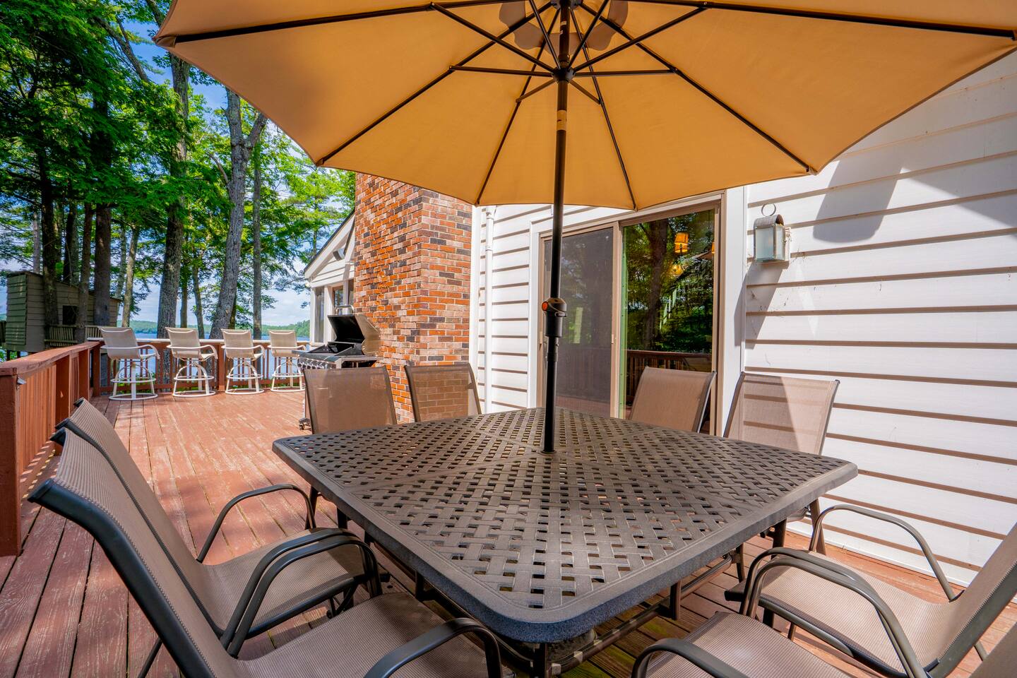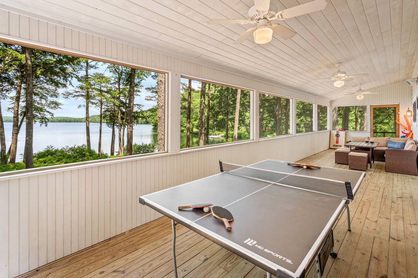 KEY FEATURES: 5 Minutes to Naples Causeway 9 Minutes to Sebago Lake State Park 13 Minutes to Point Sebago Golf Club 25 Minutes to Pleasant Mountain Ski Resort 55 Minutes to Portland 💤 Sleeps 12 – 1 King, 2 Queen, 1 Full, 5 Twins across 4 thoughtfully designed bedrooms 🌊 530’ of private waterfront on crystal-clear Trickey Pond with large dock—ideal for fishing, swimming, and sunbathing 🌲 1.7 acres with a fully fenced backyard down to the water ☕ Fully stocked kitchen with all essentials for home-cooked meals 🔥 Lake-facing deck with gas grill, outdoor dining table, and unbeatable water views 📺 350MB WiFi and 2 Smart TVs – perfect for movie nights or working remotely 🍼 Family-ready with pack ’n play, high chair & kids’ toys 🧺 Washer/dryer – great for longer stays or post-lake laundry 🚤 Minutes from the best of Naples: dining, shopping, boating & more 🏓 Ping pong table, cornhole, and fire pit for outdoor fun ❄️ Central air to keep cool on warm summer days ☆☆ BEDROOMS ☆☆ Everyone will rest comfortably in this spacious, lake-inspired home with four private bedrooms and extra sleeping space in the lower level. Primary Bedroom (2nd floor): King bed with lake views, dresser, and closet Bedroom 2 (2nd floor): Twin-over-full bunk bed with dresser Bedroom 3 (1st floor): Queen bed with two closets Bedroom 4 (1st floor): Queen bed with dresser and closet Basement: Two twin bunk beds in an open living area ☆☆ BATHROOMS ☆☆ Three full bathrooms ensure your group has plenty of space to refresh and reset. Bathroom 1: Shower/tub combo and double sinks, centrally located on the first floor near bedrooms 3 and 4 Bathroom 2: Walk-in shower just outside the upstairs bedrooms Bathroom 3: Walk-in shower in the basement All bathrooms are stocked with ample towels, shampoo, conditioner, and body wash for a hassle-free stay. ☆☆ KITCHEN, DINING & LIVING ROOMS ☆☆ The open-concept main floor brings everyone together—whether you're cooking, playing games, or watching the sunset. The bright and airy kitchen is fully equipped with modern appliances, cookware, and a coffee bar for your morning latte or afternoon tea. The dining table seats 8 comfortably, and the kitchen island provides seating for 4 more. The spacious living room invites you to kick back after a day on the lake, with a plush sectional, 65" Smart TV, and big lake-facing windows to enjoy the view. ☆☆ OUTDOOR SPACE ☆☆ Enjoy Maine’s clean, fresh air from the sunny lake-facing deck, complete with a gas grill and dining table for 8. Sip coffee or mix up cocktails on the screened-in portion of the deck with another casual seating area and a ping pong table. Venture down closer to the lake to the fire pit with seating for 6+ or head down the wooden boardwalk down to the large, private dock. Trickey Pond has received Maine’s highest water clarity designation, making it one of the cleanest and clearest lakes in the Northeast. ☆☆ ENHANCE YOUR STAY ☆☆ Looking to add something special to your Maine adventure? We’ve partnered with trusted local businesses to offer: 🛶 Kayak & SUP Rentals – 🍽️ Private Chef – Treat your group to a gourmet night in 💆🏻♀️ In-Home Massage – Relaxation delivered right to your door Book your stay today and make our serene, family-friendly Naples retreat your home base for exploring everything Maine has to offer—from the tranquil waters of Trickey Pond to Portland’s award-winning restaurants and Sebago’s outdoor adventures.