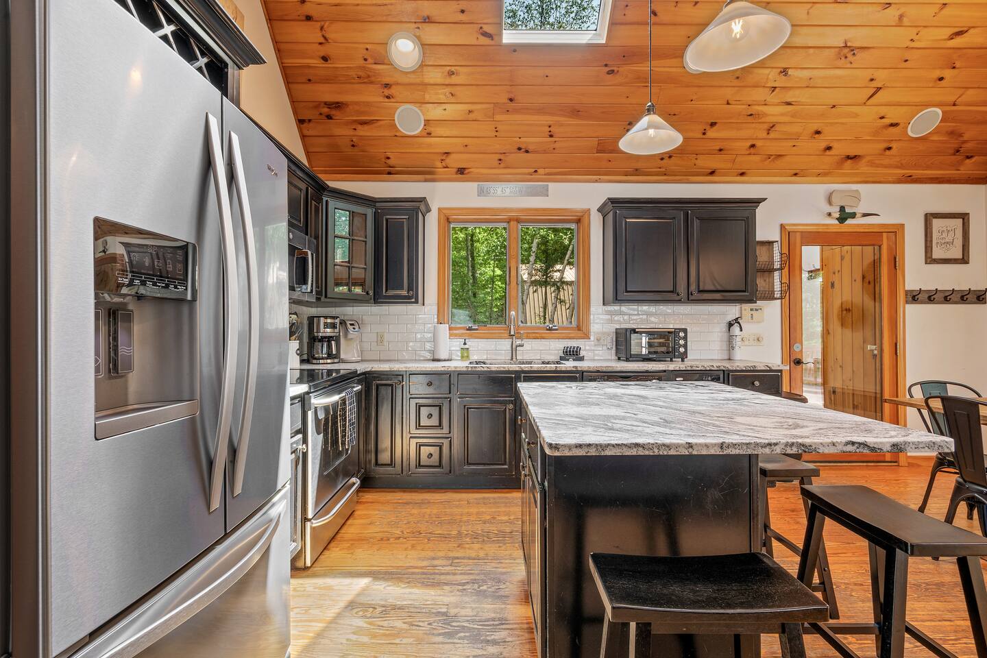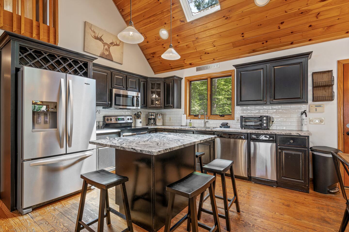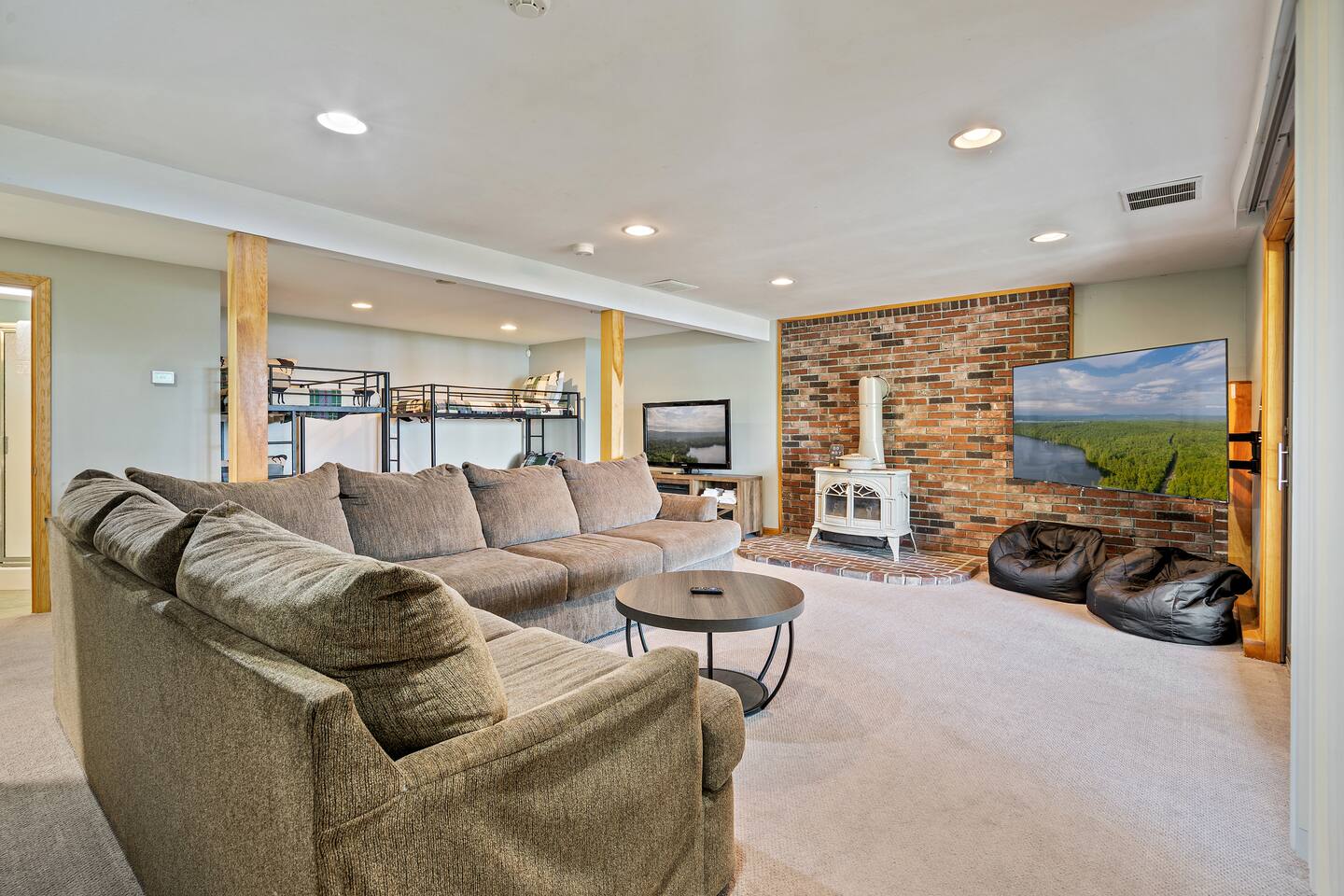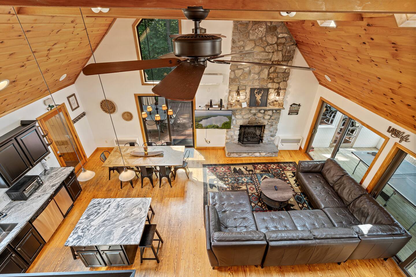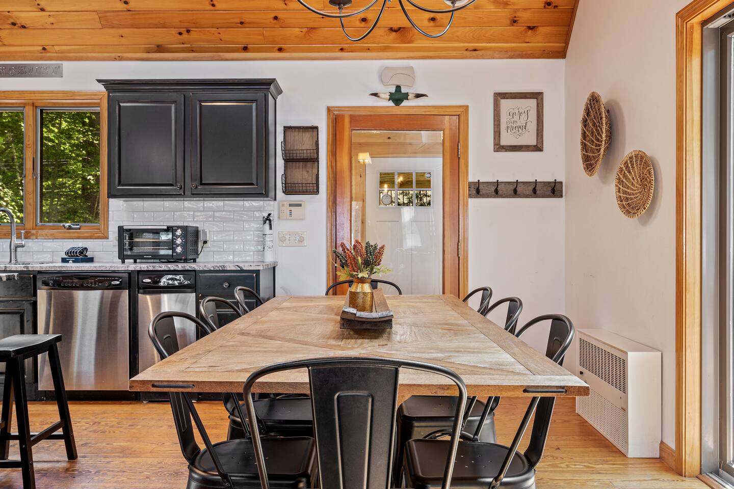 Please note there is a maximum of 8 adults allowed in this home. Guests will have access to all described rooms and amenities. The indoor fireplace and woodstove are non-operational. The entire home is heated and cooled by central air controlled by one thermostat. The driveway offers parking for up to 5 vehicles total. Entry is simple and secure with a smart lock—your personalized code will be provided before check-in. Please note the home is located on a well-traveled road so road noise is not uncommon to experience during your stay. Also, the property owners use the detached garage for personal storage so they may occasionally stop by to grab belongings. This is not common but we want to mention it upfront. Treehouse shown in the photos is not for guest use and access is blocked off.