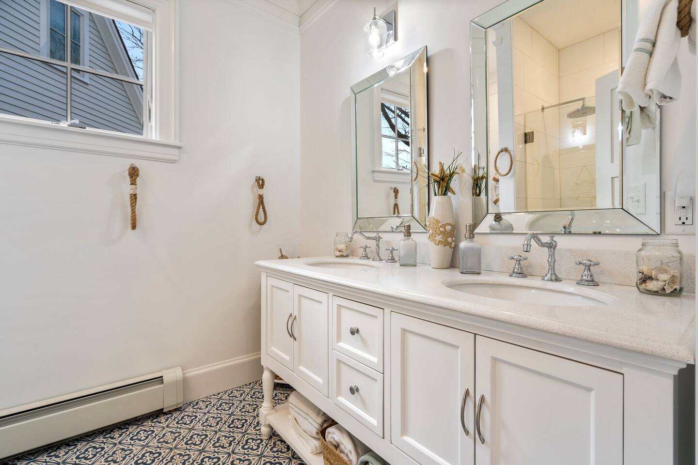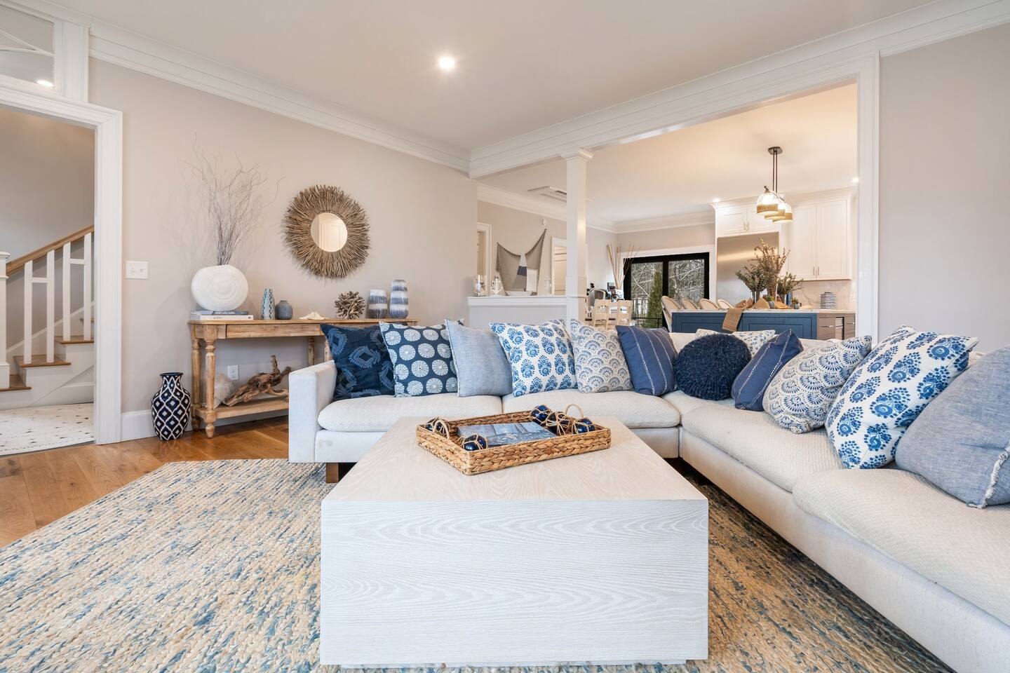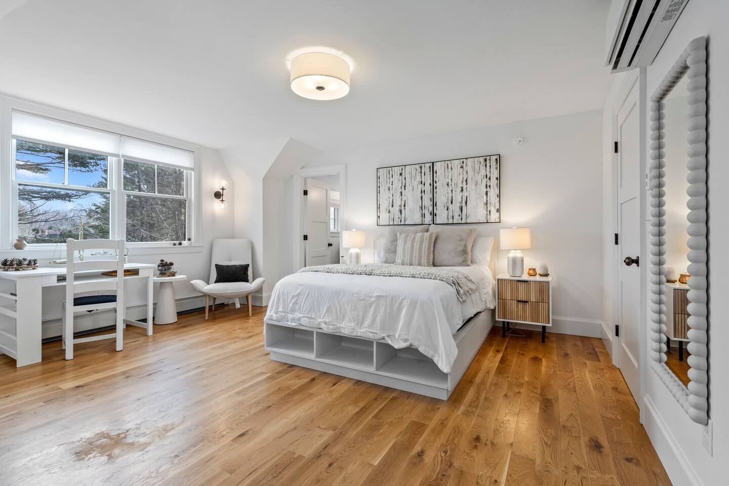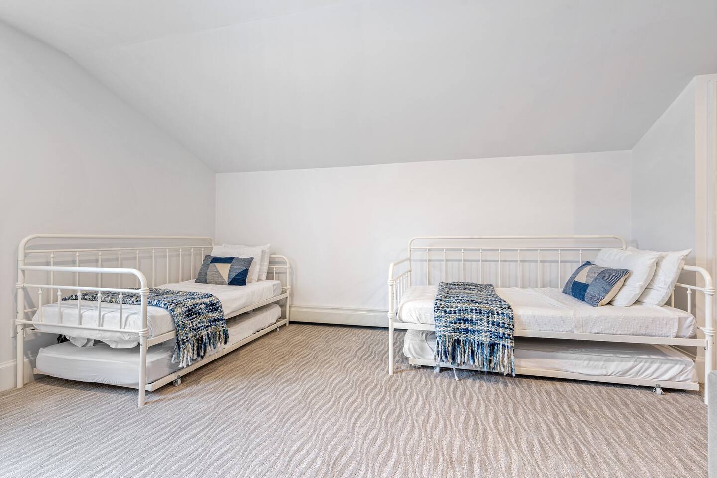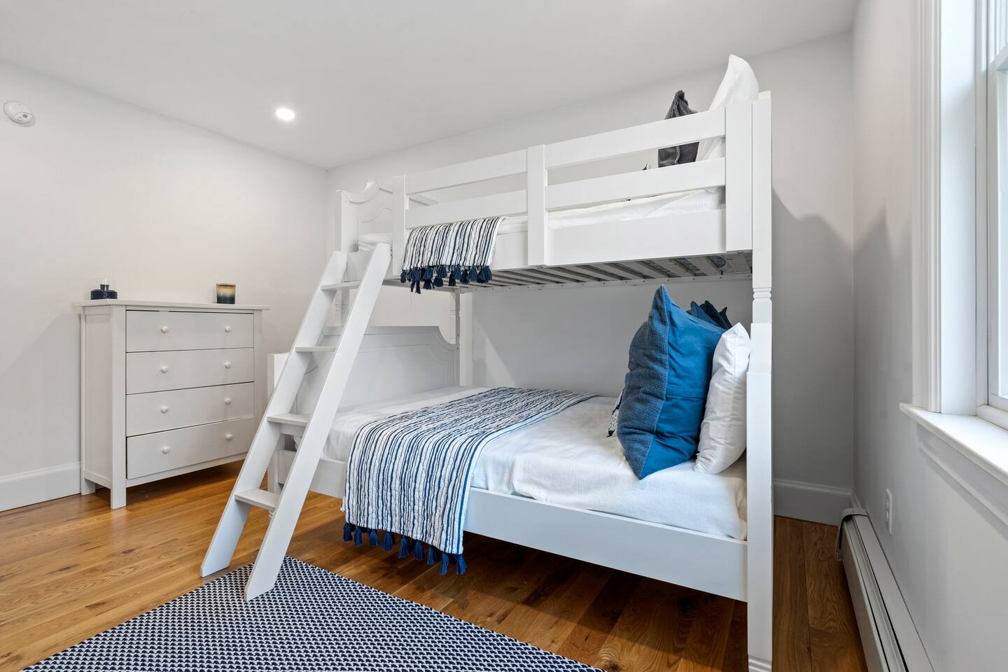 KEY FEATURES: ☀️ Sleeps 14 across 5 beautifully designed bedrooms and 10 beds - 2 king, 2 queen, 1 full, 5 twin ☀️ 4.5 fully stocked bathrooms - 1 full w/ shower/tub combo, 3 full w/ walk-in showers, 1 half ☀️ Modern, fully equipped kitchen with top-of-the-line Thermador appliances ☀️ Entertainment options including board games, kids’ toys, and Smart TVs throughout ☀️ High-speed 350MB satellite WiFi for seamless streaming and work-from-home convenience ☀️ Dog and family-friendly! Includes Pack ‘n Play, highchair, and child-friendly amenities ☀️ Expansive deck and patio area with lounging and dining furniture, plus both wood and gas fire pits ☆☆ BEDROOMS ☆☆ This coastal Maine retreat offers five beautifully appointed bedrooms designed to ensure a restful and luxurious stay for up to 14 guests. One of the bedrooms is in the 800-square-foot guest house, adjacent to the 2,664-square-foot main house. The primary suite on the first floor of the main house is a private sanctuary, featuring a plush king-size bed, an ensuite bathroom with a walk-in shower, a 65" smart TV, and two dressers for ample clothing storage. The second floor of the main home offers four thoughtfully curated bedrooms: Bedroom #2: A serene secondary master suite with a queen-size bed, ensuite bathroom, 42" smart TV, desk, and tasteful furnishings. Bedroom #3: A cozy queen bedroom with a 37" smart TV and elegant décor. Bedroom #4: A twin-over-full bunk bed setup with a 32" smart TV, perfect for the kids. Bedroom #5: A spacious room featuring four twin beds (two with trundles), a sectional couch and a 55" smart TV making it ideal for families. In the guest house, enjoy a tranquil bedroom with a king-size bed and chic furnishings, perfect for extended family or friends seeking extra privacy. ☆☆ BATHROOMS ☆☆ The home’s 4.5 bathrooms provide a spa-like experience with luxurious touches. Two ensuite bathrooms in the main house offer walk-in showers and double vanities for added comfort. The hallway bathroom on the second floor includes a shower/tub combo, great for families with kids. The guest house also features a full bathroom with a sleek walk-in shower. Each bathroom is stocked with all the essentials needed for the duration of your stay. ☆☆ KITCHEN, DINING, AND LIVING ROOMS ☆☆ The heart of the home is the chef’s kitchen, designed for culinary inspiration. Equipped with high-end Thermador appliances, abundant counter space, and a spacious island that seats four, this kitchen is perfect for preparing gourmet meals. Adjacent is a dining table for six, creating a welcoming space for memorable family dinners. The living room is an inviting haven with a cozy gas fireplace, seating for 6-10, and large windows that bathe the space in natural light. A 65” smart TV sets the stage for family movie nights or streaming your favorite shows. The guest house mirrors this elegance with an open-concept design, featuring a full kitchen, comfortable seating area, and a quaint dining table for two. A private washer and dryer add convenience. ☆☆ OUTSIDE SPACE ☆☆ Step into your private outdoor oasis. The expansive deck and patio are ideal for relaxation and entertainment. Lounge on the chic outdoor furniture or gather around the gas fire pit for evening cocktails. A wood-burning firepit with seating for six offers the perfect spot for roasting marshmallows under the stars. Fire up the grill for a family BBQ and savor your meals al fresco, surrounded by lush greenery and coastal breezes. Whether you're enjoying a beach day just minutes away or unwinding in this luxurious retreat, Captain's Quarters offers an unforgettable Maine escape for family and friends. ☆☆ ADDITIONAL GUEST EXPERIENCES ☆☆ Looking to make your stay extra special? We partner with local businesses to help take your trip to the next level. We’re happy to help coordinate the following services: 🛶 Kayak & SUP Rentals (inquire about 10% off!) 🚲 Bike Rentals (inquire about 25% off!) 🍽️ Private Chef 💆🏻♀️ In-home Massage ★☆ Book Today & Let Us Take Care Of You In Kennebunkport! ☆★