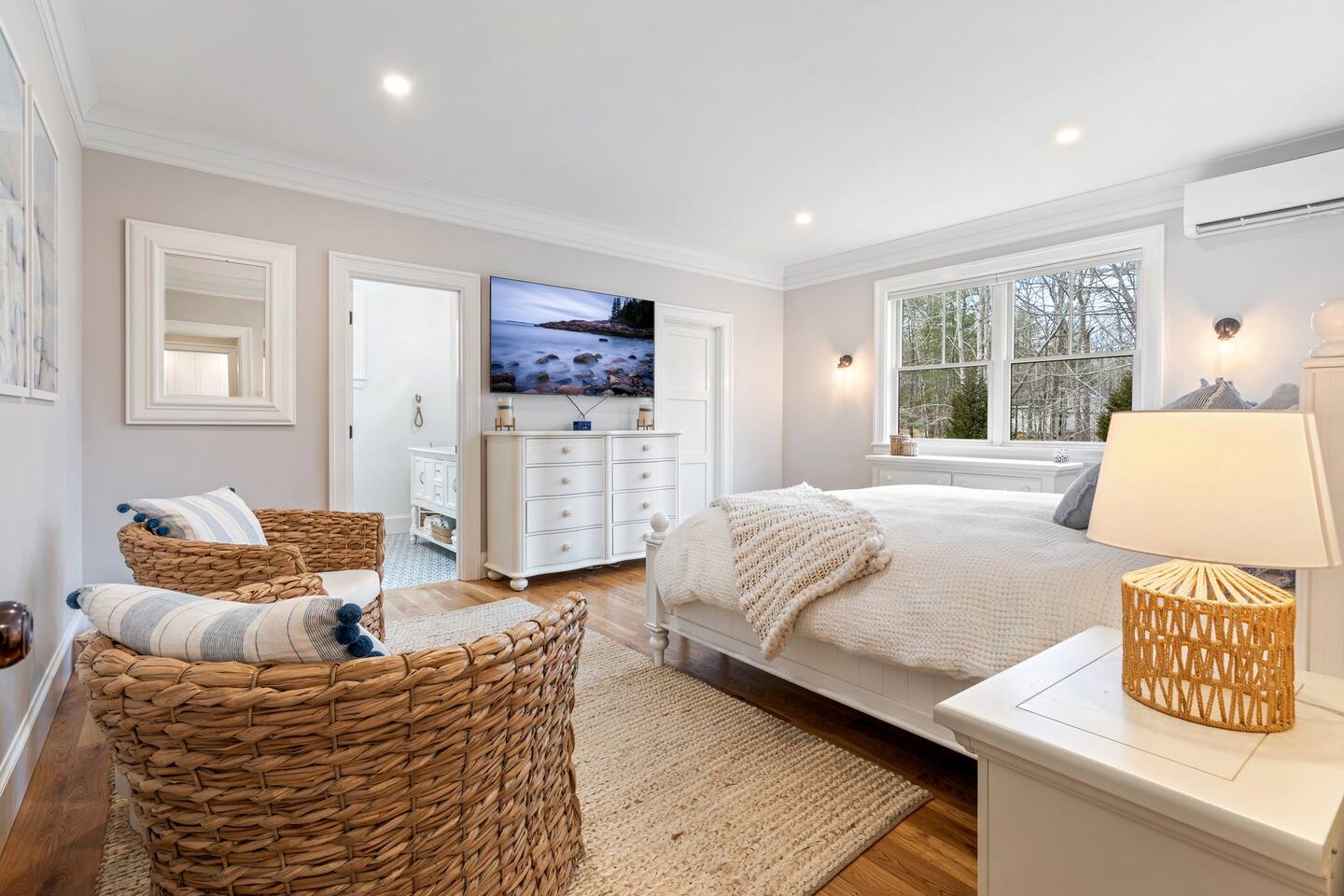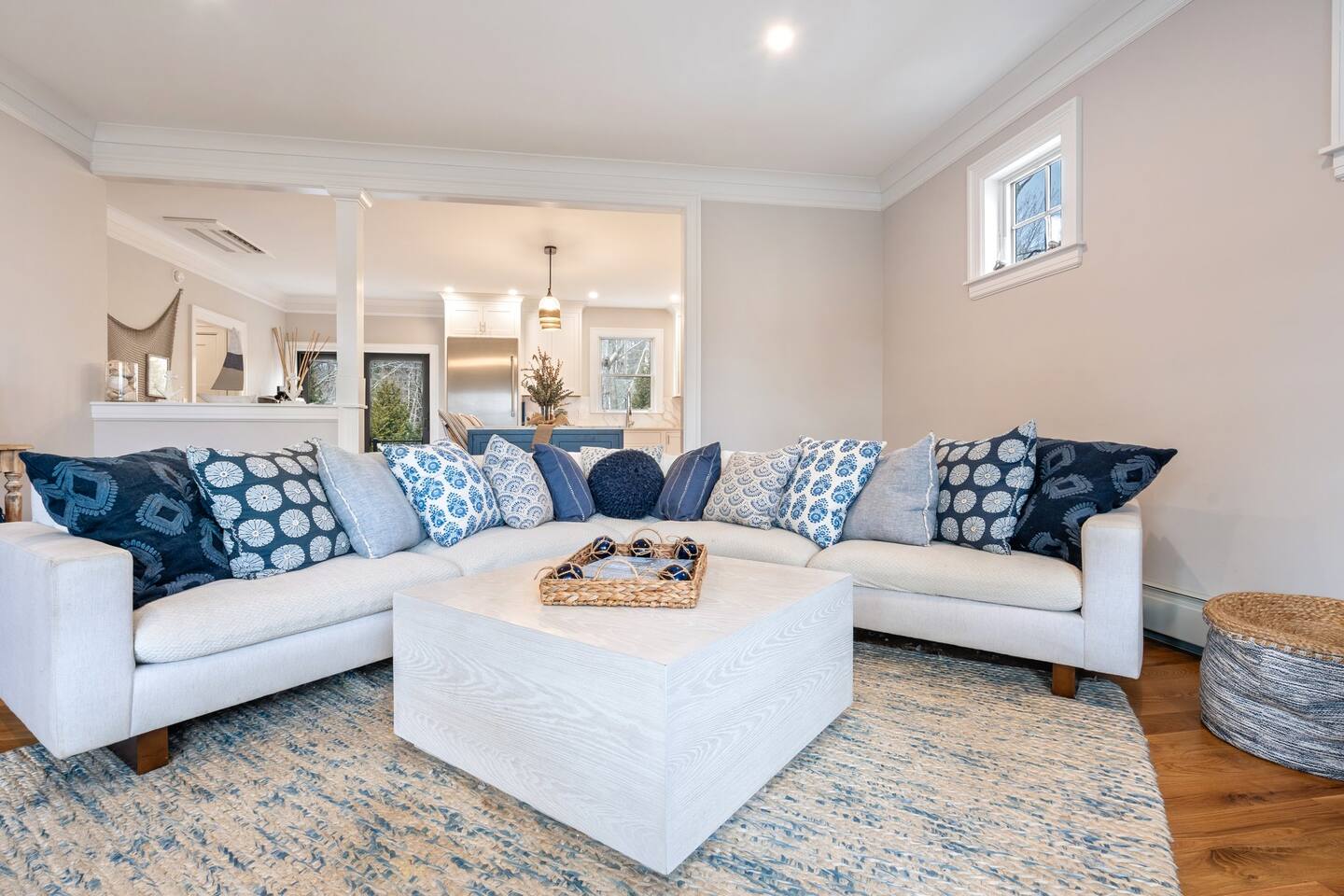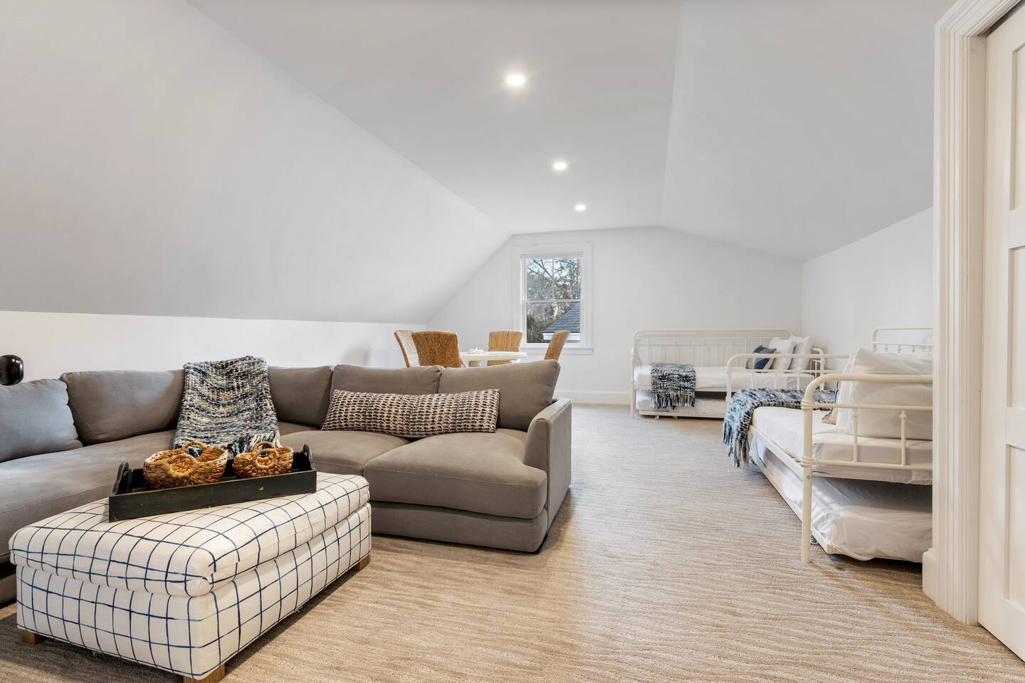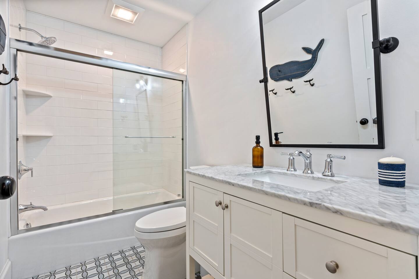 KEY FEATURES: ☀️ Sleeps 14 across 5 beautifully designed bedrooms and 10 beds - 2 king, 2 queen, 1 full, 5 twin ☀️ 4.5 fully stocked bathrooms - 1 full w/ shower/tub combo, 3 full w/ walk-in showers, 1 half ☀️ Modern, fully equipped kitchen with top-of-the-line Thermador appliances ☀️ Entertainment options including board games, kids’ toys, and Smart TVs throughout ☀️ High-speed 350MB satellite WiFi for seamless streaming and work-from-home convenience ☀️ Dog and family-friendly! Includes Pack ‘n Play, highchair, and child-friendly amenities ☀️ Expansive deck and patio area with lounging and dining furniture, plus both wood and gas fire pits ☆☆ BEDROOMS ☆☆ This coastal Maine retreat offers five beautifully appointed bedrooms designed to ensure a restful and luxurious stay for up to 14 guests. One of the bedrooms is in the 800-square-foot guest house, adjacent to the 2,664-square-foot main house. The primary suite on the first floor of the main house is a private sanctuary, featuring a plush king-size bed, an ensuite bathroom with a walk-in shower, a 65" smart TV, and two dressers for ample clothing storage. The second floor of the main home offers four thoughtfully curated bedrooms: Bedroom #2: A serene secondary master suite with a queen-size bed, ensuite bathroom, 42" smart TV, desk, and tasteful furnishings. Bedroom #3: A cozy queen bedroom with a 37" smart TV and elegant décor. Bedroom #4: A twin-over-full bunk bed setup with a 32" smart TV, perfect for the kids. Bedroom #5: A spacious room featuring four twin beds (two with trundles), a sectional couch and a 55" smart TV making it ideal for families. In the guest house, enjoy a tranquil bedroom with a king-size bed and chic furnishings, perfect for extended family or friends seeking extra privacy. ☆☆ BATHROOMS ☆☆ The home’s 4.5 bathrooms provide a spa-like experience with luxurious touches. Two ensuite bathrooms in the main house offer walk-in showers and double vanities for added comfort. The hallway bathroom on the second floor includes a shower/tub combo, great for families with kids. The guest house also features a full bathroom with a sleek walk-in shower. Each bathroom is stocked with all the essentials needed for the duration of your stay. ☆☆ KITCHEN, DINING, AND LIVING ROOMS ☆☆ The heart of the home is the chef’s kitchen, designed for culinary inspiration. Equipped with high-end Thermador appliances, abundant counter space, and a spacious island that seats four, this kitchen is perfect for preparing gourmet meals. Adjacent is a dining table for six, creating a welcoming space for memorable family dinners. The living room is an inviting haven with a cozy gas fireplace, seating for 6-10, and large windows that bathe the space in natural light. A 65” smart TV sets the stage for family movie nights or streaming your favorite shows. The guest house mirrors this elegance with an open-concept design, featuring a full kitchen, comfortable seating area, and a quaint dining table for two. A private washer and dryer add convenience. ☆☆ OUTSIDE SPACE ☆☆ Step into your private outdoor oasis. The expansive deck and patio are ideal for relaxation and entertainment. Lounge on the chic outdoor furniture or gather around the gas fire pit for evening cocktails. A wood-burning firepit with seating for six offers the perfect spot for roasting marshmallows under the stars. Fire up the grill for a family BBQ and savor your meals al fresco, surrounded by lush greenery and coastal breezes. Whether you're enjoying a beach day just minutes away or unwinding in this luxurious retreat, Captain's Quarters offers an unforgettable Maine escape for family and friends. ☆☆ ADDITIONAL GUEST EXPERIENCES ☆☆ Looking to make your stay extra special? We partner with local businesses to help take your trip to the next level. We’re happy to help coordinate the following services: 🛶 Kayak & SUP Rentals (inquire about 10% off!) 🚲 Bike Rentals (inquire about 25% off!) 🍽️ Private Chef 💆🏻♀️ In-home Massage ★☆ Book Today & Let Us Take Care Of You In Kennebunkport! ☆★