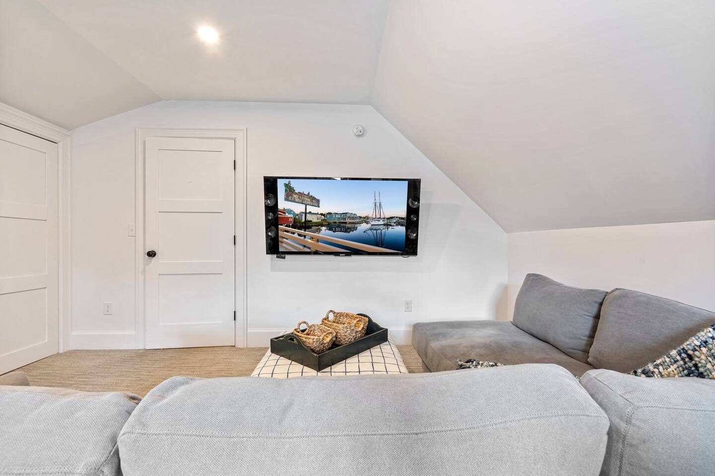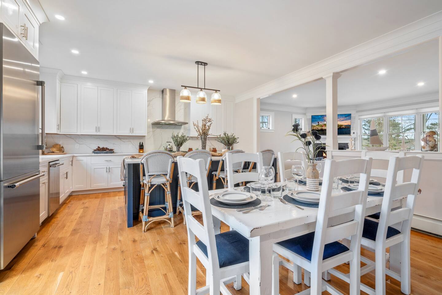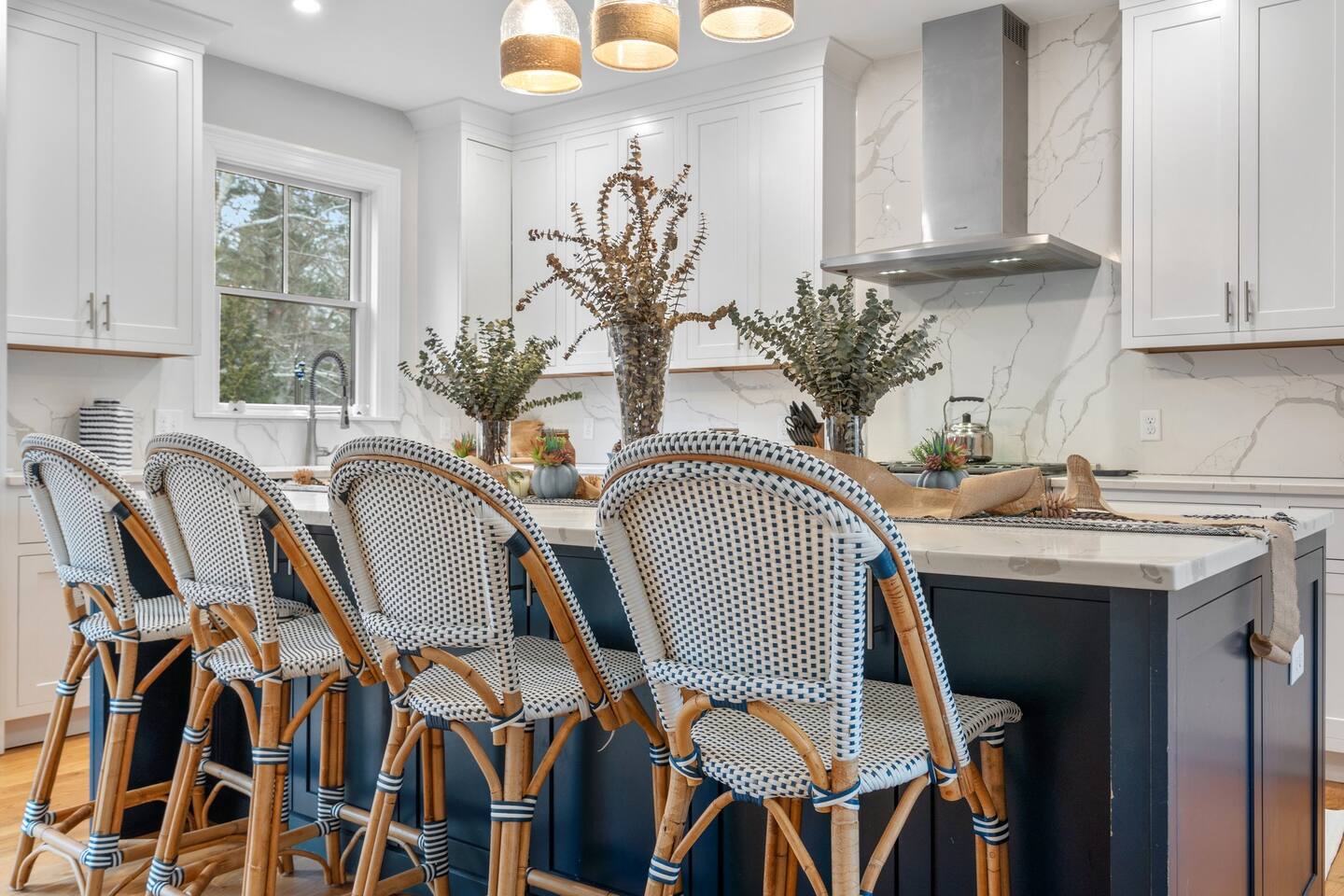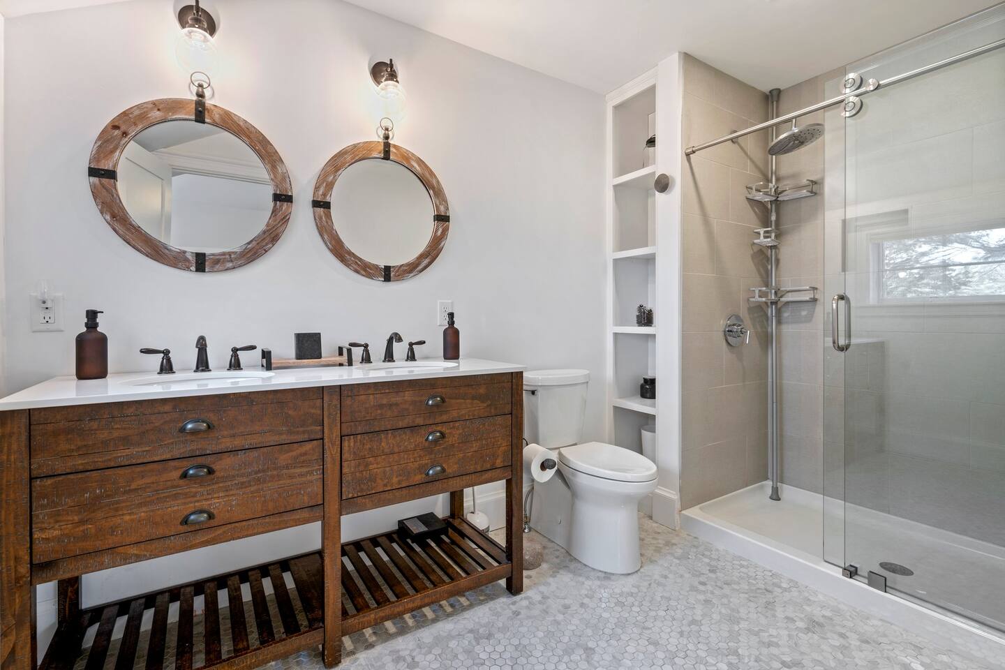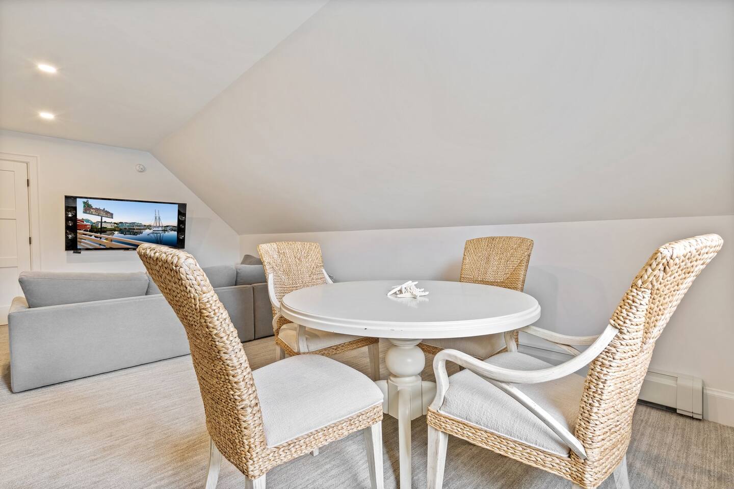 KEY FEATURES: ☀️ Sleeps 14 across 5 beautifully designed bedrooms and 10 beds - 2 king, 2 queen, 1 full, 5 twin ☀️ 4.5 fully stocked bathrooms - 1 full w/ shower/tub combo, 3 full w/ walk-in showers, 1 half ☀️ Modern, fully equipped kitchen with top-of-the-line Thermador appliances ☀️ Entertainment options including board games, kids’ toys, and Smart TVs throughout ☀️ High-speed 350MB satellite WiFi for seamless streaming and work-from-home convenience ☀️ Dog and family-friendly! Includes Pack ‘n Play, highchair, and child-friendly amenities ☀️ Expansive deck and patio area with lounging and dining furniture, plus both wood and gas fire pits ☆☆ BEDROOMS ☆☆ This coastal Maine retreat offers five beautifully appointed bedrooms designed to ensure a restful and luxurious stay for up to 14 guests. One of the bedrooms is in the 800-square-foot guest house, adjacent to the 2,664-square-foot main house. The primary suite on the first floor of the main house is a private sanctuary, featuring a plush king-size bed, an ensuite bathroom with a walk-in shower, a 65" smart TV, and two dressers for ample clothing storage. The second floor of the main home offers four thoughtfully curated bedrooms: Bedroom #2: A serene secondary master suite with a queen-size bed, ensuite bathroom, 42" smart TV, desk, and tasteful furnishings. Bedroom #3: A cozy queen bedroom with a 37" smart TV and elegant décor. Bedroom #4: A twin-over-full bunk bed setup with a 32" smart TV, perfect for the kids. Bedroom #5: A spacious room featuring four twin beds (two with trundles), a sectional couch and a 55" smart TV making it ideal for families. In the guest house, enjoy a tranquil bedroom with a king-size bed and chic furnishings, perfect for extended family or friends seeking extra privacy. ☆☆ BATHROOMS ☆☆ The home’s 4.5 bathrooms provide a spa-like experience with luxurious touches. Two ensuite bathrooms in the main house offer walk-in showers and double vanities for added comfort. The hallway bathroom on the second floor includes a shower/tub combo, great for families with kids. The guest house also features a full bathroom with a sleek walk-in shower. Each bathroom is stocked with all the essentials needed for the duration of your stay. ☆☆ KITCHEN, DINING, AND LIVING ROOMS ☆☆ The heart of the home is the chef’s kitchen, designed for culinary inspiration. Equipped with high-end Thermador appliances, abundant counter space, and a spacious island that seats four, this kitchen is perfect for preparing gourmet meals. Adjacent is a dining table for six, creating a welcoming space for memorable family dinners. The living room is an inviting haven with a cozy gas fireplace, seating for 6-10, and large windows that bathe the space in natural light. A 65” smart TV sets the stage for family movie nights or streaming your favorite shows. The guest house mirrors this elegance with an open-concept design, featuring a full kitchen, comfortable seating area, and a quaint dining table for two. A private washer and dryer add convenience. ☆☆ OUTSIDE SPACE ☆☆ Step into your private outdoor oasis. The expansive deck and patio are ideal for relaxation and entertainment. Lounge on the chic outdoor furniture or gather around the gas fire pit for evening cocktails. A wood-burning firepit with seating for six offers the perfect spot for roasting marshmallows under the stars. Fire up the grill for a family BBQ and savor your meals al fresco, surrounded by lush greenery and coastal breezes. Whether you're enjoying a beach day just minutes away or unwinding in this luxurious retreat, Captain's Quarters offers an unforgettable Maine escape for family and friends. ☆☆ ADDITIONAL GUEST EXPERIENCES ☆☆ Looking to make your stay extra special? We partner with local businesses to help take your trip to the next level. We’re happy to help coordinate the following services: 🛶 Kayak & SUP Rentals (inquire about 10% off!) 🚲 Bike Rentals (inquire about 25% off!) 🍽️ Private Chef 💆🏻♀️ In-home Massage ★☆ Book Today & Let Us Take Care Of You In Kennebunkport! ☆★