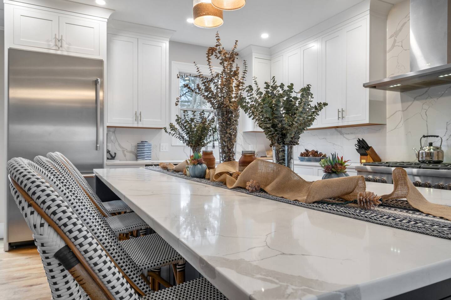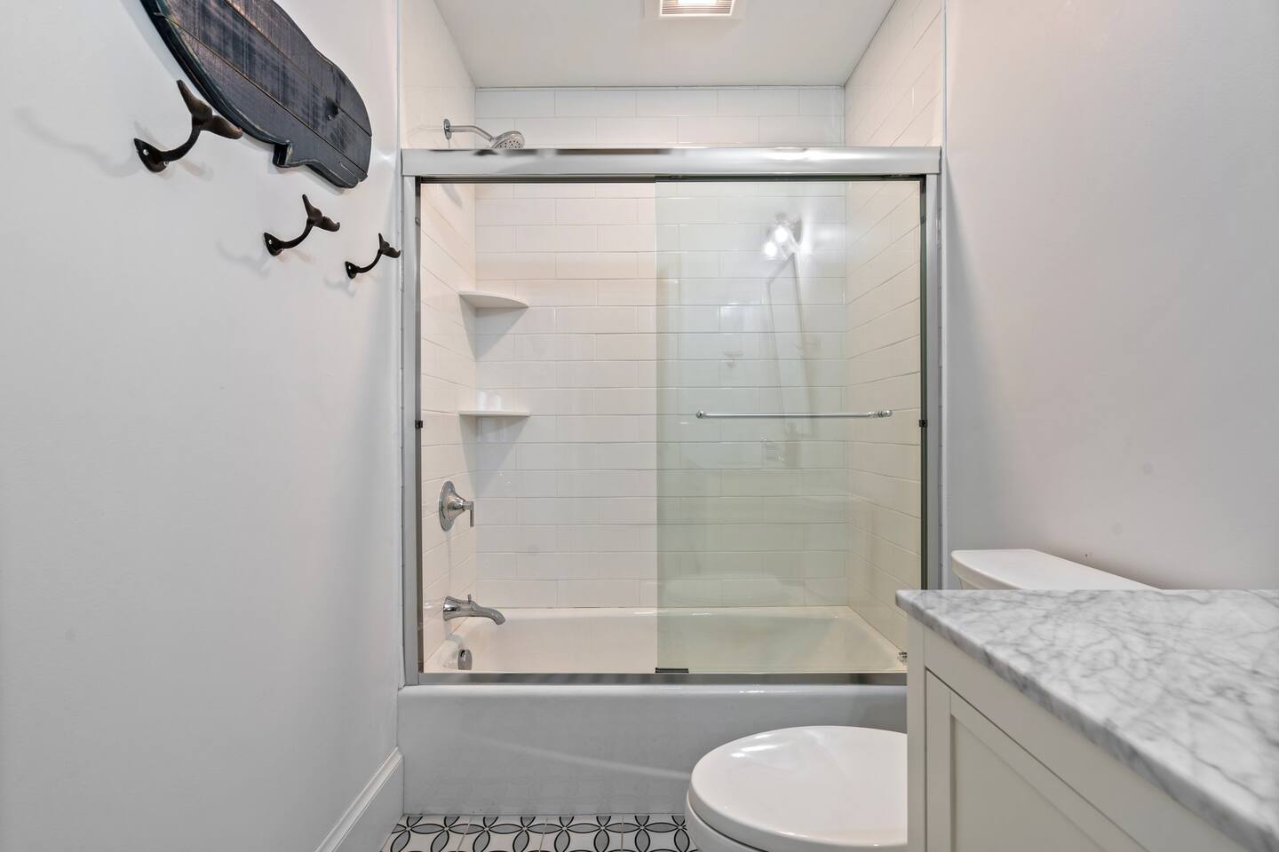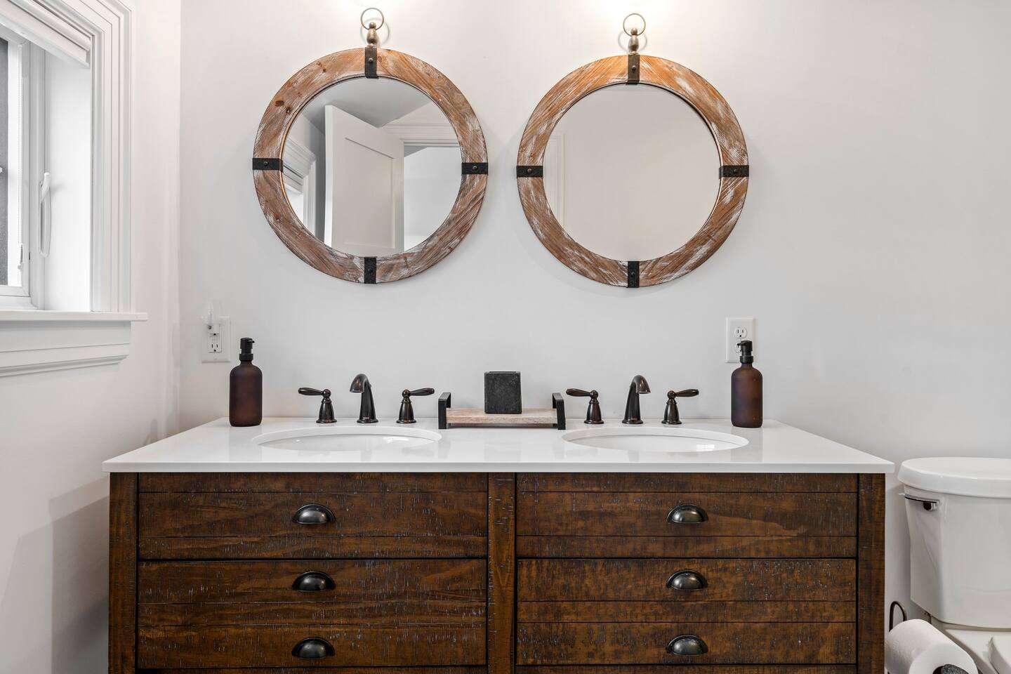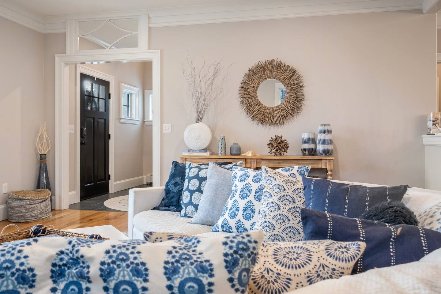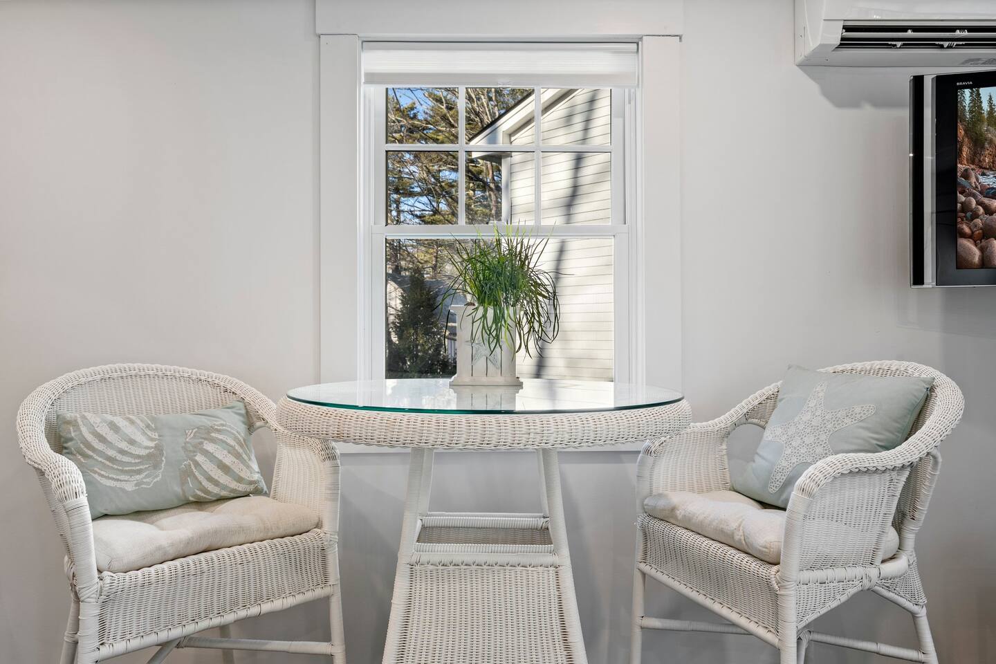 KEY FEATURES: ☀️ Sleeps 14 across 5 beautifully designed bedrooms and 10 beds - 2 king, 2 queen, 1 full, 5 twin ☀️ 4.5 fully stocked bathrooms - 1 full w/ shower/tub combo, 3 full w/ walk-in showers, 1 half ☀️ Modern, fully equipped kitchen with top-of-the-line Thermador appliances ☀️ Entertainment options including board games, kids’ toys, and Smart TVs throughout ☀️ High-speed 350MB satellite WiFi for seamless streaming and work-from-home convenience ☀️ Dog and family-friendly! Includes Pack ‘n Play, highchair, and child-friendly amenities ☀️ Expansive deck and patio area with lounging and dining furniture, plus both wood and gas fire pits ☆☆ BEDROOMS ☆☆ This coastal Maine retreat offers five beautifully appointed bedrooms designed to ensure a restful and luxurious stay for up to 14 guests. One of the bedrooms is in the 800-square-foot guest house, adjacent to the 2,664-square-foot main house. The primary suite on the first floor of the main house is a private sanctuary, featuring a plush king-size bed, an ensuite bathroom with a walk-in shower, a 65" smart TV, and two dressers for ample clothing storage. The second floor of the main home offers four thoughtfully curated bedrooms: Bedroom #2: A serene secondary master suite with a queen-size bed, ensuite bathroom, 42" smart TV, desk, and tasteful furnishings. Bedroom #3: A cozy queen bedroom with a 37" smart TV and elegant décor. Bedroom #4: A twin-over-full bunk bed setup with a 32" smart TV, perfect for the kids. Bedroom #5: A spacious room featuring four twin beds (two with trundles), a sectional couch and a 55" smart TV making it ideal for families. In the guest house, enjoy a tranquil bedroom with a king-size bed and chic furnishings, perfect for extended family or friends seeking extra privacy. ☆☆ BATHROOMS ☆☆ The home’s 4.5 bathrooms provide a spa-like experience with luxurious touches. Two ensuite bathrooms in the main house offer walk-in showers and double vanities for added comfort. The hallway bathroom on the second floor includes a shower/tub combo, great for families with kids. The guest house also features a full bathroom with a sleek walk-in shower. Each bathroom is stocked with all the essentials needed for the duration of your stay. ☆☆ KITCHEN, DINING, AND LIVING ROOMS ☆☆ The heart of the home is the chef’s kitchen, designed for culinary inspiration. Equipped with high-end Thermador appliances, abundant counter space, and a spacious island that seats four, this kitchen is perfect for preparing gourmet meals. Adjacent is a dining table for six, creating a welcoming space for memorable family dinners. The living room is an inviting haven with a cozy gas fireplace, seating for 6-10, and large windows that bathe the space in natural light. A 65” smart TV sets the stage for family movie nights or streaming your favorite shows. The guest house mirrors this elegance with an open-concept design, featuring a full kitchen, comfortable seating area, and a quaint dining table for two. A private washer and dryer add convenience. ☆☆ OUTSIDE SPACE ☆☆ Step into your private outdoor oasis. The expansive deck and patio are ideal for relaxation and entertainment. Lounge on the chic outdoor furniture or gather around the gas fire pit for evening cocktails. A wood-burning firepit with seating for six offers the perfect spot for roasting marshmallows under the stars. Fire up the grill for a family BBQ and savor your meals al fresco, surrounded by lush greenery and coastal breezes. Whether you're enjoying a beach day just minutes away or unwinding in this luxurious retreat, Captain's Quarters offers an unforgettable Maine escape for family and friends. ☆☆ ADDITIONAL GUEST EXPERIENCES ☆☆ Looking to make your stay extra special? We partner with local businesses to help take your trip to the next level. We’re happy to help coordinate the following services: 🛶 Kayak & SUP Rentals (inquire about 10% off!) 🚲 Bike Rentals (inquire about 25% off!) 🍽️ Private Chef 💆🏻♀️ In-home Massage ★☆ Book Today & Let Us Take Care Of You In Kennebunkport! ☆★