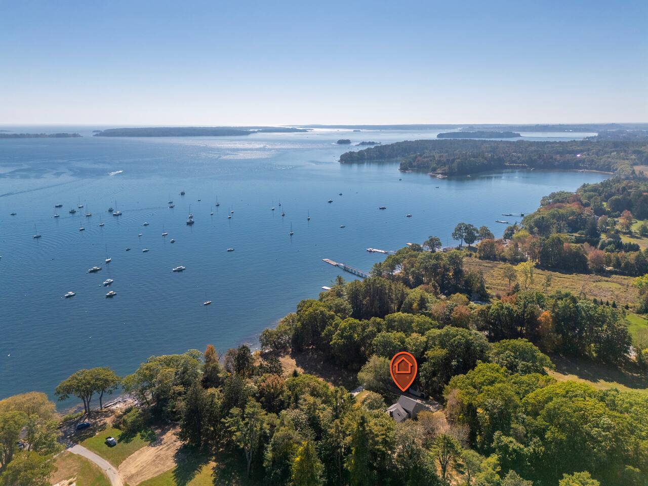 This home is located down a private road in Falmouth Foreside. Please note that there is one additional house located past our home, so you may occasionally see cars passing the front of the house. Falmouth Foreside is known for its charming waterfront neighborhoods and close proximity to Portland.