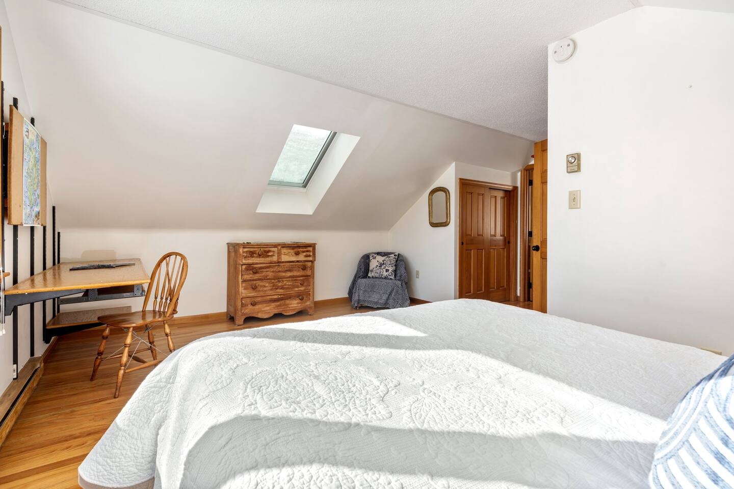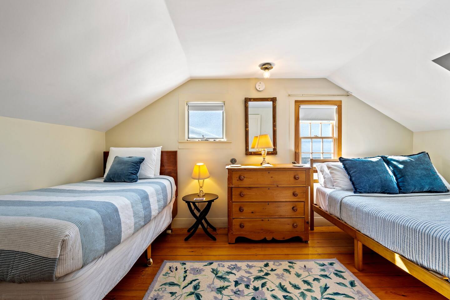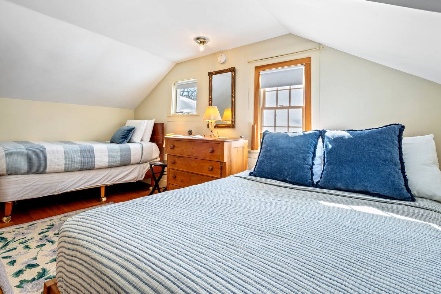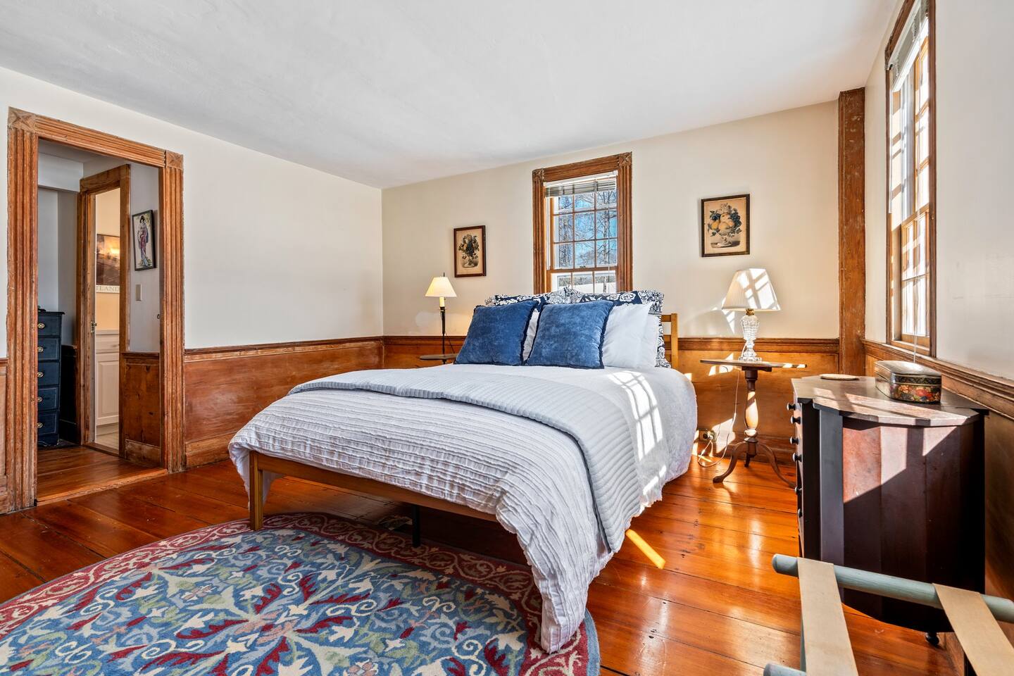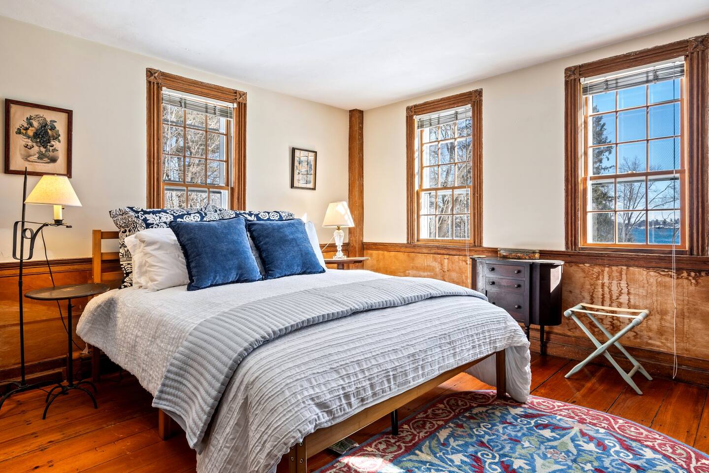 Please note that there is one additional house located past our home, so you may occasionally see cars passing the front of the house. The staircase to the 2nd floor of the historic wing is steep, so caution should be exercised. Guests will have access to all described rooms and amenities. There is parking in the top driveway for 2-3 vehicles, and parking in the lower driveway for 4-5 more. Guests are welcome to use the home’s 2 car garage, as well as the washer and dryer located in the basement. All bedrooms, except the office, will have window AC units in the summer. The large common areas of the house do not have AC but have many windows perfectly positioned to catch all the afternoon ocean breezes. We also have portable fans in each room. Swim shoes are recommended if enjoying the home's private beach area! All fireplaces in the home are ornamental and NOT for guest use. You’ll receive a code for the smart lock for secure and easy entrance into the home. 2 dog maximum, $200 pet fee applied to reservation.