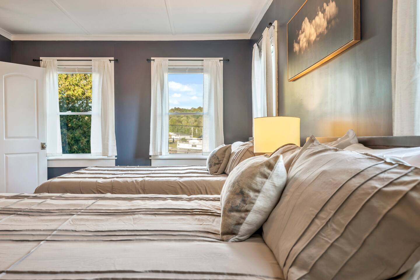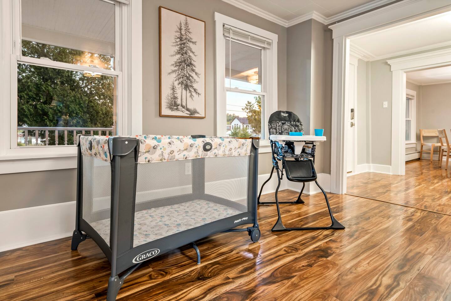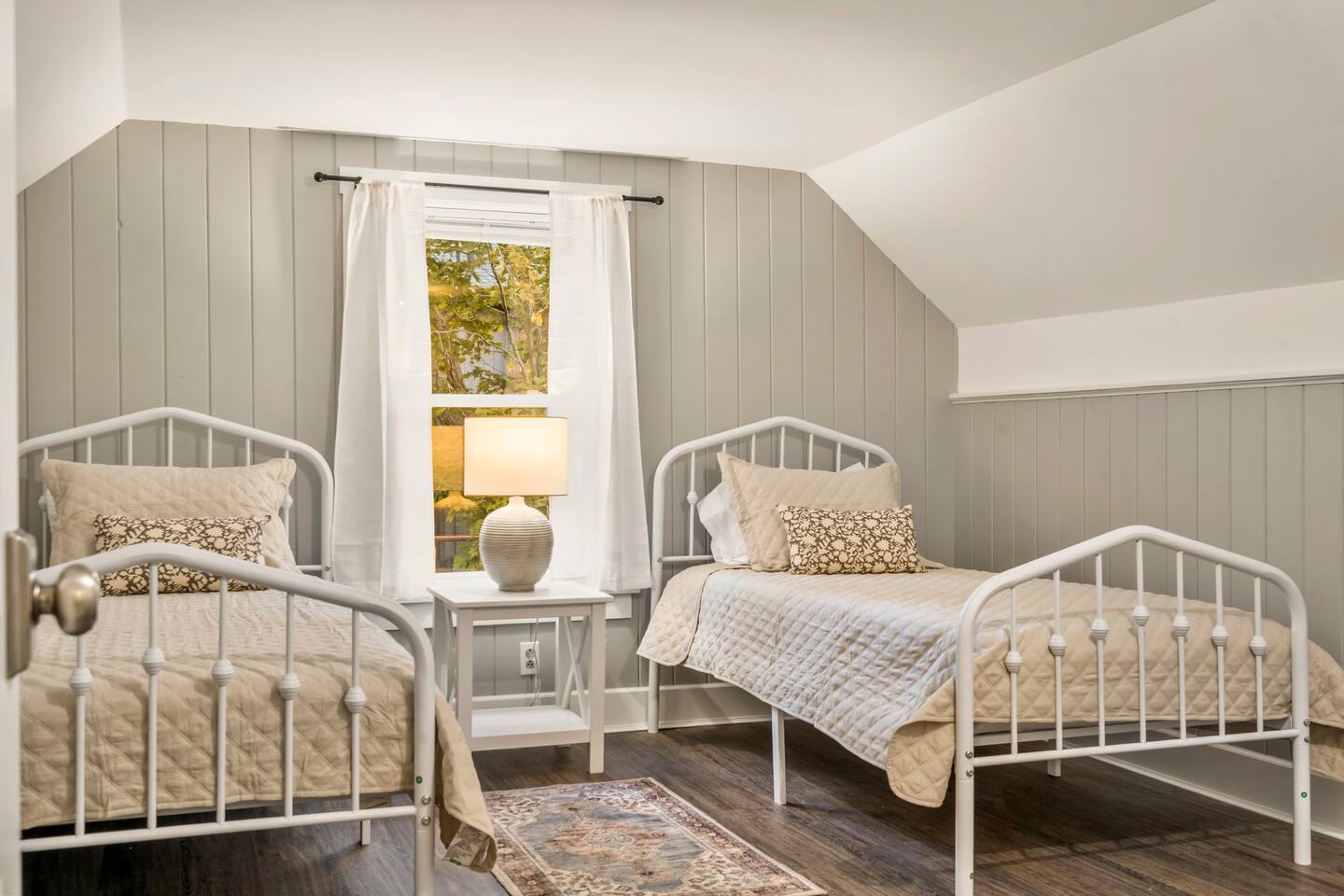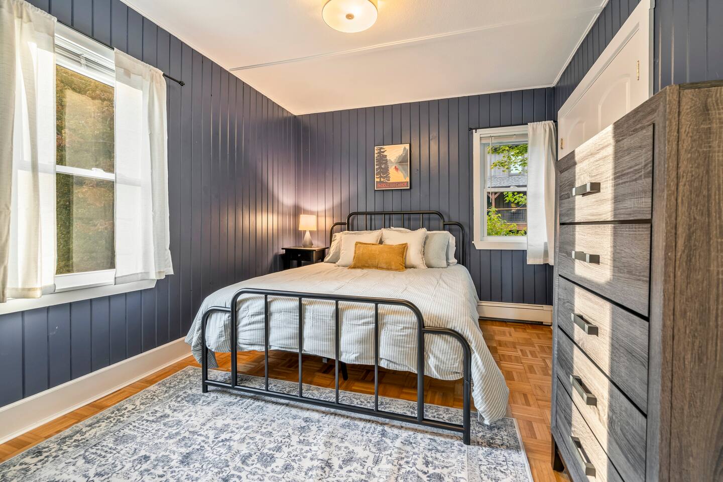 Guests will have access to all described rooms and amenities. The driveway, which extends to the back of the property, has room for about 10 cars total. Each bedroom has its own window AC unit in the summer. The first two floors are heated by baseboard heating, and the two third floor bedrooms have electric baseboard heaters. Please note that there are two other buildings on the property - one right behind the house that was previously used as office space but is currently vacant, and a garage at the back of the property that is used for storage of the owner's belongings. Please do not try to access either of these buildings. You’ll receive a code for the smart lock for secure and easy entrance into the home.
