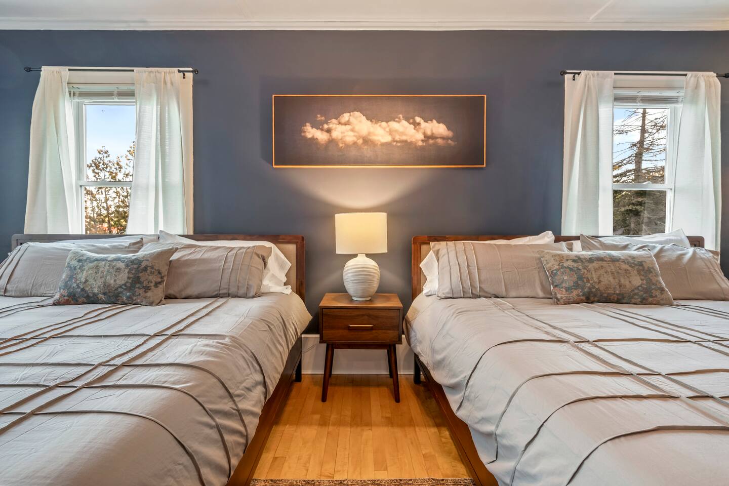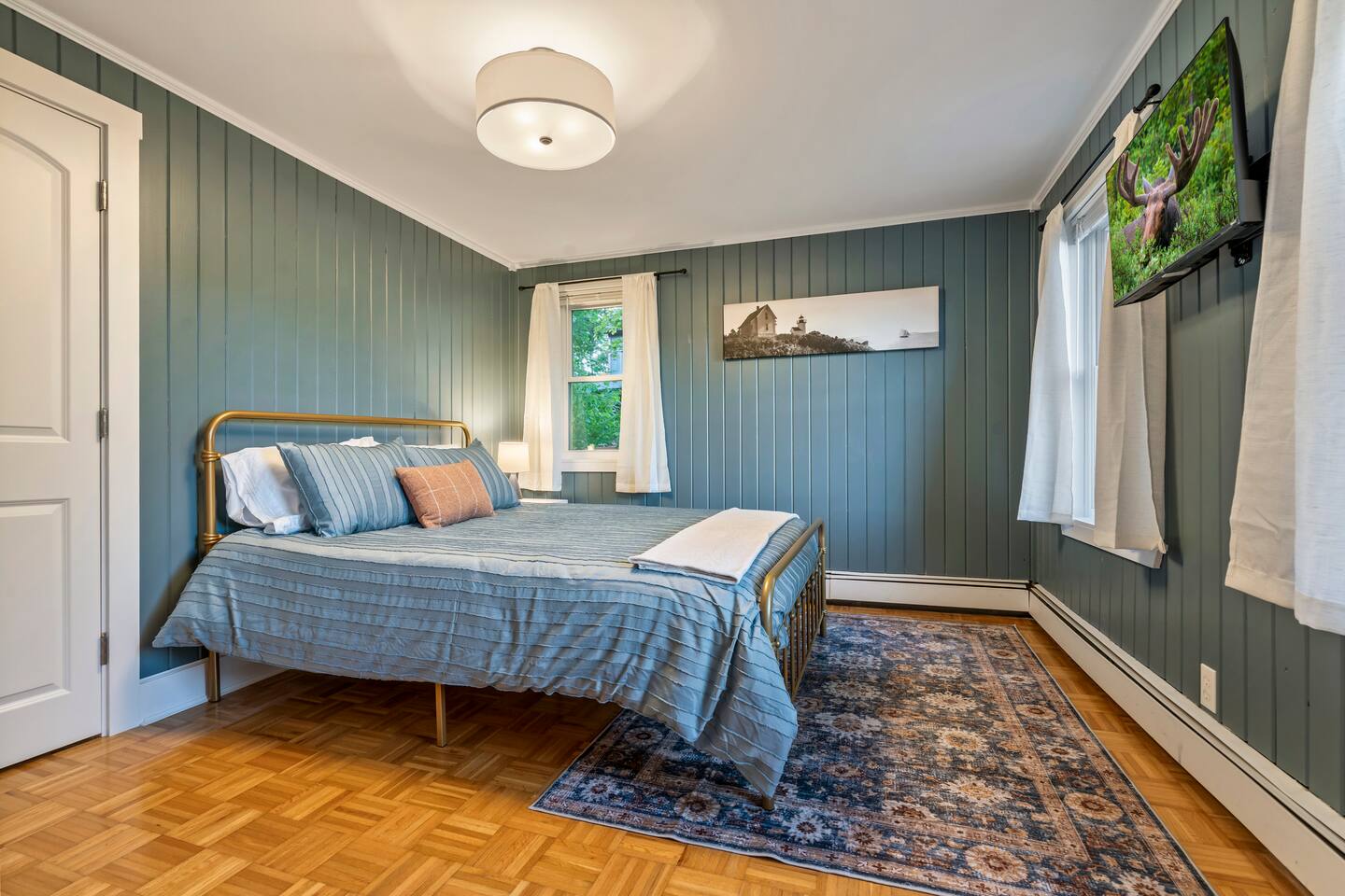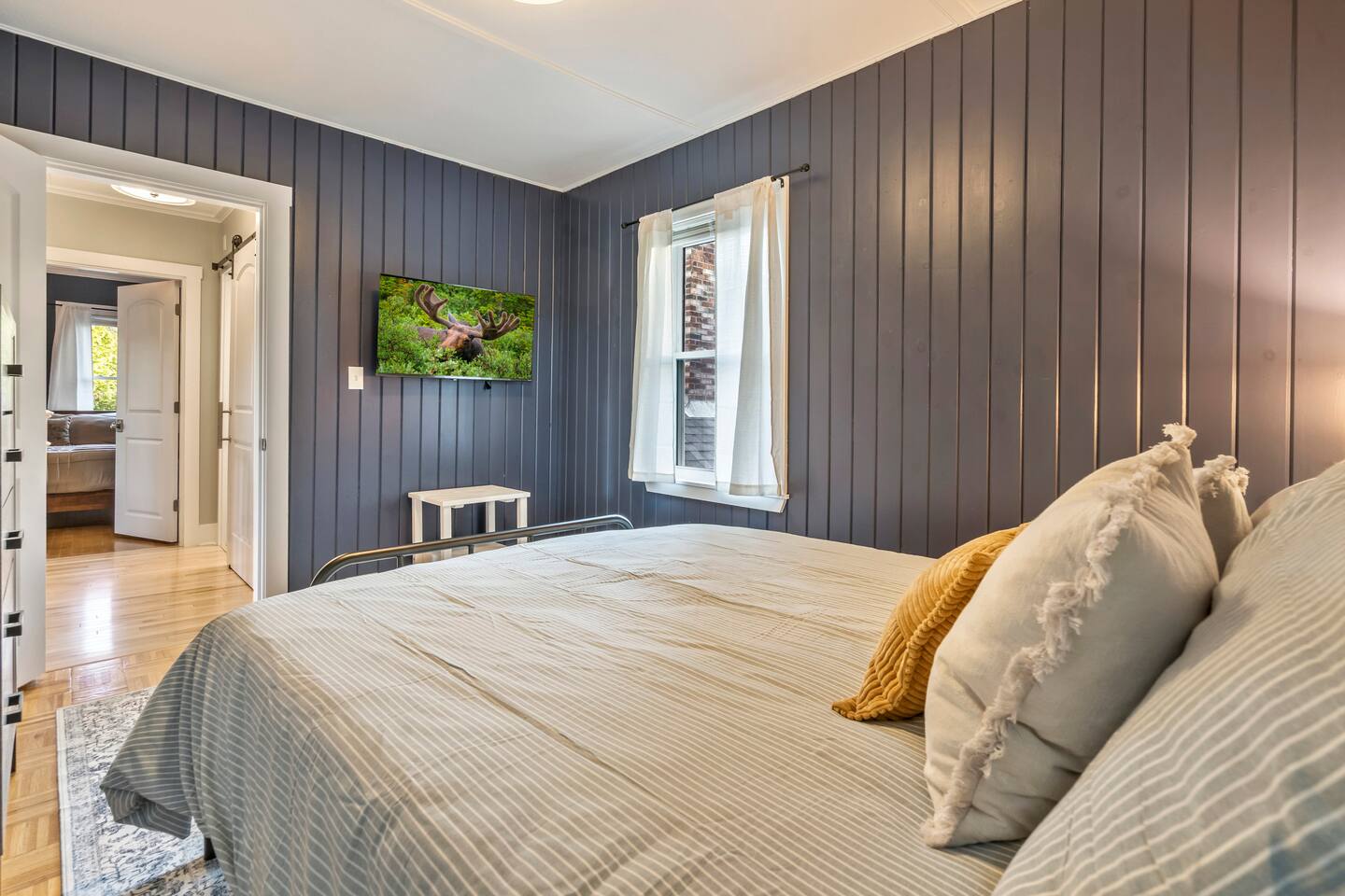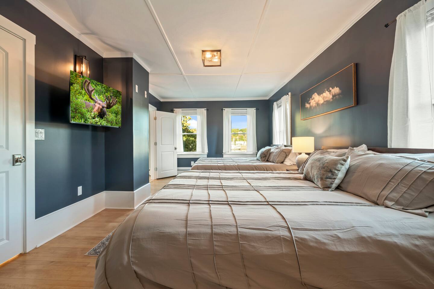 KEY FEATURES: 🏡 Spacious Accommodations: Sleeps 14 guests in 6 beautifully designed bedrooms with 8 total beds (3 king, 3 queen, 2 twin) 📍 Unbeatable Location: Downtown Greenville—next to Stress Free Moose Pub, with dinner, drinks, shops, and the lake just steps away 🚗 Ample Parking: Large driveway with additional parking out back for vehicles and trailers (perfect for groups bringing snowmobiles and ATVs) 🌅 Wraparound Porch: Unobstructed views of Moosehead Lake and the historic Katahdin steamship 🔥 Outdoor Oasis: A stone fire pit, a BBQ patio with outdoor dining, and lawn games for endless fun 🎿 Adventure Access: Lake access and snowmobile and ATV trails right nearby—ideal for all-season explorers 🛋️ Brand-New Furnishings: Every room has been recently updated with stylish, comfortable furniture 🎮 Entertainment Haven: Fast WiFi and 5 Smart Roku TVs throughout the home 👶 Family & Dog-Friendly: Pack ’n Play, highchair, and kid-friendly amenities provided ☆☆ BEDROOMS ☆☆ Each bedroom is thoughtfully curated with plush bedding, ample storage, and stylish decor. Every single mattress is a brand-new Green Tea Memory Foam mattress for exceptional comfort and support after a long day outdoors. Bedroom #1 (1st Floor): A private sanctuary located in the back of the house with a king-size bed, a dresser for clothing storage, and quick access to the first floor full bathroom Bedroom #2 (2nd Floor): Spacious room with two king beds, dresser, 43” Smart TV + lake views Bedroom #3 (2nd Floor): Queen bed, closet & dresser, 32” Smart TV + lake views Bedroom #4 (2nd Floor): Queen bed, closet & dresser, 40” Smart TV Bedroom #5 (3rd Floor): Two twin beds + closet with small dresser Bedroom #6 (3rd Floor): Queen bed + built-in cabinets for storage ☆☆ BATHROOMS ☆☆ Both bathrooms are stocked with plush towels and all other essentials needed for your stay. The first bathroom is located on the main level of the home, right between Bedroom #1 and the kitchen. This bathroom was just fully renovated and features a beautiful tile walk-in shower. The second bathroom is located in the second floor hallway in between bedrooms #2, #3 and #4. This bathroom features all new fixtures and has a walk-in shower. ☆☆ KITCHEN, DINING, AND LIVING ROOM ☆☆ The bright and airy kitchen is fully equipped with all the appliances, utensils and cookware you need to feel at home. Enjoy coffee or tea on us at the fully-stocked coffee bar! There is a 32" smart TV mounted above the coffee bar so the chef of your group doesn't have to miss the game. The dining room, located adjacent to the kitchen, provides a formal setting for medium-sized gatherings with family and friends. The dining table seats 6 comfortably, and there is additional seating for 3 at the kitchen island. The living room is a cozy yet sophisticated space with seating for 10+, lake-facing windows, and a 55” Smart TV. Perfect for movie or game nights after a day of hiking, fishing, skiing or snowmobiling. ☆☆ OUTSIDE SPACE ☆☆ Unwind and reconnect with nature in your private outdoor retreat: Wraparound Deck: Breathtaking views of Moosehead Lake and the vintage steamship “The Katahdin” Fire Pit: Roast marshmallows and stargaze around the stone fire pit BBQ & Patio: Outdoor dining with plenty of space for your group Lawn Games: Cornhole and more for family-friendly fun ☆☆ ADDITIONAL GUEST EXPERIENCES ☆☆ Looking to make your stay extra special? We partner with local businesses to help take your trip to the next level. We’re happy to help coordinate the following services: 🛶 Kayak, E-bike, ATV, Snowmobile & Pontoon Boat Rentals 🫎 Guided Moose Tours 🎣 Fishing Excursions 🍽️ Private Chef ★☆ Book Today & Let Us Take Care Of You In Greenville! ☆★