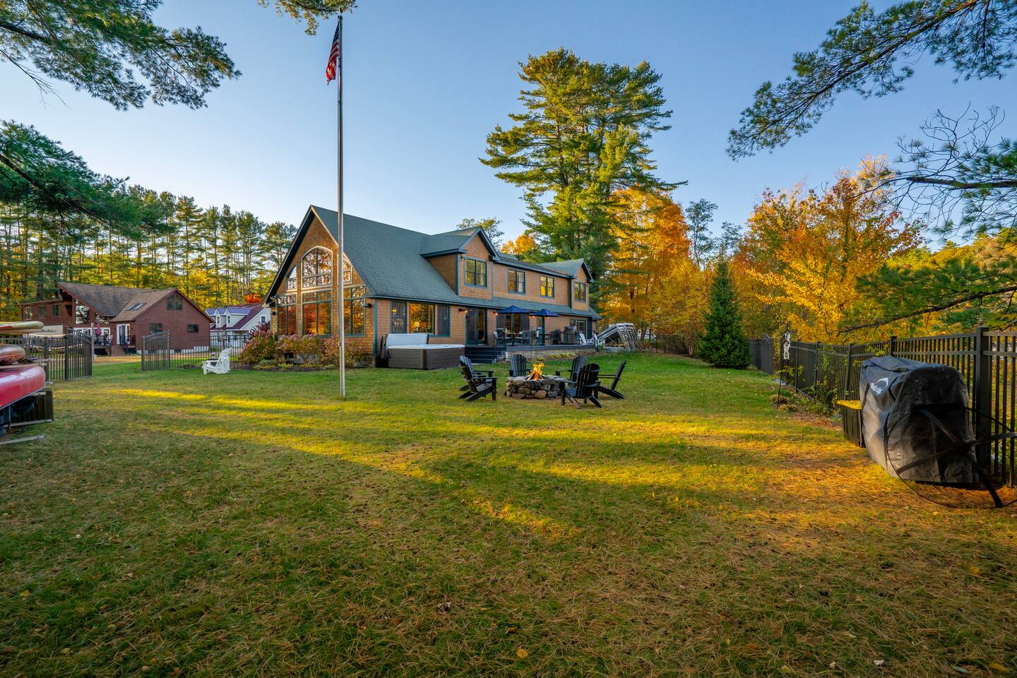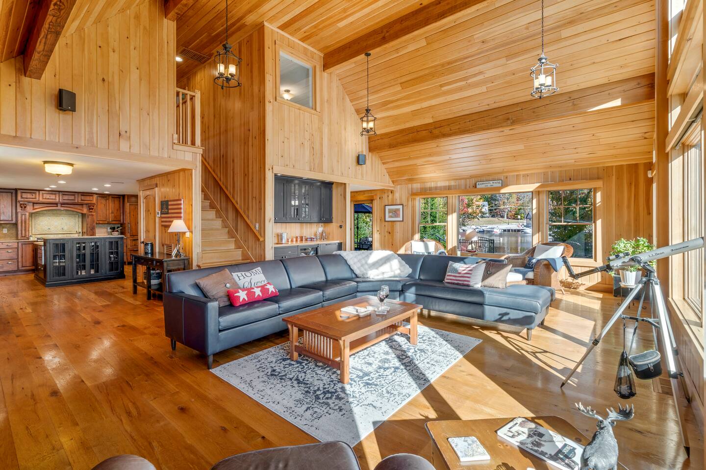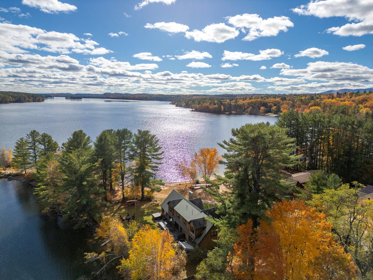 Set in a quiet cove on Long Lake in Harrison, Maine. From the spectacular lake views to the upscale finishes and entertainment features, this home delivers an unforgettable experience. Jump into the water from your private dock, gather around the fire pit at dusk, glide into the home’s home-theater for a movie, or simply relax in the hot tub under the stars. Whether you’re seeking adventure or rest, this is lakeside luxury at its best.
