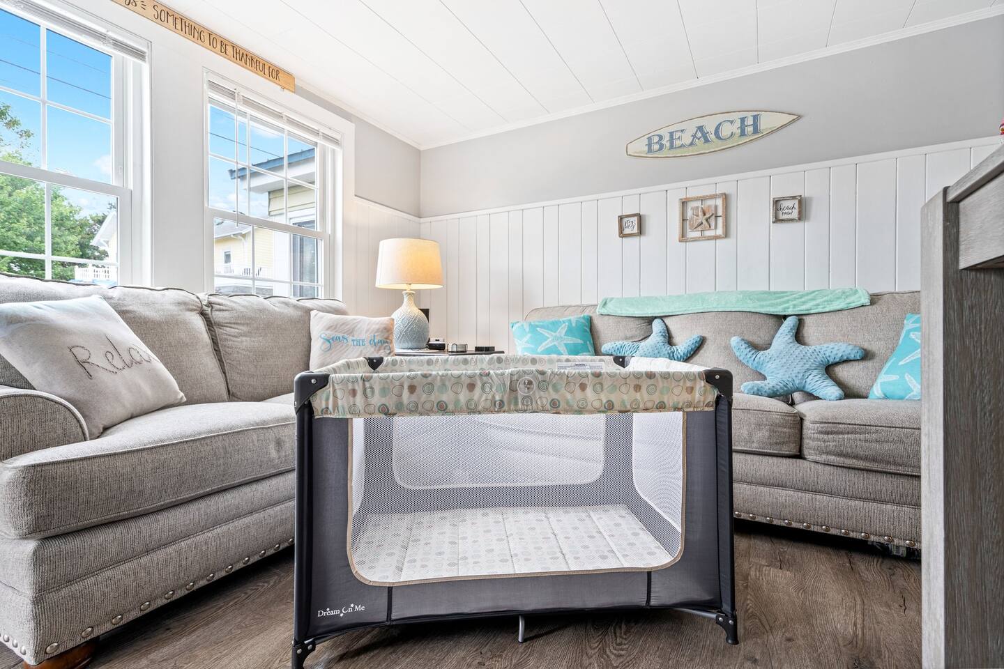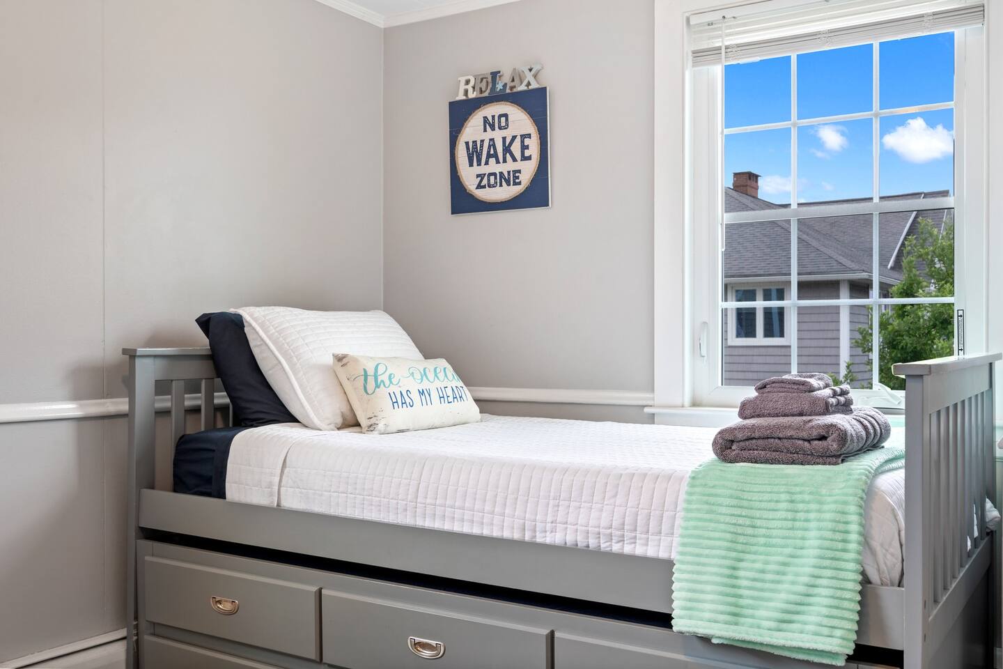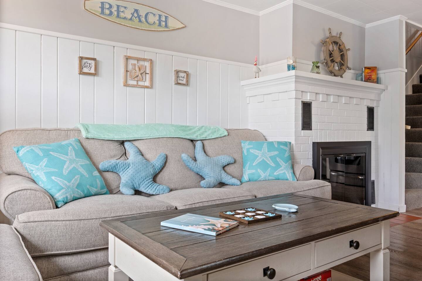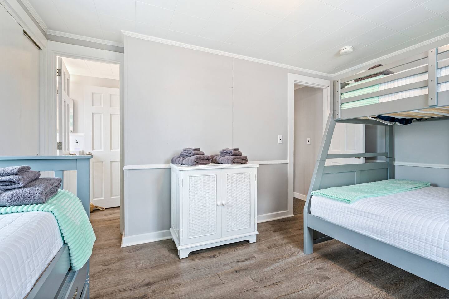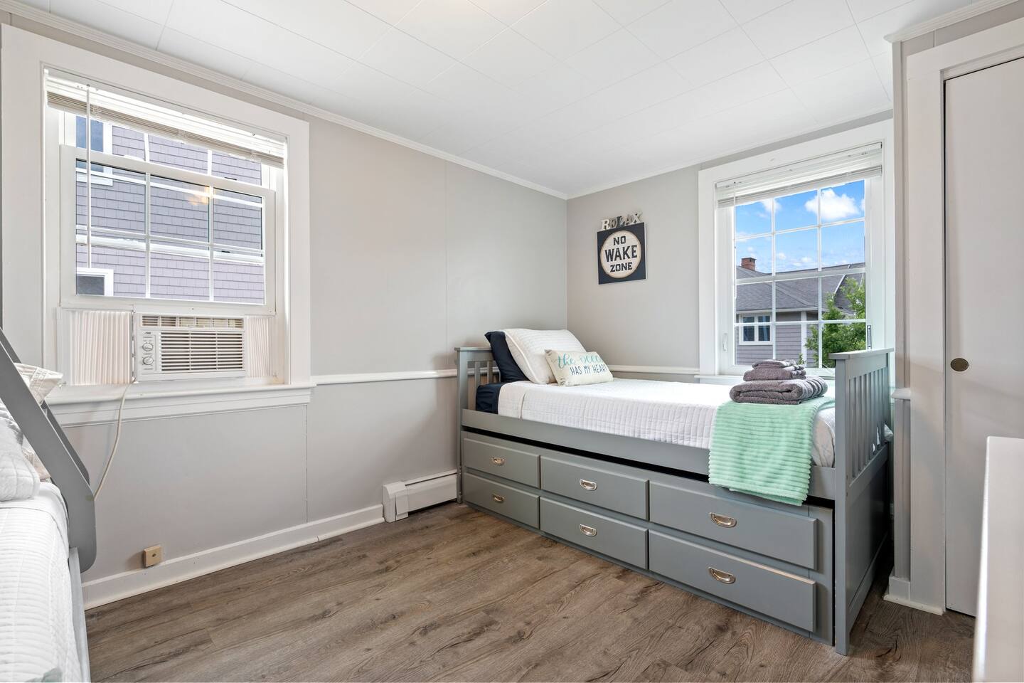 Please note this home is a duplex and has an identically-sized unit on the other side of the house. The outdoor area is considered a communal space for both units. Many larger families will book both sides of the duplex and find it's a great spot to call home base for the week. Please inquire about booking both sides of the home together for larger groups! There are window AC units in each of the three bedrooms in the summer. We also have portable fans to use in the living room area. Guests staying at this beach getaway have full access to all listed rooms and amenities. This home is located in a welcoming, residential neighborhood. The home is fitted with a smart door lock and a unique code will be given to guests prior to check-in. Seaside has enough parking for three vehicles in the driveway.