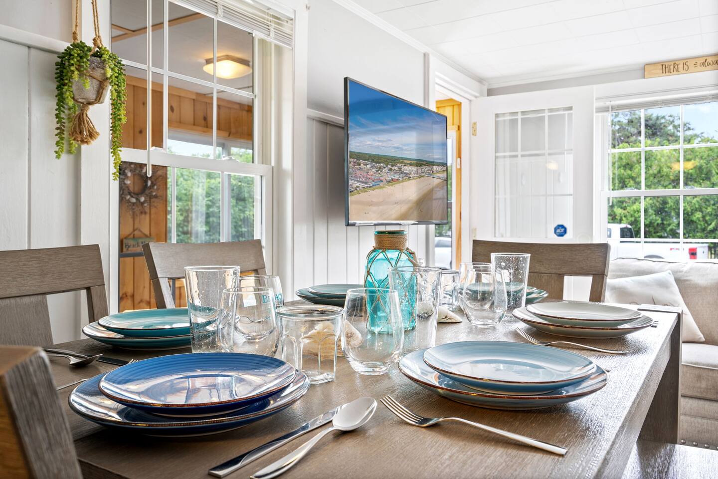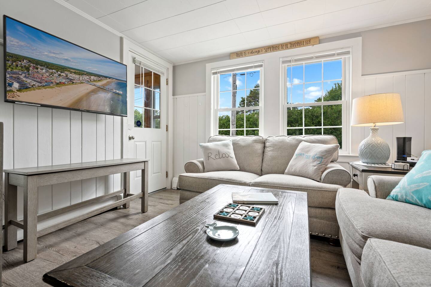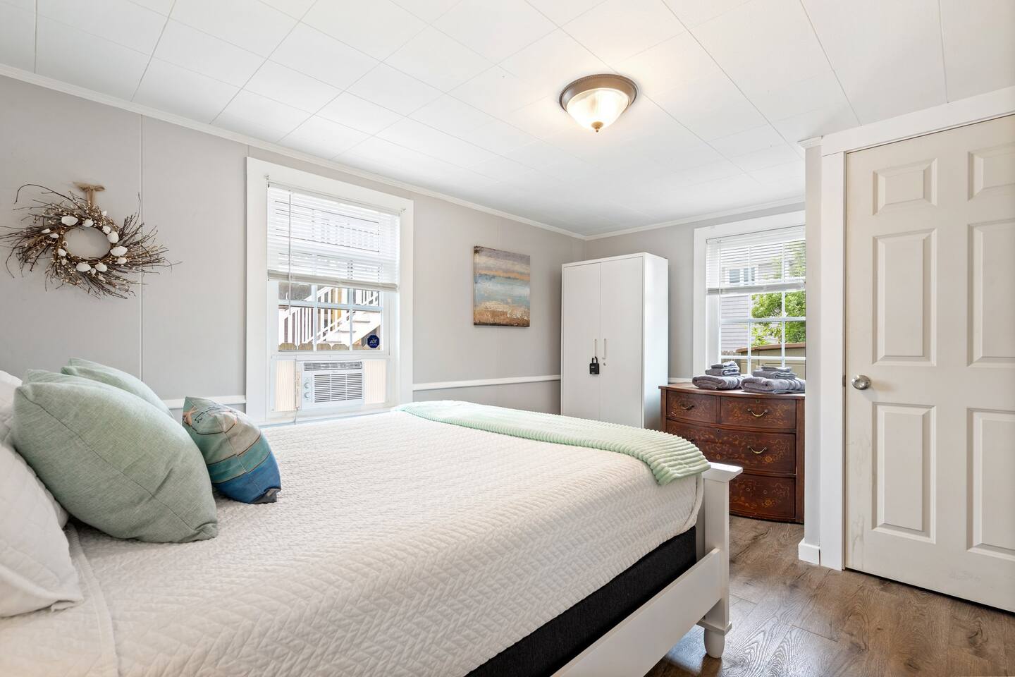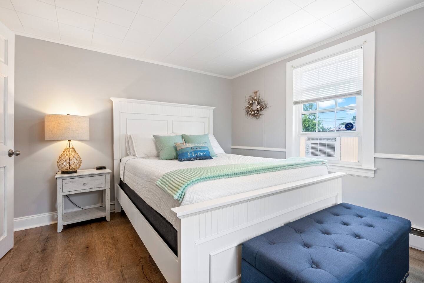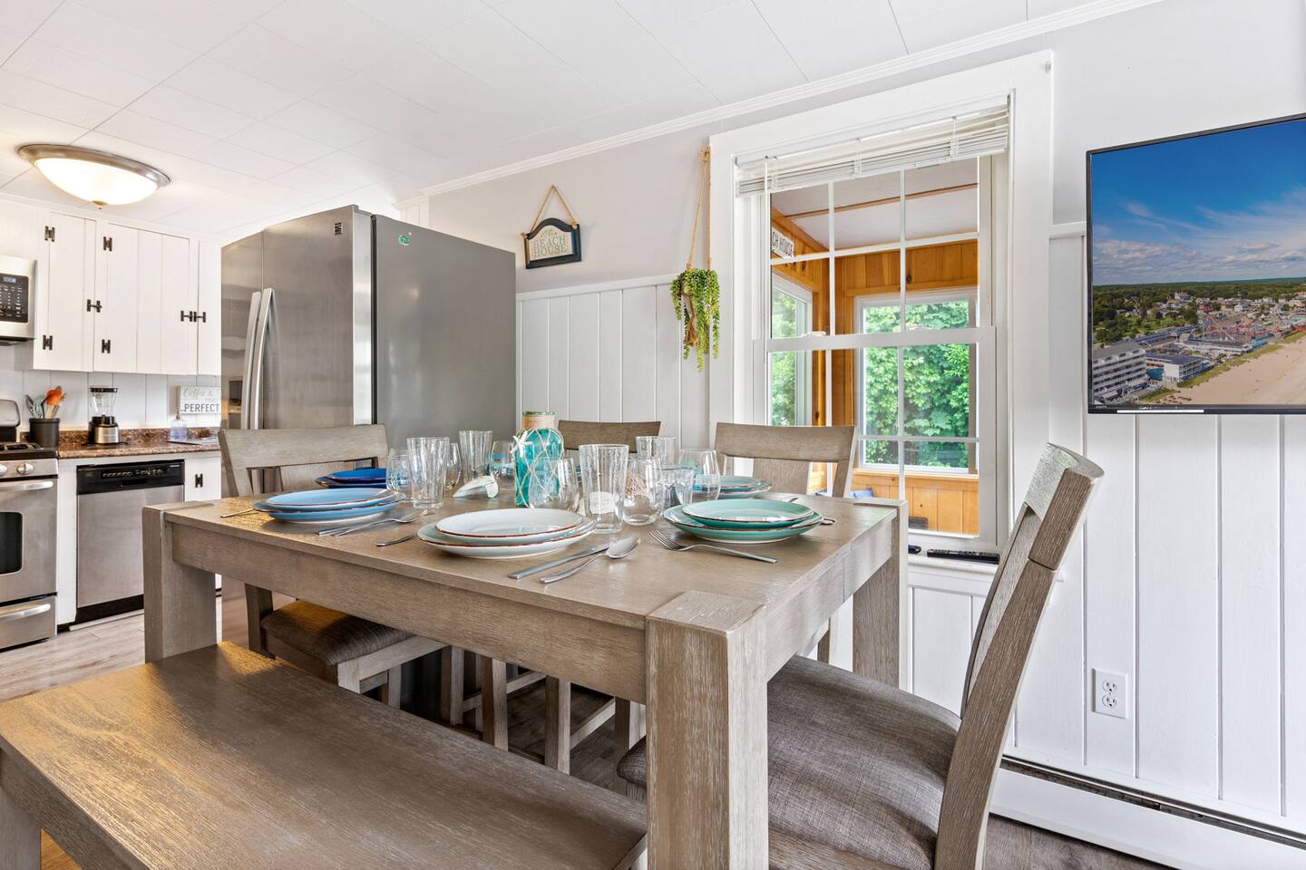 KEY FEATURES: ☀️ Sleeps 6 comfortably; 3 bedrooms; 6 beds - 2 queen, 3 twin and 1 double ☀️ 2 bathrooms, 1 full w/ combo tub/shower ☀️ Fully-equipped kitchen ☀️ 350MB satellite wifi ☀️ Dog-friendly ☀️ Steps from the beach ☀️ Board games, kids toys and family-friendly amenities ☀️ Beach essentials - blanket, umbrella, chairs, etc. ☀️ Sunny, (shared) patio with BBQ grill, outdoor dining and lounge furniture ☀️ Outdoor shower ☀️ NOTE: At 900 sq ft, the dining area and living room are a tight fit for a large group ☀️ Duplex - inquire about renting both sides for larger gatherings! Here Are A Few Kind Words From Past Guests: "A very tidy duplex a stone's throw from the beach. The perfect location to create family memories. As a bonus it is in walking distance to the pier without all the traffic." - Marianne "My husband and 2 small children spent a week at Maggie’s and it was absolutely perfect. I could not speak more highly of the home and also the location." - Rachel "This cozy cottage is perfectly located for easy beach access. The space is small, but has everything you need. Most of the cottage is updated with nice touches. Some beach chairs, an umbrella, and beach toys were also provided, which was great. You can't beat the beach and the location." - Susan ☆☆ BEDROOMS ☆☆ This quaint beach getaway accommodates 6 guests in 3 bedrooms. One bedroom is located on the first floor in the back of the apartment. It's fitted with a queen size bed, a dresser as well as a closet for extra storage. The master bedroom is located on the second floor of the home and is fitted with a queen-size bed, a closet and a small, half ensuite bathroom. The final bedroom, fitted with three twins and one full sized bed, is located on the second floor and has a closet for storage. All bedrooms are equipped with window a/c units. ☆☆ BATHROOMS ☆☆ There are two bathrooms in this home, each of them stocked with all the essentials you need for the duration of your stay. The full bathroom is located on the first floor of the home and has a shower/tub combo. The master bedroom on the second floor contains a small, half ensuite bathroom. ☆☆ KITCHEN, DINING & LIVING ROOM ☆☆ The kitchen area is small but mighty, and is fully equipped with all the appliances, utensils and cookware you need to feel at home. There's a dining table in the kitchen which seats 6. Note: Dining table has 4 chairs and a bench for 2 additional guests. All dining essentials are provided to enjoy a comfortable home-cooked meal at the table. The living room is situated on the main level of the home and is kitted with a smart TV with a Roku entertainment system, allowing full access to your favorite streaming services. There is seating for 5 people in the living room. Living room equipped with window a/c unit for comfort! This unit features a cozy sun room at the front of the home equipped with seating for 4. It's the perfect spot to enjoy a morning cup of coffee and listen to the waves crashing! ☆☆ OUTSIDE SPACE ☆☆ The exterior area of this home boasts a (shared) patio out front with dining furniture for 6 people, as well as lounge furniture for 10. There is a private outdoor shower allowing guests to wash the sand off before heading back inside! There is a private gas grill for guest use year-round. ☆☆ ADDITIONAL GUEST EXPERIENCES ☆☆ Looking to make your stay extra special? We partner with local businesses to help take your trip to the next level. We’re happy to help coordinate the following services: 🛶 Kayak & SUP Rentals (inquire about 10% off!) 🚲 Bike Rentals (inquire about 10% off!) 🍽️ Private Chef 💆🏻♀️ In-home Massage ★☆ Book Today & Let Us Take Care Of You In Old Orchard Beach! ☆★