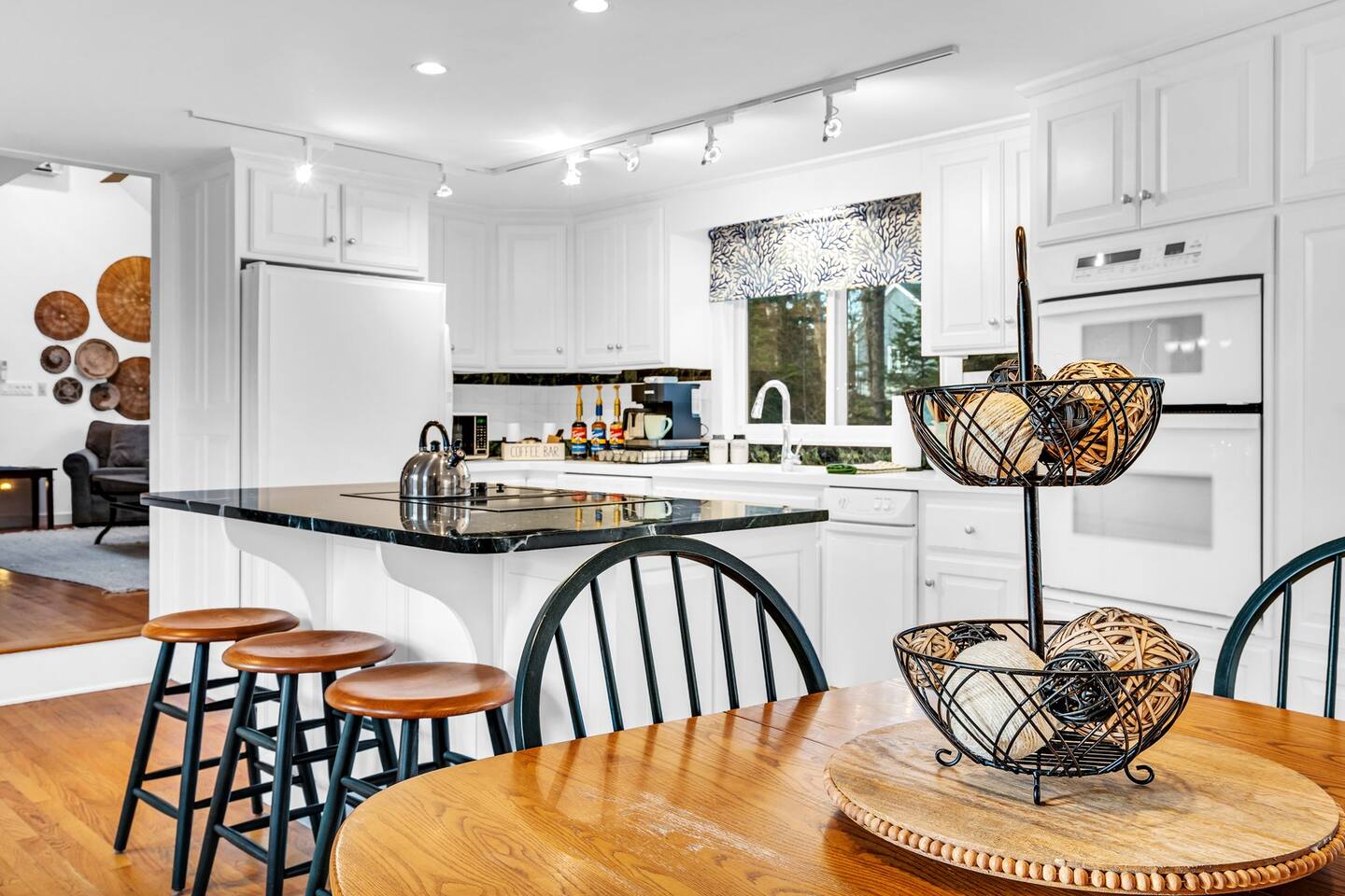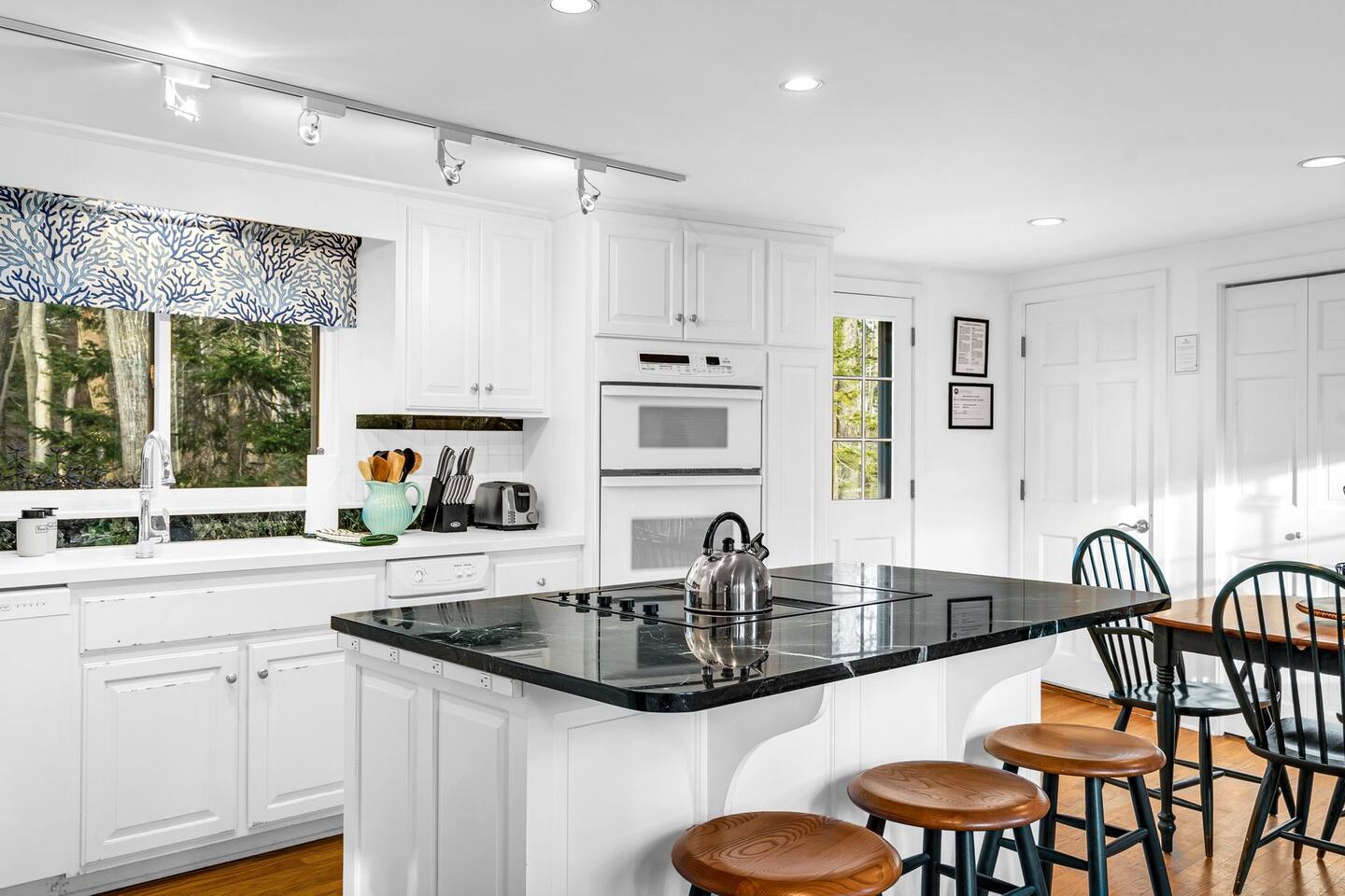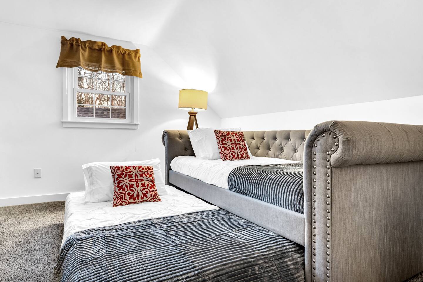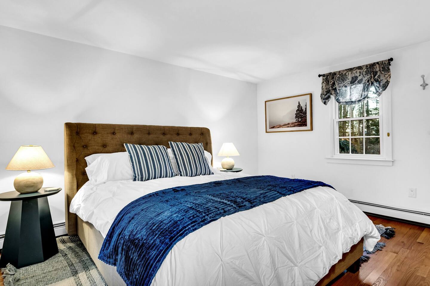 KEY FEATURES: ☀️ Sleeps 9; 3 bedrooms - 1 king, 1 queen, 1 double, 2 twin and 1 sofa bed ☀️ 3 full bathrooms, all w/ shower and tub combo ☀️ Modern and fully-equipped kitchen ☀️ Minutes from downtown Kennebunk/Kennebunkport and several beaches ☀️ Fire pit with seating for six ☀️ 350MB satellite wifi with dedicated workspace ☀️ Board games, kids toys and family-friendly amenities ☀️ Sunny patio with grill, spacious yard and outdoor dining furniture ☀️ Dogs welcome! ☀️ Located right down the road from the President Bush Compound (Walker's Point) Here Are A Few Kind Words From Past Guests: "This house was spotless. The layout is wonderful and a perfect house for a family with a dog. We loved the walk along the ocean into town." - Liz "This is a beautiful Airbnb! The home is in a very nice, quiet neighborhood of lovely homes and was very comfortable and well equipped for 6 adults and a dog. We enjoyed the closeness to Dock Square -- just a short drive -- for dining and shopping. A quick walk to see the ocean was an incredible bonus to staying in this home. Highly recommend!" - Arden "The house is in a GREAT spot! It's absolutely lovely! The house was super clean and everything was just as expected. It's definitely worth booking! If you have a bicycle, bring it, it's just a short bike ride to down town :)" - Heather "The home is in a very nice neighborhood and walking distance to the ocean. A really short drive to the downtown area as well. It was as described in the listing. Definitely would recommend." - Lena ☆☆ BEDROOMS ☆☆ This spacious coastal Maine home accommodates 9 guests comfortably in 3 bedrooms plus additional sleeping areas in the living room and loft area. The master bedroom is located on the main floor of the home and is fitted with a king-size bed and a full ensuite bathroom. The second bedroom, fitted with a queen bed, is also on the first floor and has access to a full bathroom located in the hallway right outside the bedroom. Head up the spiral staircase to the upper level which accommodates another four guests, two of which can sleep in the third bedroom. This bedroom features a double bed. There is a loft area outside the bedroom which has a daybed with an accompanying trundle. The third full bathroom is located on this floor. ☆☆ BATHROOMS ☆☆ There are three full bathrooms in this home, each of them stocked with all the essentials you need for the duration of your stay. The master bedroom on the main floor contains a full ensuite bathroom, while one full bathroom is located just across the hallway and easily accessible for the guests staying in the secondary bedroom. The ensuite boasts a large combination shower and tub. The third full bathroom is located on the second level of the home, right between the loft area and third bedroom. Worry about nothing with these thoughtfully stocked bathrooms that provide everything you need and more. ☆☆ KITCHEN, DINING & LIVING ROOMS ☆☆ The bright and airy kitchen is fully equipped with all the appliances, utensils and cookware you need to feel at home. There's a small dining table in the kitchen which seats 4, as well as 3 barstools at the island. The main dining room table seats 6 guests. Both living rooms are situated on the main level of the home and are each kitted with smart TVs. Both rooms receive ample natural light from the large windows. There is seating for 10 people between the two rooms. The living rooms are located right next to each other. ☆☆ OUTSIDE SPACE ☆☆ The exterior area of this home boasts patios both out front and in the back yard. Roast marshmallows over the fire out back with seating for six. In the warmer months, an outdoor dining area with an umbrella and seating for four is situated on the front patio. There is a grill for guest use year-round. ☆☆ ADDITIONAL GUEST EXPERIENCES ☆☆ Looking to make your stay extra special? We partner with local businesses to help take your trip to the next level. We’re happy to help coordinate the following services: 🛶 Kayak & SUP Rentals (inquire about 10% off!) 🚲 Bike Rentals (inquire about 10% off!) 🍽️ Private Chef 💆🏻♀️ In-home Massage ★☆ Book Today & Let Us Take Care Of You In Kennebunkport! ☆★