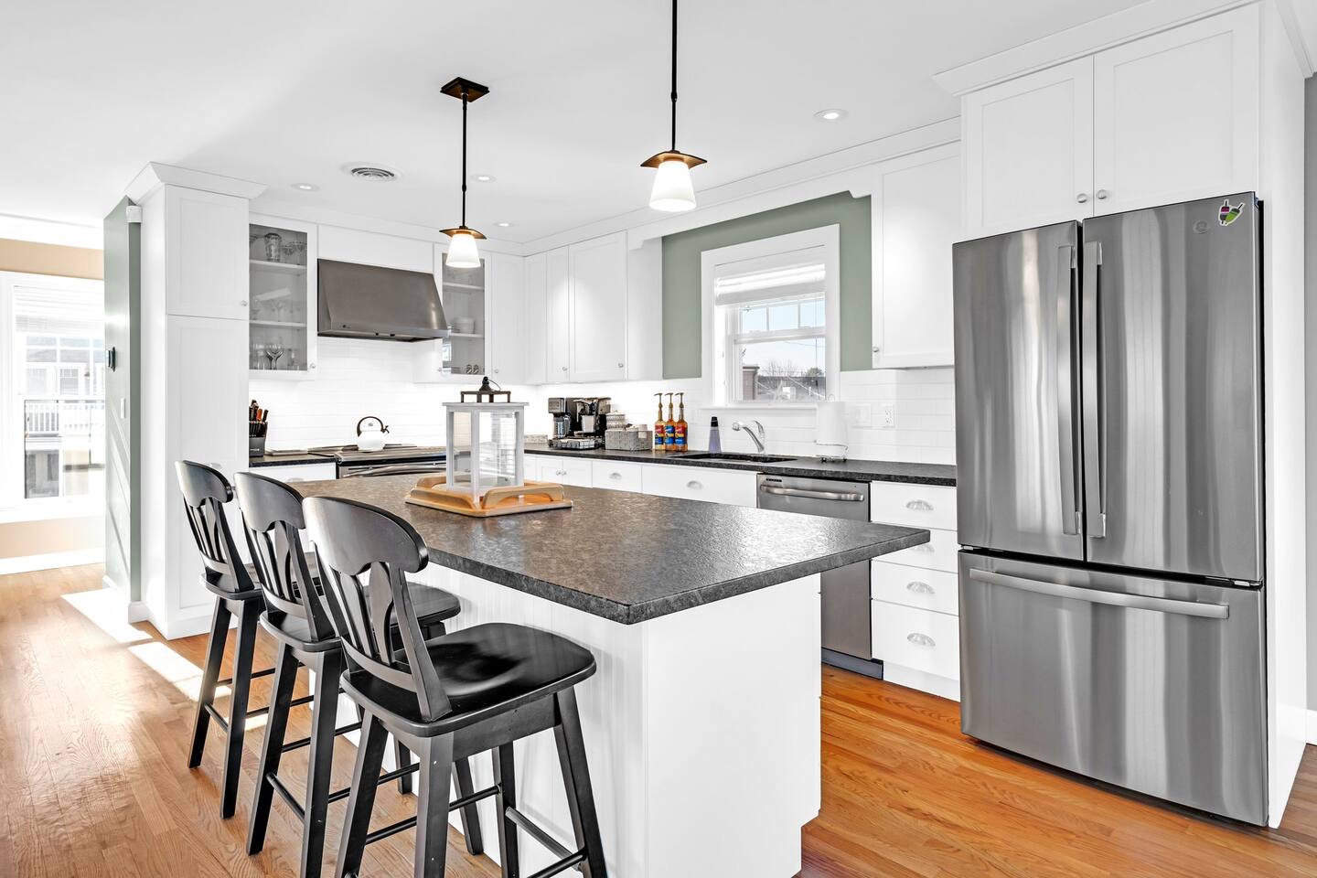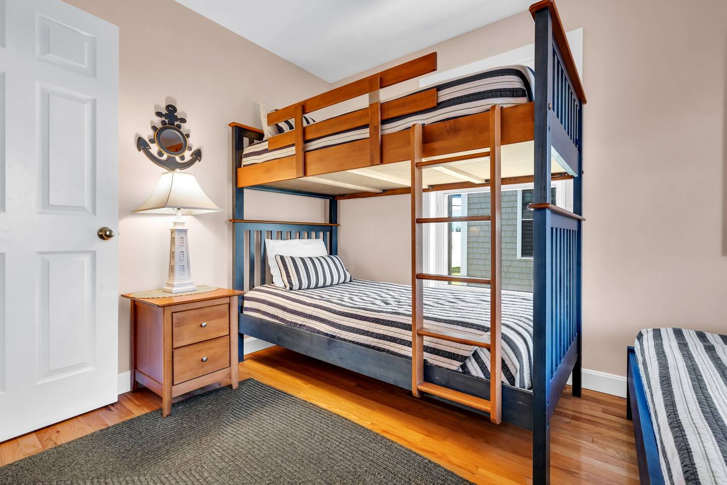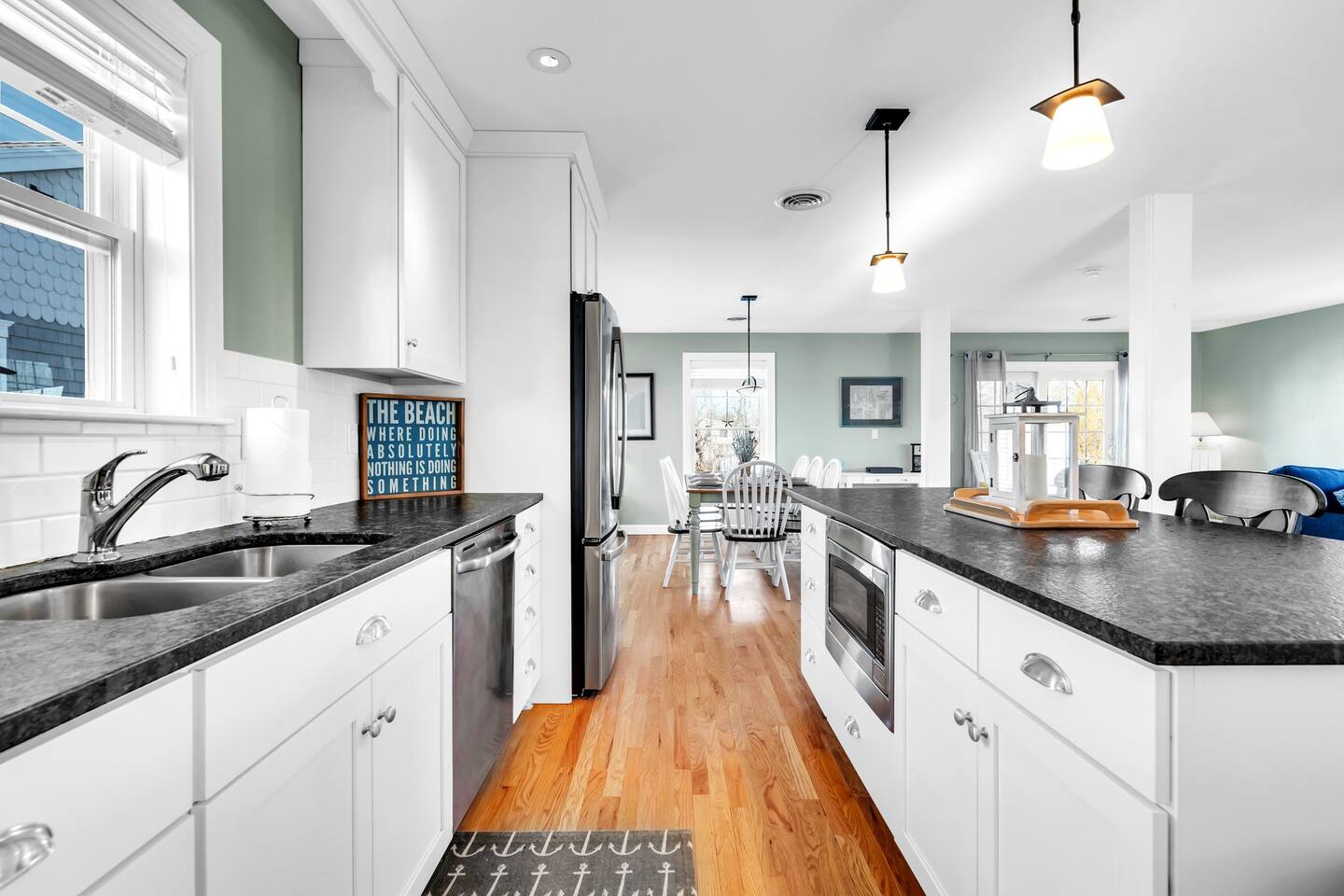 KEY FEATURES: ☀️ Sleeps 8; 3 bedrooms; 6 beds - 2 queen, 3 twin and 1 sofa bed ☀️ 2.5 bathrooms - 1 full w/ combo tub/shower, 1 full with shower ☀️ Steps from the ocean! ☀️ Modern, fully-equipped chef's kitchen ☀️ 350MB satellite wifi ☀️ Board games, kids toys and family-friendly amenities ☀️ 2nd story deck with lounge furniture ☀️ Beach essentials - blanket, umbrella, chairs, etc. ☀️ Beach/yard games, gas grill and private backyard Here Are A Few Kind Words From Past Guests: "The house is beautiful and the location perfect. 3 minute walk (slow walk) to the ocean. Excellent amenities and the deck off the second floor was wonderful to just sit and talk. Amazing view and very peaceful. I would absolutely book this place again!" - Cathryn "Stay here for a Maine vacation. Quiet lovely neighborhood. One minute walk to the beach. Life changing sunrises and red orange sunsets. Walking distance to the Wells Lobster Pound. So perfectly located. The home is absolutely gorgeous and immaculate." - Clifford "Perfect home for our girls trip. So convenient to everything. The home was comfortable and cozy. The bedrooms were spacious. And the upstairs was amazing… open and extremely comfortable. The upper deck allows for terrific sunrise and sunset views." - Jana "The Home presents just as pictured. The deck is a wonderful place to watch the sunset. Great walking to the beach. Kitchen was well equipped. I would absolutely stay here again." - Cecilia ☆☆ BEDROOMS ☆☆ This updated ocean getaway accommodates 8 guests in 3 bedrooms as well as an additional sleeping area located on the second floor. All three bedrooms are on the first floor. The master bedroom is fitted with a queen size bed, two dressers, a smart TV and a full ensuite bathroom. The secondary bedroom is fitted with a queen-size bed, a dresser and a closet for extra storage. The final bedroom, fitted with three twin beds, includes a dresser and a closet. ☆☆ BATHROOMS ☆☆ There are three bathrooms in this home, each of them stocked with all the essentials you need for the duration of your stay. The master ensuite bathroom has a shower/tub combo. The second bathroom located on the first floor is situated between the secondary and twin bedrooms, and has a walk-in shower. The third bathroom is located on the second floor, easily accessible from the kitchen and living room for convenience. ☆☆ KITCHEN, DINING & LIVING ROOM ☆☆ The second floor of the home features a large, open-concept space which hosts the kitchen, dining area and living room. The bright and airy chef's kitchen is fully equipped with all the appliances, utensils and cookware you need to feel at home. There's a large island with three bar seats - a perfect spot to enjoy morning coffee while the chef of your group makes breakfast. Enjoy the full coffee bar which has all the coffee necessities you'll wish for. The dining area has a spacious table that seats 8 comfortably. The living room is kitted with a smart TV with a Roku entertainment system, allowing full access to your favorite streaming services. The sectional couch seats 7, and there's an additional seating area in the back of the room with a loveseat and two rocking chairs. You will love this room and all of the natural light that flows in! ☆☆ OUTSIDE SPACE ☆☆ The exterior area of this home boasts a 2nd story deck with lounge seating for 6 people to enjoy the stellar ocean views and relax to the sound of the waves crashing. There is a small, private back yard as well as a front lawn area to soak up the sun and play some lawn games. There is a gas grill available for guest use year-round. ☆☆ ADDITIONAL GUEST EXPERIENCES ☆☆ Looking to make your stay extra special? We partner with local businesses to help take your trip to the next level. We’re happy to help coordinate the following services: 🛶 Kayak & SUP Rentals (inquire about 10% off!) 🚲 Bike Rentals (inquire about 10% off!) 🍽️ Private Chef 💆🏻♀️ In-home Massage ★☆ Book Today & Let Us Take Care Of You In Wells! ☆★