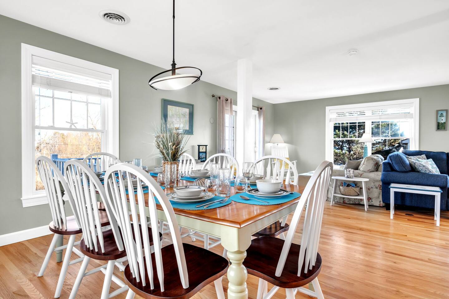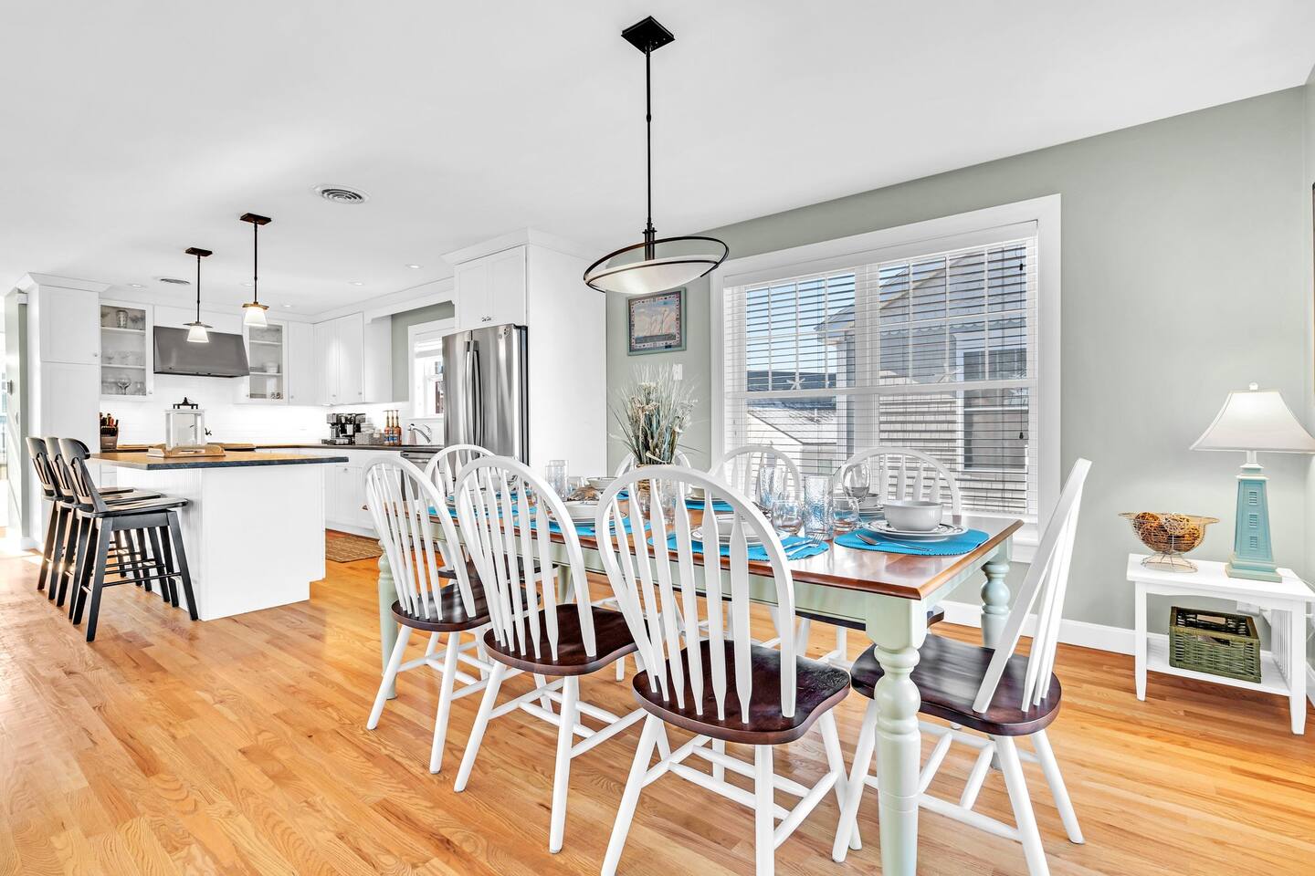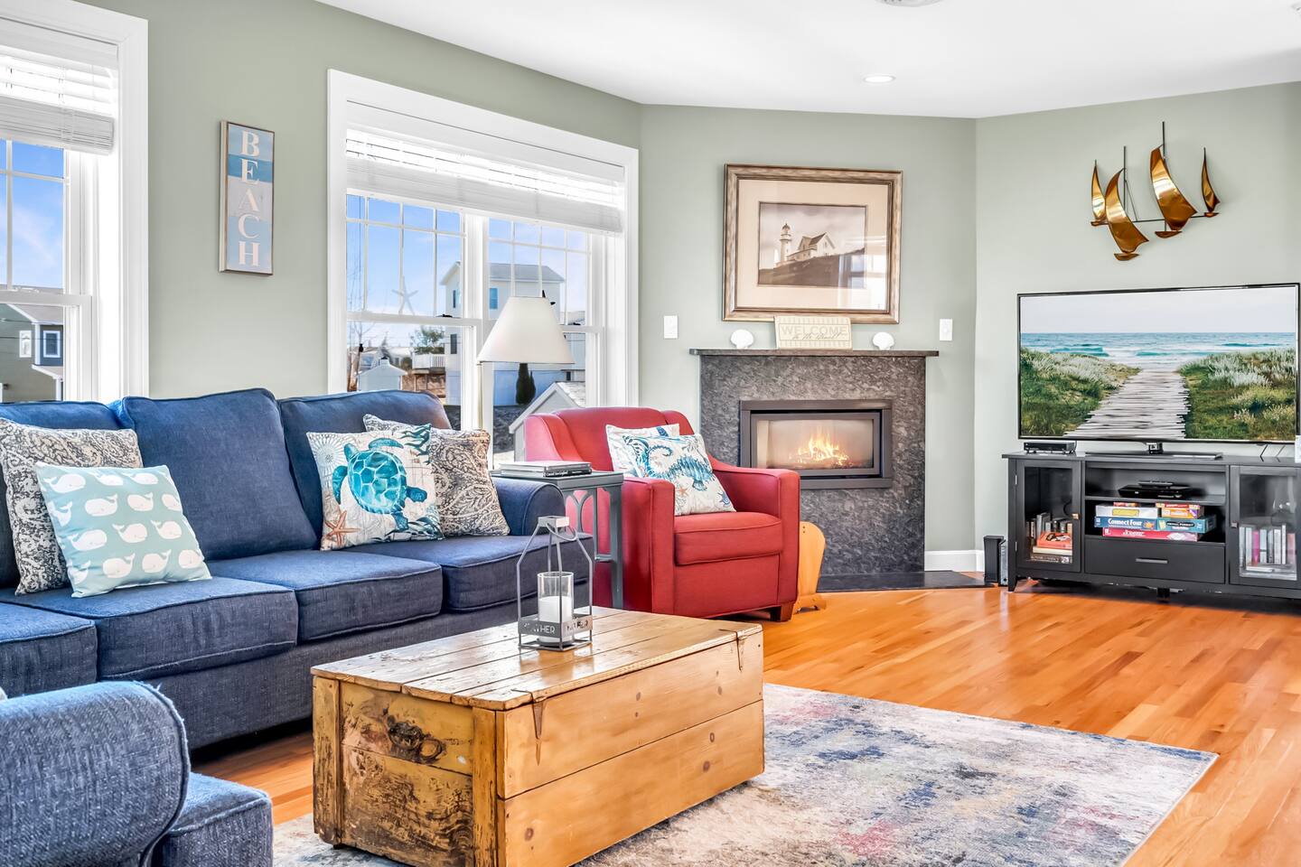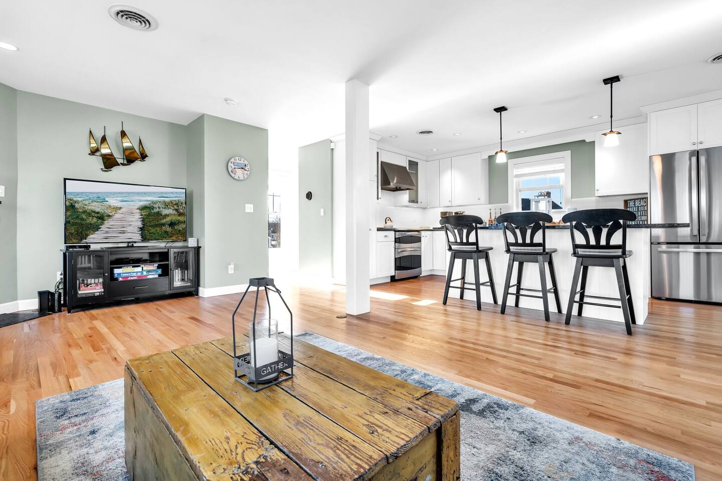KEY FEATURES: ☀️ Sleeps 8; 3 bedrooms; 6 beds - 2 queen, 3 twin and 1 sofa bed ☀️ 2.5 bathrooms - 1 full w/ combo tub/shower, 1 full with shower ☀️ Steps from the ocean! ☀️ Modern, fully-equipped chef's kitchen ☀️ 350MB satellite wifi ☀️ Board games, kids toys and family-friendly amenities ☀️ 2nd story deck with lounge furniture ☀️ Beach essentials - blanket, umbrella, chairs, etc. ☀️ Beach/yard games, gas grill and private backyard Here Are A Few Kind Words From Past Guests: "The house is beautiful and the location perfect. 3 minute walk (slow walk) to the ocean. Excellent amenities and the deck off the second floor was wonderful to just sit and talk. Amazing view and very peaceful. I would absolutely book this place again!" - Cathryn "Stay here for a Maine vacation. Quiet lovely neighborhood. One minute walk to the beach. Life changing sunrises and red orange sunsets. Walking distance to the Wells Lobster Pound. So perfectly located. The home is absolutely gorgeous and immaculate." - Clifford "Perfect home for our girls trip. So convenient to everything. The home was comfortable and cozy. The bedrooms were spacious. And the upstairs was amazing… open and extremely comfortable. The upper deck allows for terrific sunrise and sunset views." - Jana "The Home presents just as pictured. The deck is a wonderful place to watch the sunset. Great walking to the beach. Kitchen was well equipped. I would absolutely stay here again." - Cecilia ☆☆ BEDROOMS ☆☆ This updated ocean getaway accommodates 8 guests in 3 bedrooms as well as an additional sleeping area located on the second floor. All three bedrooms are on the first floor. The master bedroom is fitted with a queen size bed, two dressers, a smart TV and a full ensuite bathroom. The secondary bedroom is fitted with a queen-size bed, a dresser and a closet for extra storage. The final bedroom, fitted with three twin beds, includes a dresser and a closet. ☆☆ BATHROOMS ☆☆ There are three bathrooms in this home, each of them stocked with all the essentials you need for the duration of your stay. The master ensuite bathroom has a shower/tub combo. The second bathroom located on the first floor is situated between the secondary and twin bedrooms, and has a walk-in shower. The third bathroom is located on the second floor, easily accessible from the kitchen and living room for convenience. ☆☆ KITCHEN, DINING & LIVING ROOM ☆☆ The second floor of the home features a large, open-concept space which hosts the kitchen, dining area and living room. The bright and airy chef's kitchen is fully equipped with all the appliances, utensils and cookware you need to feel at home. There's a large island with three bar seats - a perfect spot to enjoy morning coffee while the chef of your group makes breakfast. Enjoy the full coffee bar which has all the coffee necessities you'll wish for. The dining area has a spacious table that seats 8 comfortably. The living room is kitted with a smart TV with a Roku entertainment system, allowing full access to your favorite streaming services. The sectional couch seats 7, and there's an additional seating area in the back of the room with a loveseat and two rocking chairs. You will love this room and all of the natural light that flows in! ☆☆ OUTSIDE SPACE ☆☆ The exterior area of this home boasts a 2nd story deck with lounge seating for 6 people to enjoy the stellar ocean views and relax to the sound of the waves crashing. There is a small, private back yard as well as a front lawn area to soak up the sun and play some lawn games. There is a gas grill available for guest use year-round. ☆☆ ADDITIONAL GUEST EXPERIENCES ☆☆ Looking to make your stay extra special? We partner with local businesses to help take your trip to the next level. We’re happy to help coordinate the following services: 🛶 Kayak & SUP Rentals (inquire about 10% off!) 🚲 Bike Rentals (inquire about 10% off!) 🍽️ Private Chef 💆🏻♀️ In-home Massage ★☆ Book Today & Let Us Take Care Of You In Wells! ☆★