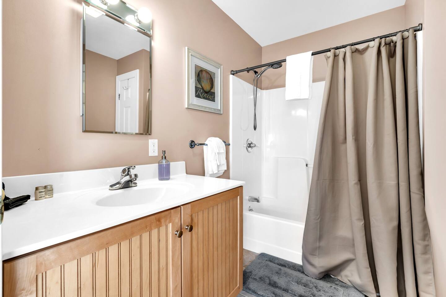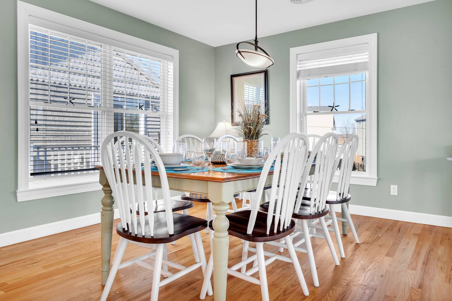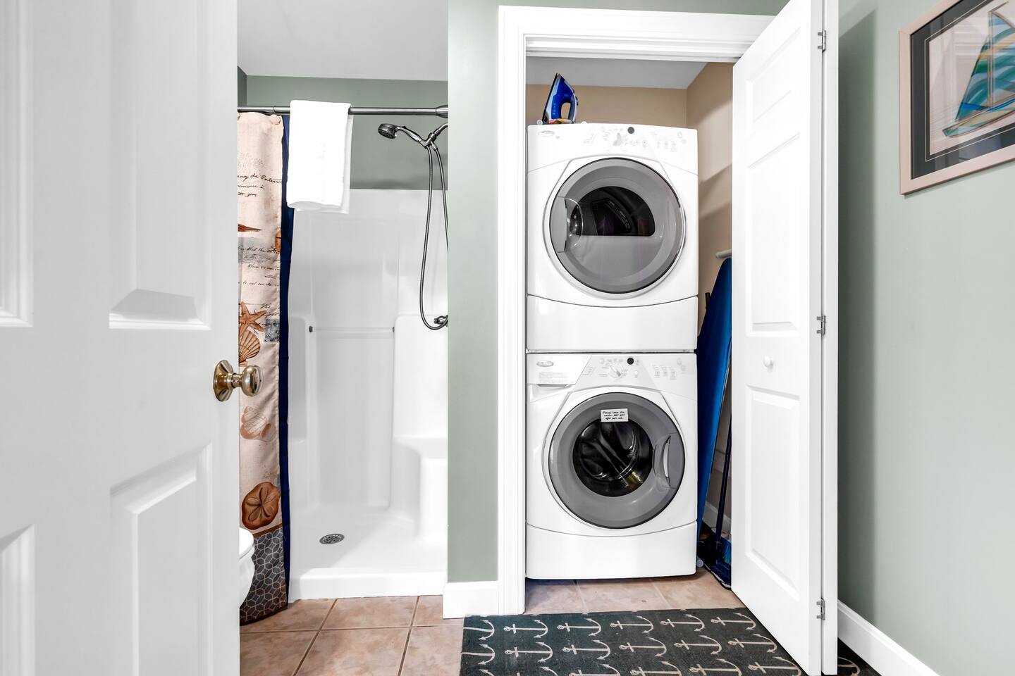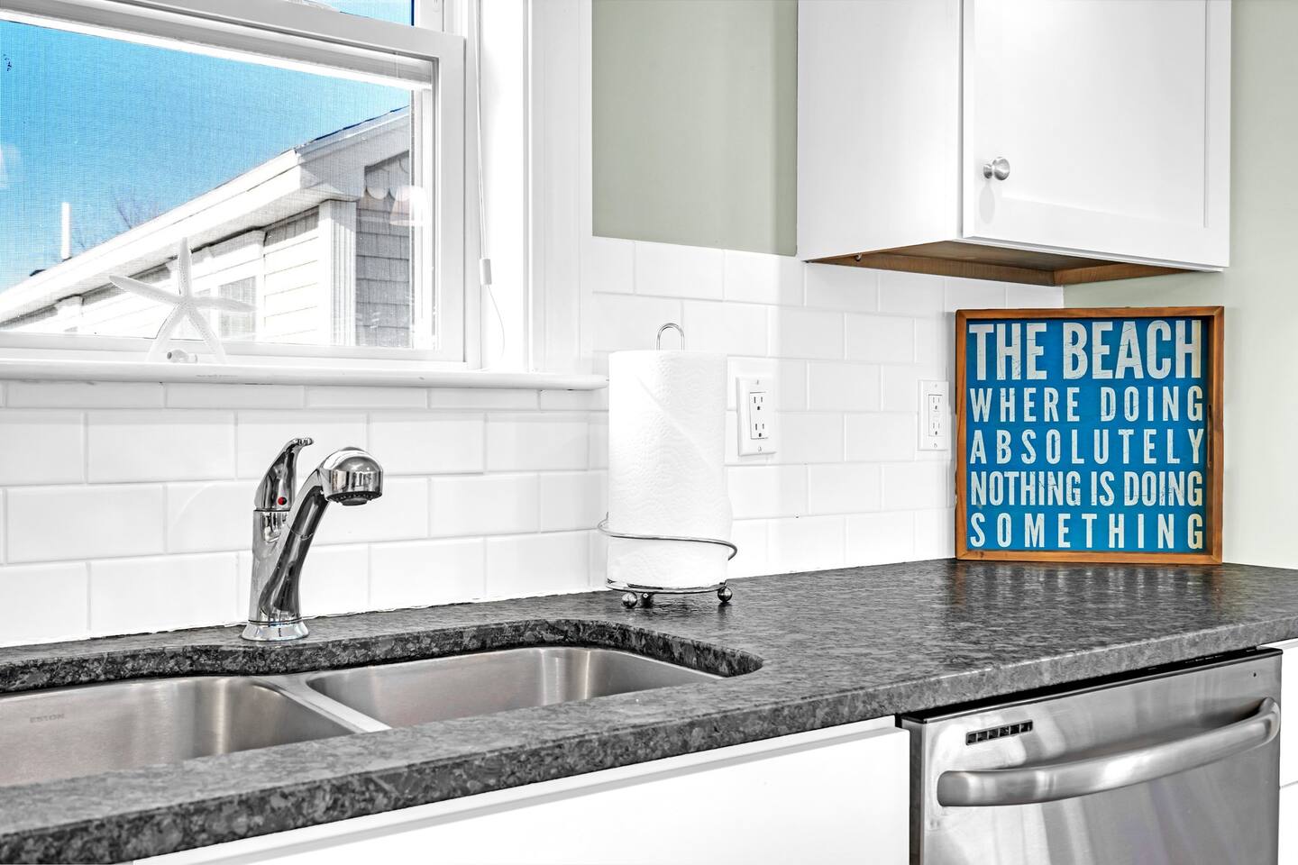 Guests staying at this beach getaway have full access to all listed rooms and amenities. There are multiple smart TVs in the home equipped with streaming services. Guests are welcome to use the laundry machines located in the first floor bathroom. There is enough parking for three vehicles in the driveway. The entire home has central air for both heat and AC. This home is located in a welcoming, residential neighborhood. The home is fitted with a smart door lock and a unique code will be given to guests prior to check-in.