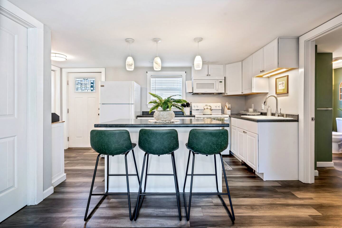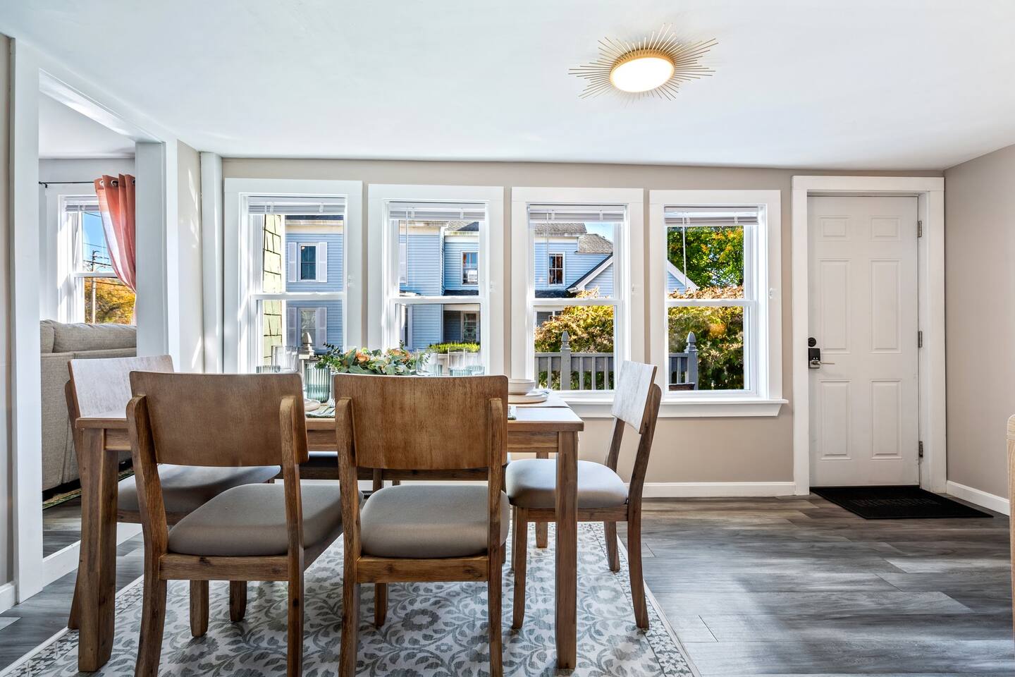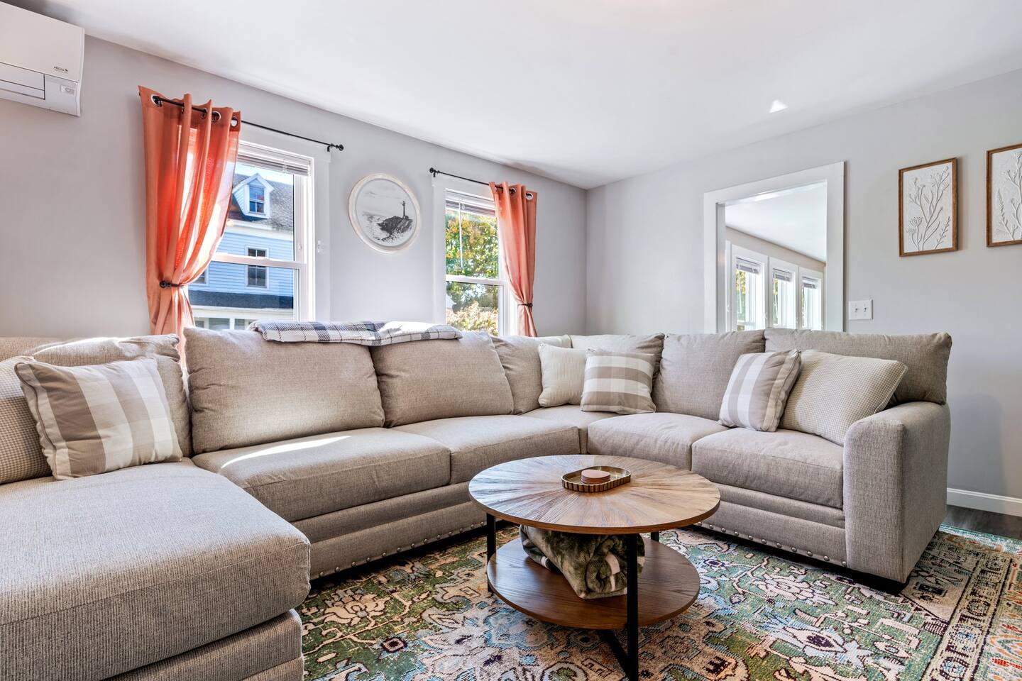 KEY FEATURES: βοΈ Sleeps 6 across 2 bedrooms β 1 king, 1 queen, 1 queen sofa bed in living room βοΈ 1 bathroom w/ standing shower βοΈ Parking for 4 cars in driveway, plus free street parking βοΈ Modern and well-equipped kitchen w/ fully stocked coffee bar βοΈ Super walkable location βοΈ 350MB Fiber WiFi and Roku entertainment systems throughout the apartment βοΈ Perfect for traveling nurses or other professionals βοΈ Dog friendly & family friendly amenities provided β dog bowls, pack n play, high chair, baby gate βοΈ Board games and kids toys βοΈ Shared rock patio with Solo Stove firepit, picnic table and outdoor furniture βοΈ Washer/dryer in unit βοΈ Larger group? Inquire about booking along with The Saco Suite, a 1 bed/1 bath apartment in the same building. Together they sleep 10 people ββ BEDROOMS ββ This cozy coastal apartment accommodates 6 guests in 2 bedrooms and a queen sofa bed located in the living room. Both bedrooms are on the first floor of the home. The master bedroom is equipped with a king size bed, a 43β Roku TV, a dresser and a closet for extra storage. The secondary bedroom is equipped with a queen size bed, a 43β Roku TV, and a dresser located inside the closet. ββ BATHROOM ββ There is one bathroom located off the kitchen. There is a medium-sized standing shower, and the washer and dryer are located in the bathroom. The bathroom is stocked with all the essentials you need for the duration of your stay. ββ KITCHEN, DINING AND LIVING ROOM ββ The bright and airy kitchen is fully equipped with all the appliances, utensils and cookware you need to feel at home. Enjoy coffee or tea on us at the fully-stocked coffee bar π The dining room, located adjacent to the kitchen, provides a formal setting for medium-sized gatherings with family and friends. The dining table seats 6 comfortably, and there is additional seating for 3 at the kitchen island. The living room features an oversized sectional couch, perfect for relaxing and watching a movie after a long day of exploring Maine. There is a queen sofa bed to accommodate additional guests and a 55" Smart Roku TV. ββ OUTSIDE SPACE ββ The exterior area of this home boasts a shared backyard area which has a Solo Stove firepit, picnic table and outdoor furniture. This area is shared with The Saco Suite, another unit in the building which hosts 4 guests. The Downtown Den also has a long, skinny porch with a few chairs and a table for enjoying morning coffee. On the deck is a 2-burner Weber grill for guest use year-round. ββ ADDITIONAL GUEST EXPERIENCES ββ Looking to make your stay extra special? We partner with local businesses to help take your trip to the next level. Weβre happy to help coordinate the following services: πΆ Kayak & SUP Rentals (inquire about 10% off!) π² Bike Rentals (inquire about 10% off!) π½οΈ Private Chef ππ»ββοΈ In-home Massage β β Book Today & Let Us Take Care Of You In Saco! ββ