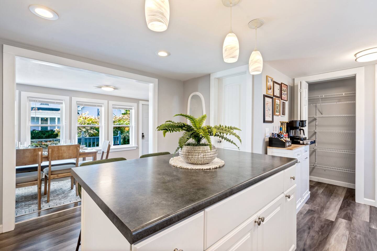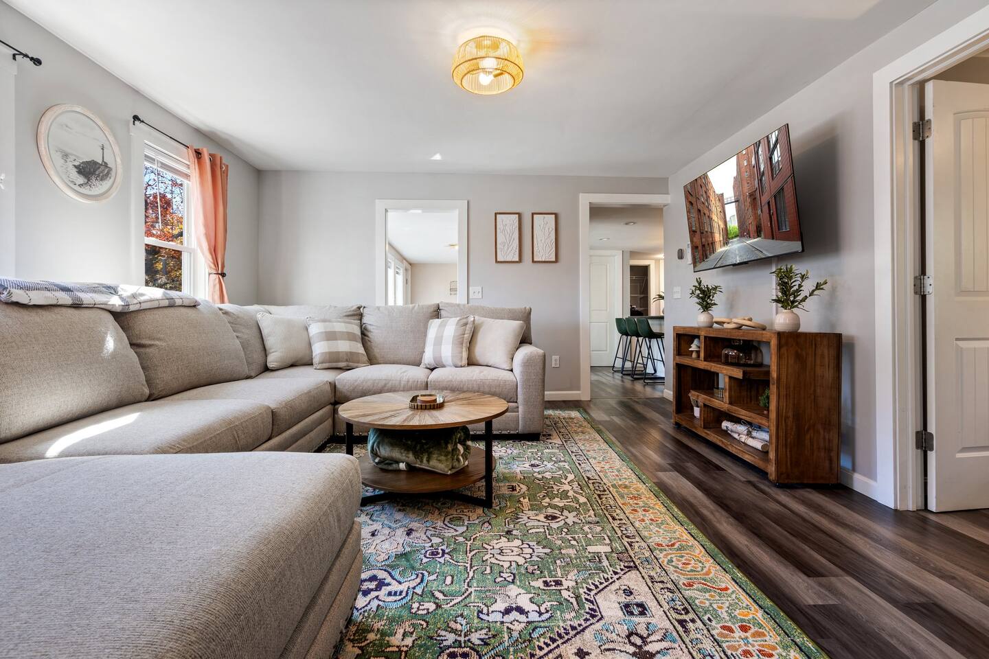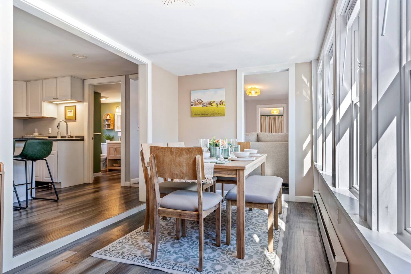 KEY FEATURES: βοΈ Sleeps 6 across 2 bedrooms β 1 king, 1 queen, 1 queen sofa bed in living room βοΈ 1 bathroom w/ standing shower βοΈ Parking for 4 cars in driveway, plus free street parking βοΈ Modern and well-equipped kitchen w/ fully stocked coffee bar βοΈ Super walkable location βοΈ 350MB Fiber WiFi and Roku entertainment systems throughout the apartment βοΈ Perfect for traveling nurses or other professionals βοΈ Dog friendly & family friendly amenities provided β dog bowls, pack n play, high chair, baby gate βοΈ Board games and kids toys βοΈ Shared rock patio with Solo Stove firepit, picnic table and outdoor furniture βοΈ Washer/dryer in unit βοΈ Larger group? Inquire about booking along with The Saco Suite, a 1 bed/1 bath apartment in the same building. Together they sleep 10 people ββ BEDROOMS ββ This cozy coastal apartment accommodates 6 guests in 2 bedrooms and a queen sofa bed located in the living room. Both bedrooms are on the first floor of the home. The master bedroom is equipped with a king size bed, a 43β Roku TV, a dresser and a closet for extra storage. The secondary bedroom is equipped with a queen size bed, a 43β Roku TV, and a dresser located inside the closet. ββ BATHROOM ββ There is one bathroom located off the kitchen. There is a medium-sized standing shower, and the washer and dryer are located in the bathroom. The bathroom is stocked with all the essentials you need for the duration of your stay. ββ KITCHEN, DINING AND LIVING ROOM ββ The bright and airy kitchen is fully equipped with all the appliances, utensils and cookware you need to feel at home. Enjoy coffee or tea on us at the fully-stocked coffee bar π The dining room, located adjacent to the kitchen, provides a formal setting for medium-sized gatherings with family and friends. The dining table seats 6 comfortably, and there is additional seating for 3 at the kitchen island. The living room features an oversized sectional couch, perfect for relaxing and watching a movie after a long day of exploring Maine. There is a queen sofa bed to accommodate additional guests and a 55" Smart Roku TV. ββ OUTSIDE SPACE ββ The exterior area of this home boasts a shared backyard area which has a Solo Stove firepit, picnic table and outdoor furniture. This area is shared with The Saco Suite, another unit in the building which hosts 4 guests. The Downtown Den also has a long, skinny porch with a few chairs and a table for enjoying morning coffee. On the deck is a 2-burner Weber grill for guest use year-round. ββ ADDITIONAL GUEST EXPERIENCES ββ Looking to make your stay extra special? We partner with local businesses to help take your trip to the next level. Weβre happy to help coordinate the following services: πΆ Kayak & SUP Rentals (inquire about 10% off!) π² Bike Rentals (inquire about 10% off!) π½οΈ Private Chef ππ»ββοΈ In-home Massage β β Book Today & Let Us Take Care Of You In Saco! ββ