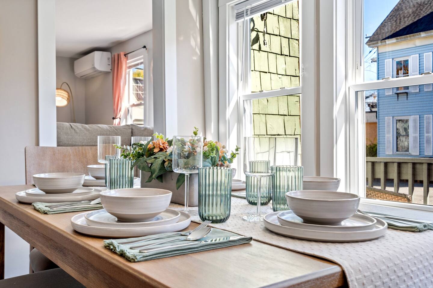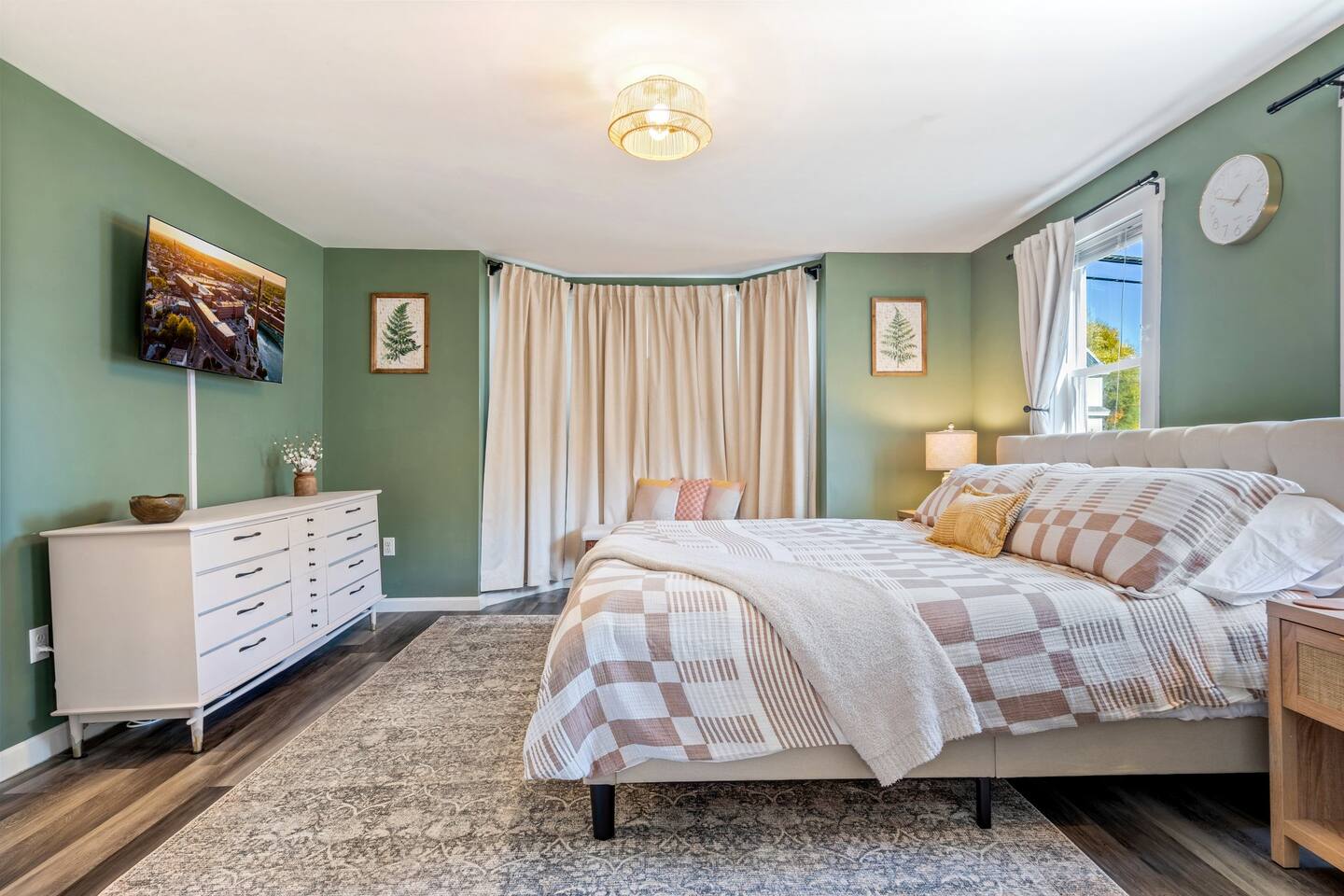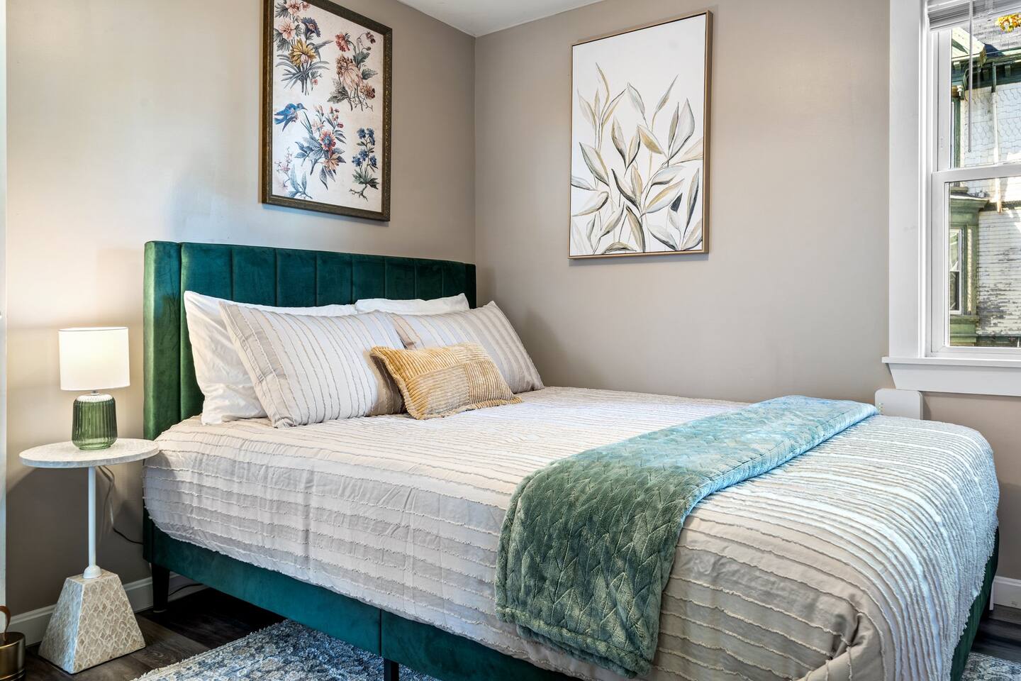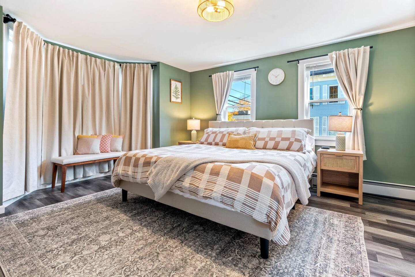 Guests will have access to all described rooms and amenities. PLEASE NOTE this apartment is located in a 3-unit building. There is a very friendly longtime tenant who lives above The Downtown Den, and you will hear him coming and going at times. We have noise machines in each bedroom to help any light sleepers who like to catch that extra hour of beauty sleep :) The apartment is about 1,100 square feet total. The living room has a heat pump for AC, and each bedroom has window AC units during the summer. The apartment has baseboard heating controlled by a thermostat. There is parking for 4 vehicles in the driveway, as well as free street parking available. Youβll receive a code for the smart lock for secure and easy entrance into the home. Please note there is a large run down Victorian home right next door that is owned by the City of Biddeford. It can cause a minor unsightly view once you're first getting to the property. The city is scheduled to start renovating the building in the summer of 2025 and we can't wait to see it restored to its original beauty!