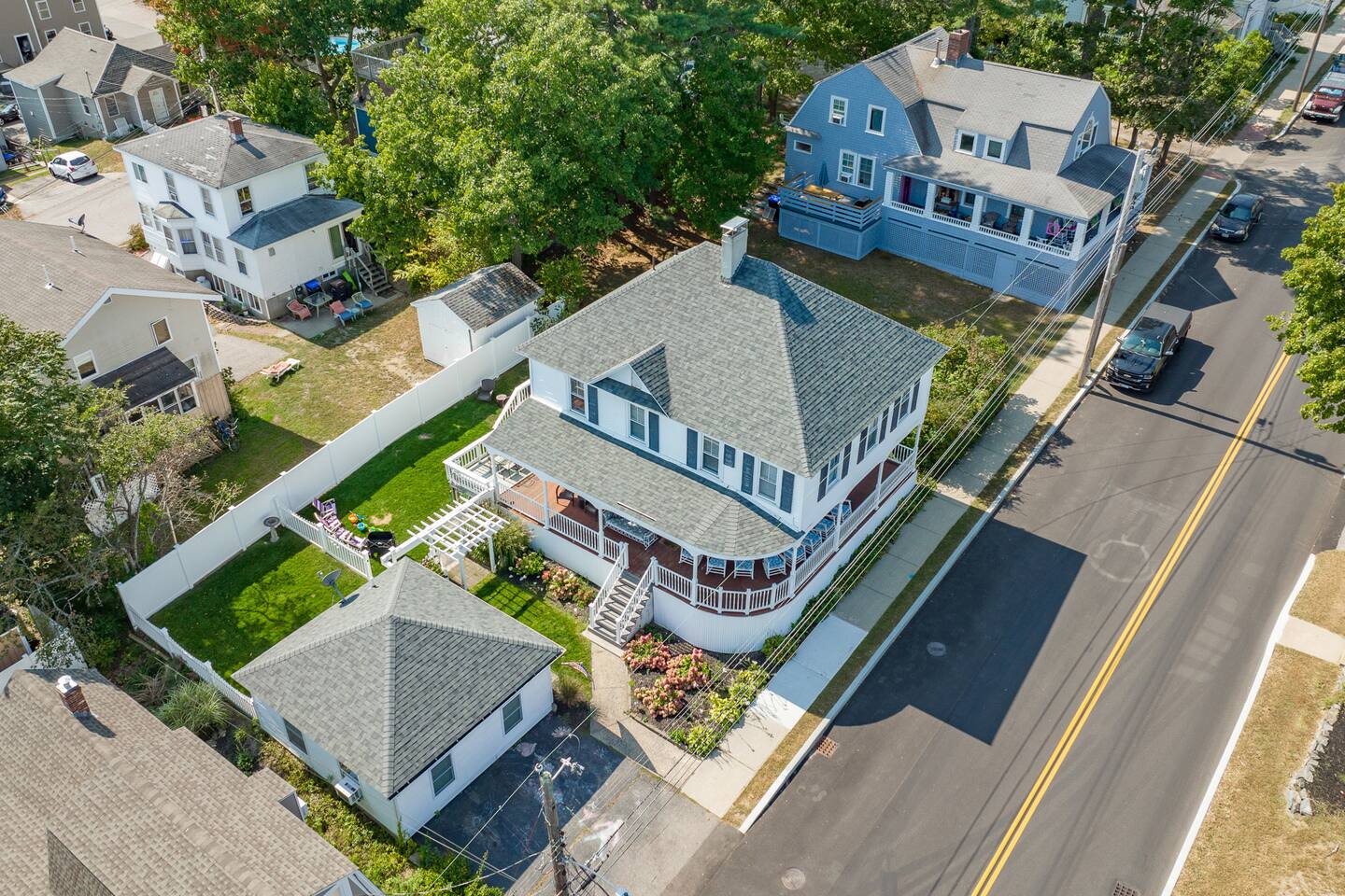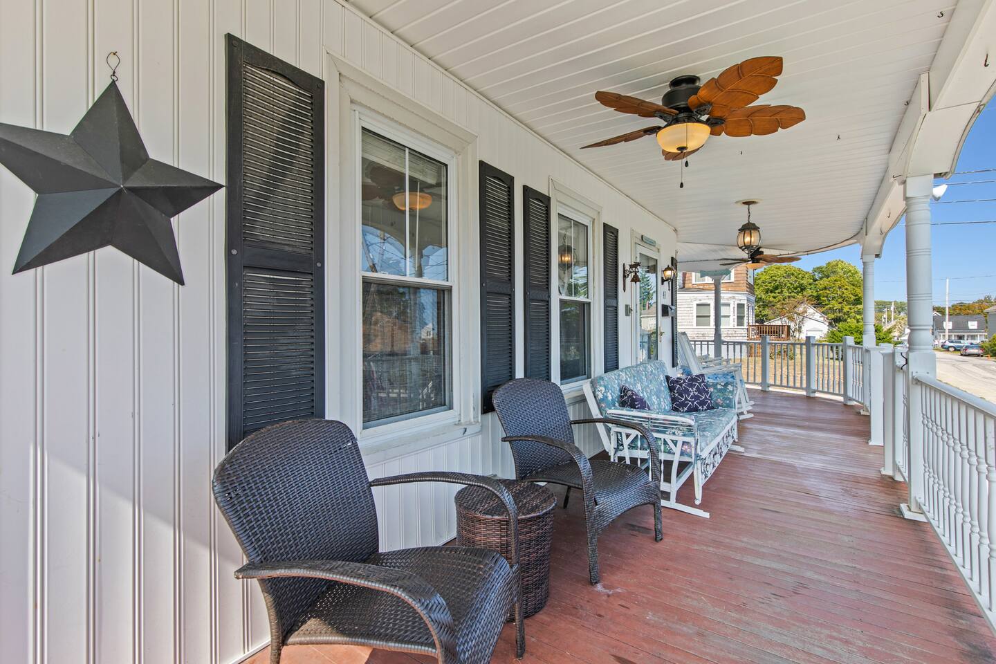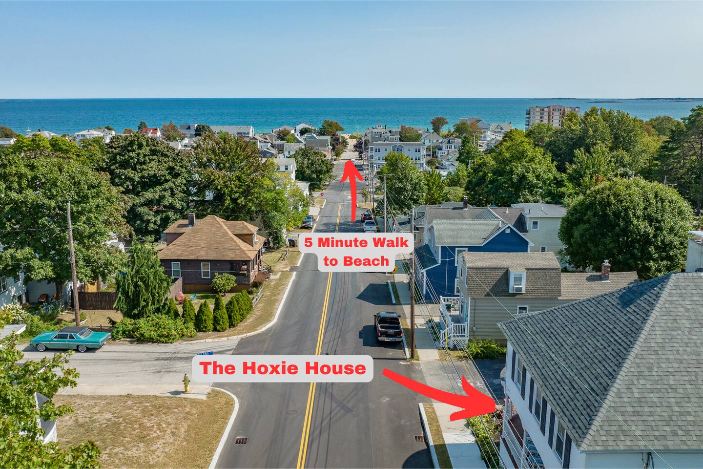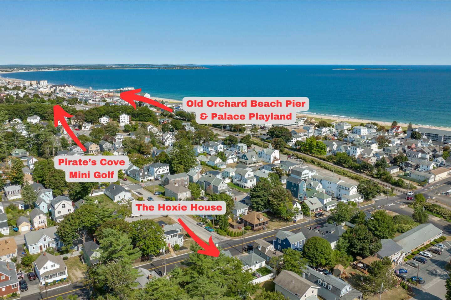 KEY FEATURES: ☀️ Sleeps 11 across 5 spacious bedrooms and 7 beds - 4 queen, 3 twin ☀️ 2 full bathrooms - 1 w/ shower/tub combo, 1 w/ walk-in shower ☀️ Individually controlled ceiling AC units in 4 out of 5 bedrooms ☀️ Massive wrap around deck with seating for 12+ ☀️ Board games and kids toys ☀️ Personal sinks in 4 out of 5 bedrooms to alleviate bathroom lines! ☀️ Beach essentials provided – chairs, umbrella, beach cart ☀️ Washer/dryer on main floor ☀️ Fully equipped kitchen w/ lobster pot & all necessities ☀️ 350MB satellite wifi and TVs in every bedroom ☀️ Family-friendly! Pack n' Play, highchair and other child-friendly amenities provided Here Are A Few Kind Words From Past Guests: “We stayed at this house last year and loved it! It's a great location close to the beach and action but not too close, the house is large enough to fit a big group and the sinks in rooms are a big plus, and there's a yard and nice deck. We decided to return this year and it was even nicer - the house was very clean, there were fresh sheets and fresh towels for all of the guests. Would definitely recommend and would love to stay here again :)” – Kristen L. “This was the second year we’ve stayed in this house. Love the spaciousness and how close it is to the beach. We made great use of the beautiful porch!” – Laurie O. “We stayed here for the weekend and loved it! The House is obviously historic and old but felt that it was still well maintained and spacious. The sinks in each room were convenient. The beach, bar, pier were only walking distance away; which was great. Overall, place was great place to stay for any type of getaway.” – Michelle P. ☆☆ BEDROOMS ☆☆ This coastal Maine gem boasts 5 bedrooms accommodating 11 guests. Bedroom #1 is on the main floor just off the kitchen. This bedroom has a queen bed, a dresser and a closet for extra storage. There is a 32” TV, a heat pump for AC and a ceiling fan to circulate the ocean breeze. The second floor features four generously sized bedrooms. Bedroom #2 features both a queen-size bed and a twin-size bed with a dresser and a closet. This bedroom also has its own sink in the room, a 40” TV, a ceiling AC unit and a ceiling fan. Bedroom #3 features two twin-size beds with a dresser. This bedroom also has its own sink in the room, a 20” TV, a window AC unit and a ceiling fan. Bedrooms #4 and #5 feature queen-size beds with dresser doors built into the bed frames. These bedrooms also have their own sinks in the room, 40” TVs, ceiling AC units, ceiling fans and closets for extra storage. Both of these bedrooms have beautiful ocean views. ☆☆ BATHROOMS ☆☆ There are two full bathrooms in the home, each of them stocked with all the essentials you need for the duration of your stay. The first bath is located on the main floor right off the kitchen for first floor convenience. This bathroom is split between two rooms. One has the walk-in shower and the washer/dryer, and the other room right around the corner has the toilet and sink, making showering for larger groups that much more convenient. The other full bathroom is located on the second floor right outside bedrooms #2 and #3. This bathroom has a shower/tub combo, perfect for bathing the kids after a day at the beach! ☆☆ KITCHEN, DINING AND LIVING ROOM ☆☆ The bright and airy kitchen is fully equipped with all the appliances, utensils and cookware you need to feel at home. The dining table seats six comfortably and is set in the middle of the kitchen. There is a coffee bar fully stocked with all the essentials needed for the coffee lovers in your group. Just around the corner is the spacious, open living room with large windows that let in ample natural light. This room features a beautiful brick fireplace and a 55" Smart TV, allowing full access to your favorite streaming services. The front door opens up to the wrap around deck, allowing the soothing ocean breeze into the home. The living room has a heat pump for AC as well as a ceiling fan. ☆☆ OUTSIDE SPACE ☆☆ The rock of the outdoor space, and frankly the entire home, is the spacious wrap around deck that has ample room for seating, lounging and enjoying a family meal outdoors. There’s a five-burner grill for guest use located on the deck, as well as a dining table that seats 6 comfortably. The Hoxie House has a medium sized, fenced in back yard for the kids to play lawn games and sprawl out in the grass after a day exploring OOB. ☆☆ ADDITIONAL GUEST EXPERIENCES ☆☆ Looking to make your stay extra special? We partner with local businesses to help take your trip to the next level. We’re happy to help coordinate the following services: 🛶 Kayak & SUP Rentals (inquire about 10% off!) 🚲 Bike Rentals (inquire about 10% off!) 🍽️ Private Chef 💆🏻♀️ In-home Massage ★☆ We can't wait to welcome you to Old Orchard Beach and ensure your stay is nothing short of extraordinary! ☆★
