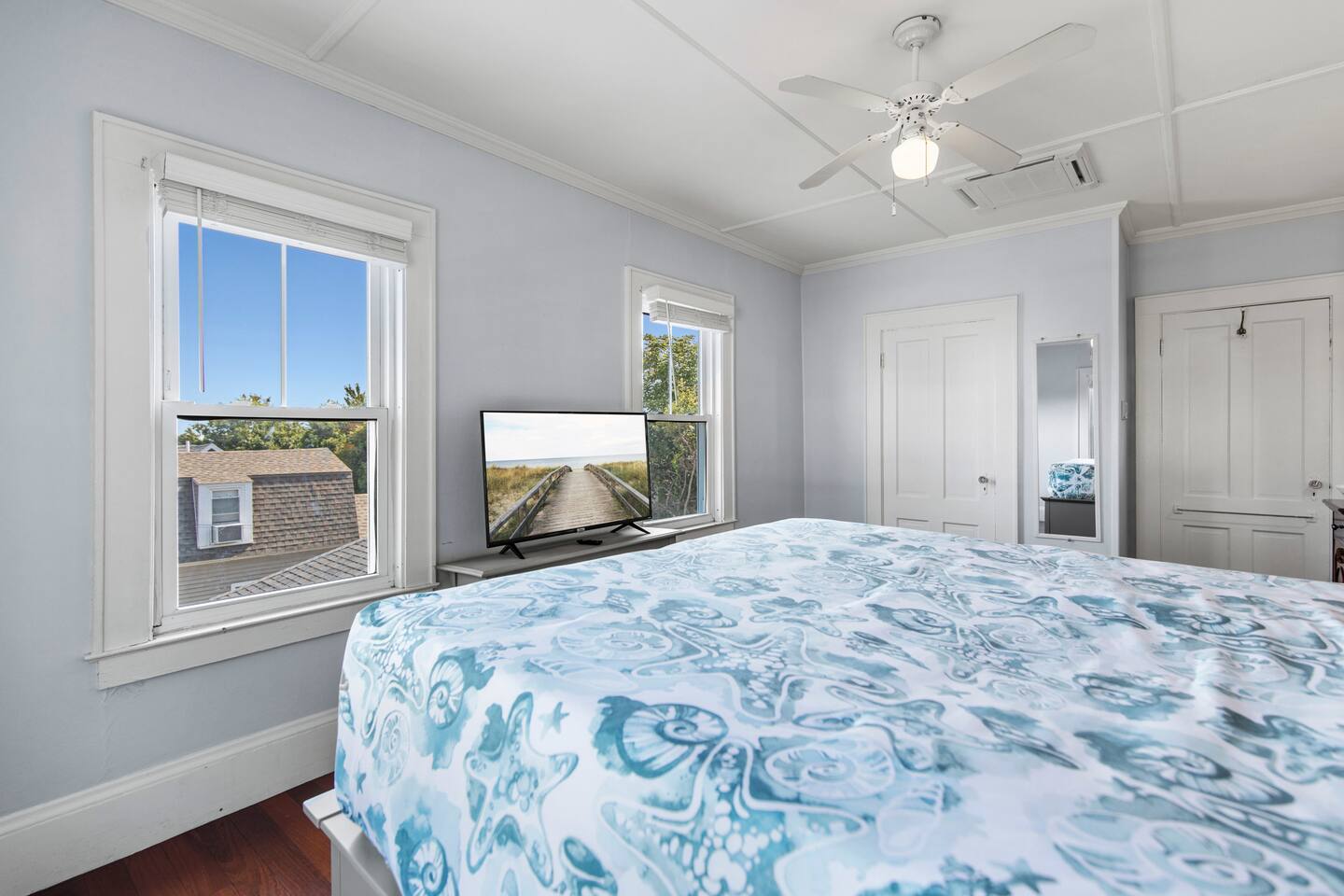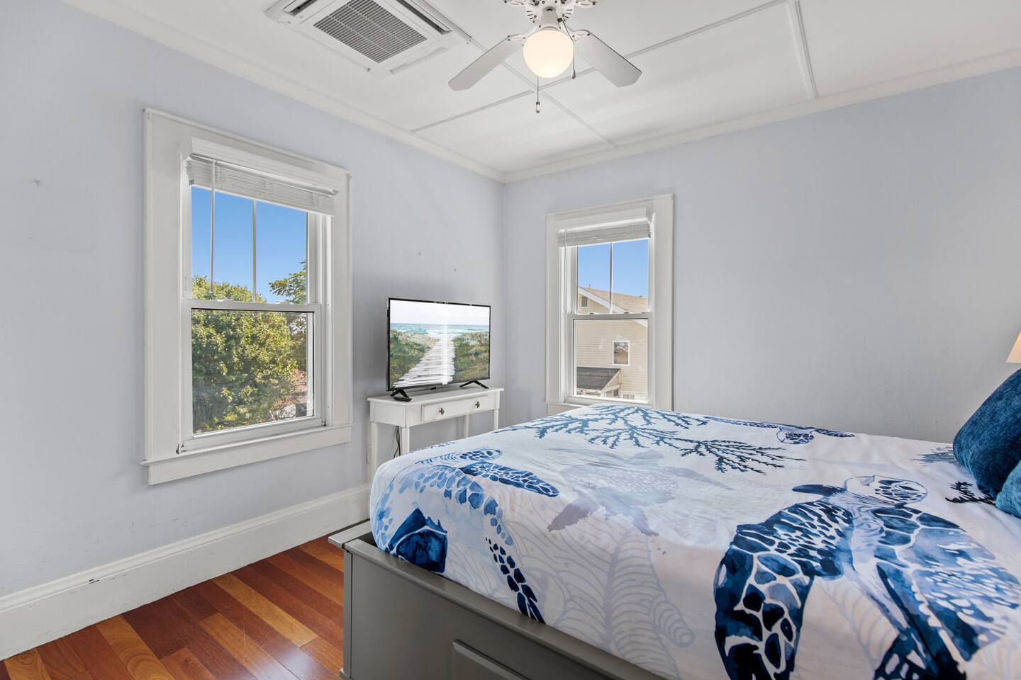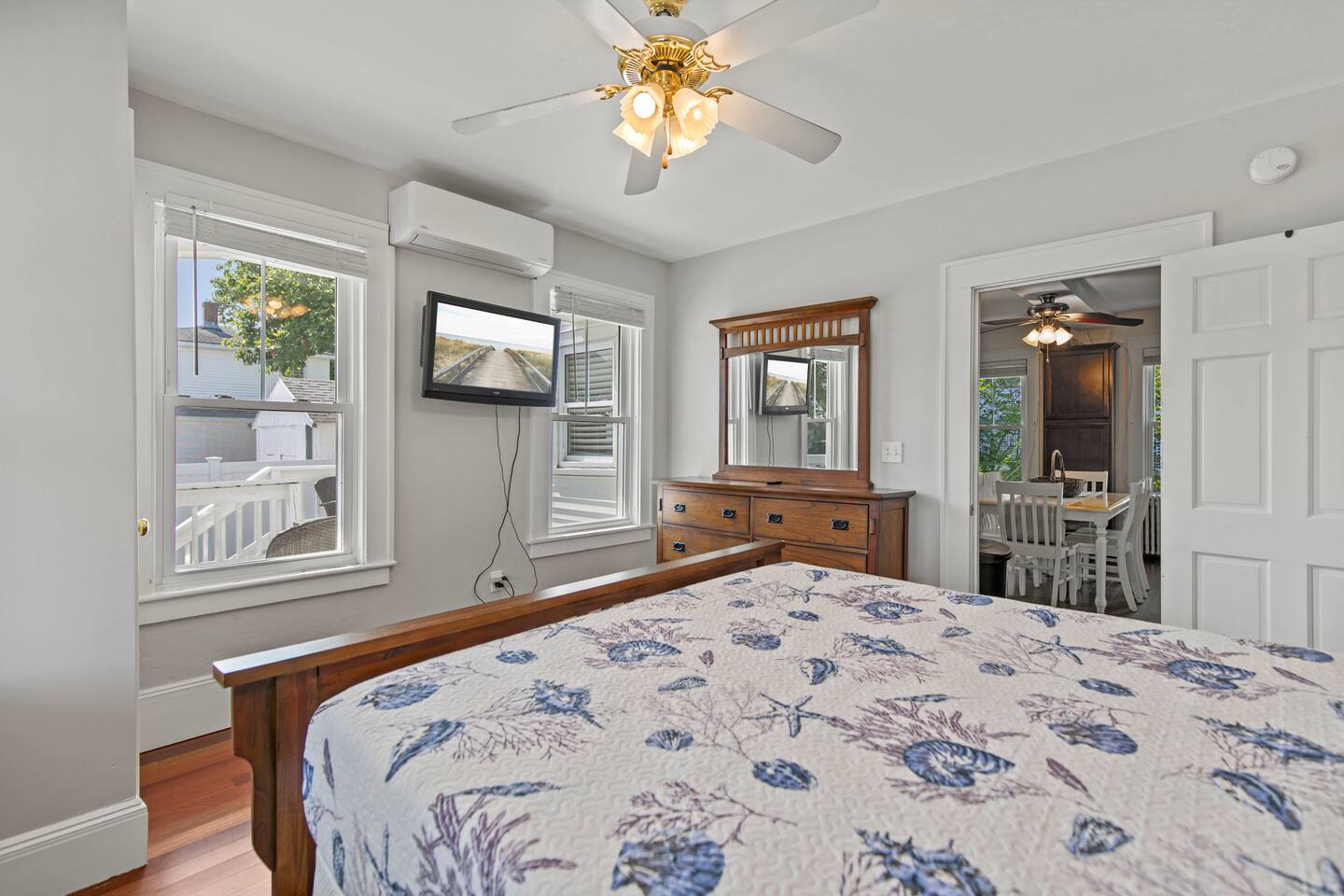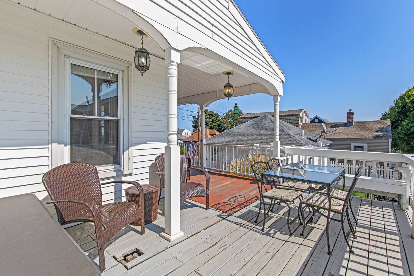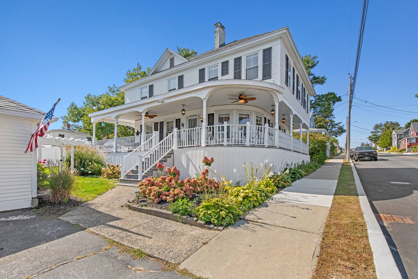 KEY FEATURES: ☀️ Sleeps 11 across 5 spacious bedrooms and 7 beds - 4 queen, 3 twin ☀️ 2 full bathrooms - 1 w/ shower/tub combo, 1 w/ walk-in shower ☀️ Individually controlled ceiling AC units in 4 out of 5 bedrooms ☀️ Massive wrap around deck with seating for 12+ ☀️ Board games and kids toys ☀️ Personal sinks in 4 out of 5 bedrooms to alleviate bathroom lines! ☀️ Beach essentials provided – chairs, umbrella, beach cart ☀️ Washer/dryer on main floor ☀️ Fully equipped kitchen w/ lobster pot & all necessities ☀️ 350MB satellite wifi and TVs in every bedroom ☀️ Family-friendly! Pack n' Play, highchair and other child-friendly amenities provided Here Are A Few Kind Words From Past Guests: “We stayed at this house last year and loved it! It's a great location close to the beach and action but not too close, the house is large enough to fit a big group and the sinks in rooms are a big plus, and there's a yard and nice deck. We decided to return this year and it was even nicer - the house was very clean, there were fresh sheets and fresh towels for all of the guests. Would definitely recommend and would love to stay here again :)” – Kristen L. “This was the second year we’ve stayed in this house. Love the spaciousness and how close it is to the beach. We made great use of the beautiful porch!” – Laurie O. “We stayed here for the weekend and loved it! The House is obviously historic and old but felt that it was still well maintained and spacious. The sinks in each room were convenient. The beach, bar, pier were only walking distance away; which was great. Overall, place was great place to stay for any type of getaway.” – Michelle P. ☆☆ BEDROOMS ☆☆ This coastal Maine gem boasts 5 bedrooms accommodating 11 guests. Bedroom #1 is on the main floor just off the kitchen. This bedroom has a queen bed, a dresser and a closet for extra storage. There is a 32” TV, a heat pump for AC and a ceiling fan to circulate the ocean breeze. The second floor features four generously sized bedrooms. Bedroom #2 features both a queen-size bed and a twin-size bed with a dresser and a closet. This bedroom also has its own sink in the room, a 40” TV, a ceiling AC unit and a ceiling fan. Bedroom #3 features two twin-size beds with a dresser. This bedroom also has its own sink in the room, a 20” TV, a window AC unit and a ceiling fan. Bedrooms #4 and #5 feature queen-size beds with dresser doors built into the bed frames. These bedrooms also have their own sinks in the room, 40” TVs, ceiling AC units, ceiling fans and closets for extra storage. Both of these bedrooms have beautiful ocean views. ☆☆ BATHROOMS ☆☆ There are two full bathrooms in the home, each of them stocked with all the essentials you need for the duration of your stay. The first bath is located on the main floor right off the kitchen for first floor convenience. This bathroom is split between two rooms. One has the walk-in shower and the washer/dryer, and the other room right around the corner has the toilet and sink, making showering for larger groups that much more convenient. The other full bathroom is located on the second floor right outside bedrooms #2 and #3. This bathroom has a shower/tub combo, perfect for bathing the kids after a day at the beach! ☆☆ KITCHEN, DINING AND LIVING ROOM ☆☆ The bright and airy kitchen is fully equipped with all the appliances, utensils and cookware you need to feel at home. The dining table seats six comfortably and is set in the middle of the kitchen. There is a coffee bar fully stocked with all the essentials needed for the coffee lovers in your group. Just around the corner is the spacious, open living room with large windows that let in ample natural light. This room features a beautiful brick fireplace and a 55" Smart TV, allowing full access to your favorite streaming services. The front door opens up to the wrap around deck, allowing the soothing ocean breeze into the home. The living room has a heat pump for AC as well as a ceiling fan. ☆☆ OUTSIDE SPACE ☆☆ The rock of the outdoor space, and frankly the entire home, is the spacious wrap around deck that has ample room for seating, lounging and enjoying a family meal outdoors. There’s a five-burner grill for guest use located on the deck, as well as a dining table that seats 6 comfortably. The Hoxie House has a medium sized, fenced in back yard for the kids to play lawn games and sprawl out in the grass after a day exploring OOB. ☆☆ ADDITIONAL GUEST EXPERIENCES ☆☆ Looking to make your stay extra special? We partner with local businesses to help take your trip to the next level. We’re happy to help coordinate the following services: 🛶 Kayak & SUP Rentals (inquire about 10% off!) 🚲 Bike Rentals (inquire about 10% off!) 🍽️ Private Chef 💆🏻♀️ In-home Massage ★☆ We can't wait to welcome you to Old Orchard Beach and ensure your stay is nothing short of extraordinary! ☆★
