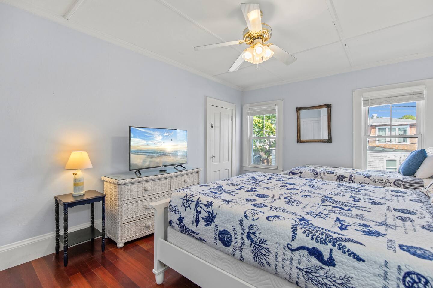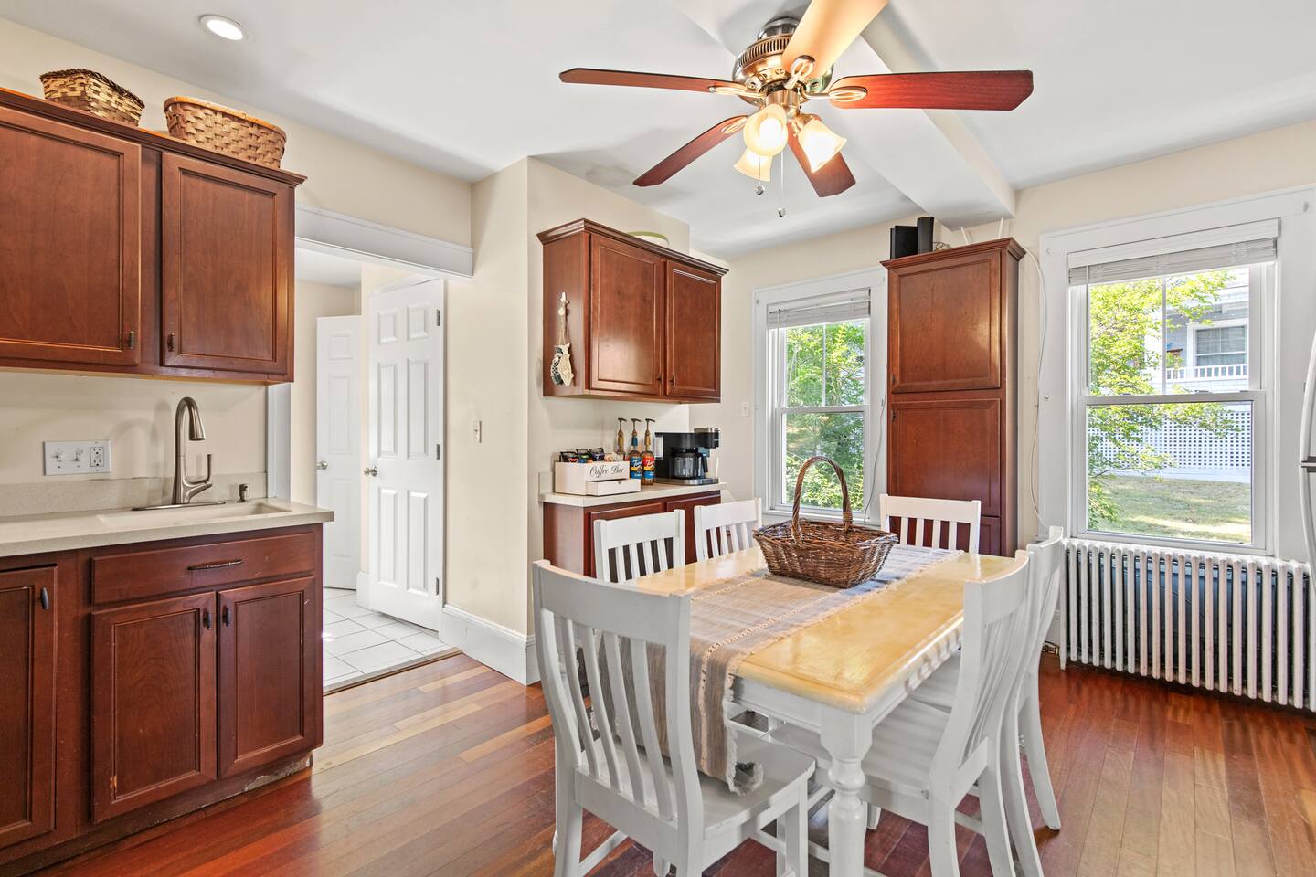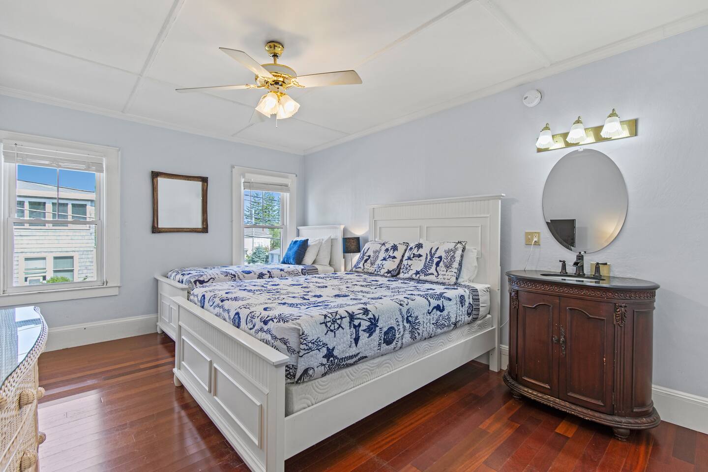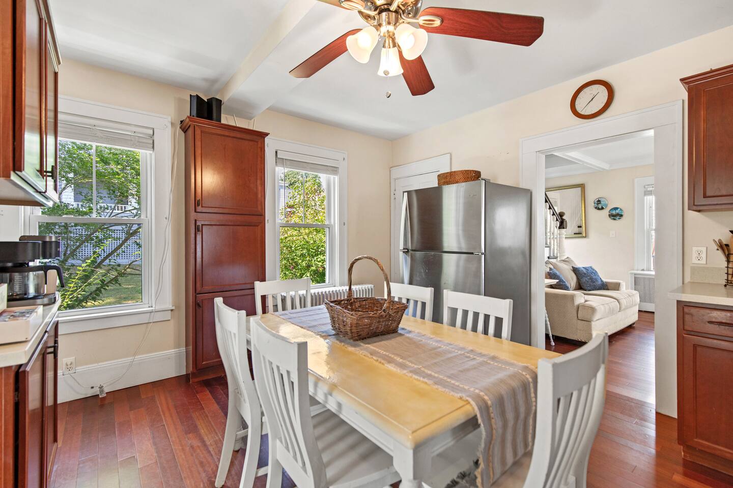KEY FEATURES: ☀️ Sleeps 11 across 5 spacious bedrooms and 7 beds - 4 queen, 3 twin ☀️ 2 full bathrooms - 1 w/ shower/tub combo, 1 w/ walk-in shower ☀️ Individually controlled ceiling AC units in 4 out of 5 bedrooms ☀️ Massive wrap around deck with seating for 12+ ☀️ Board games and kids toys ☀️ Personal sinks in 4 out of 5 bedrooms to alleviate bathroom lines! ☀️ Beach essentials provided – chairs, umbrella, beach cart ☀️ Washer/dryer on main floor ☀️ Fully equipped kitchen w/ lobster pot & all necessities ☀️ 350MB satellite wifi and TVs in every bedroom ☀️ Family-friendly! Pack n' Play, highchair and other child-friendly amenities provided Here Are A Few Kind Words From Past Guests: “We stayed at this house last year and loved it! It's a great location close to the beach and action but not too close, the house is large enough to fit a big group and the sinks in rooms are a big plus, and there's a yard and nice deck. We decided to return this year and it was even nicer - the house was very clean, there were fresh sheets and fresh towels for all of the guests. Would definitely recommend and would love to stay here again :)” – Kristen L. “This was the second year we’ve stayed in this house. Love the spaciousness and how close it is to the beach. We made great use of the beautiful porch!” – Laurie O. “We stayed here for the weekend and loved it! The House is obviously historic and old but felt that it was still well maintained and spacious. The sinks in each room were convenient. The beach, bar, pier were only walking distance away; which was great. Overall, place was great place to stay for any type of getaway.” – Michelle P. ☆☆ BEDROOMS ☆☆ This coastal Maine gem boasts 5 bedrooms accommodating 11 guests. Bedroom #1 is on the main floor just off the kitchen. This bedroom has a queen bed, a dresser and a closet for extra storage. There is a 32” TV, a heat pump for AC and a ceiling fan to circulate the ocean breeze. The second floor features four generously sized bedrooms. Bedroom #2 features both a queen-size bed and a twin-size bed with a dresser and a closet. This bedroom also has its own sink in the room, a 40” TV, a ceiling AC unit and a ceiling fan. Bedroom #3 features two twin-size beds with a dresser. This bedroom also has its own sink in the room, a 20” TV, a window AC unit and a ceiling fan. Bedrooms #4 and #5 feature queen-size beds with dresser doors built into the bed frames. These bedrooms also have their own sinks in the room, 40” TVs, ceiling AC units, ceiling fans and closets for extra storage. Both of these bedrooms have beautiful ocean views. ☆☆ BATHROOMS ☆☆ There are two full bathrooms in the home, each of them stocked with all the essentials you need for the duration of your stay. The first bath is located on the main floor right off the kitchen for first floor convenience. This bathroom is split between two rooms. One has the walk-in shower and the washer/dryer, and the other room right around the corner has the toilet and sink, making showering for larger groups that much more convenient. The other full bathroom is located on the second floor right outside bedrooms #2 and #3. This bathroom has a shower/tub combo, perfect for bathing the kids after a day at the beach! ☆☆ KITCHEN, DINING AND LIVING ROOM ☆☆ The bright and airy kitchen is fully equipped with all the appliances, utensils and cookware you need to feel at home. The dining table seats six comfortably and is set in the middle of the kitchen. There is a coffee bar fully stocked with all the essentials needed for the coffee lovers in your group. Just around the corner is the spacious, open living room with large windows that let in ample natural light. This room features a beautiful brick fireplace and a 55" Smart TV, allowing full access to your favorite streaming services. The front door opens up to the wrap around deck, allowing the soothing ocean breeze into the home. The living room has a heat pump for AC as well as a ceiling fan. ☆☆ OUTSIDE SPACE ☆☆ The rock of the outdoor space, and frankly the entire home, is the spacious wrap around deck that has ample room for seating, lounging and enjoying a family meal outdoors. There’s a five-burner grill for guest use located on the deck, as well as a dining table that seats 6 comfortably. The Hoxie House has a medium sized, fenced in back yard for the kids to play lawn games and sprawl out in the grass after a day exploring OOB. ☆☆ ADDITIONAL GUEST EXPERIENCES ☆☆ Looking to make your stay extra special? We partner with local businesses to help take your trip to the next level. We’re happy to help coordinate the following services: 🛶 Kayak & SUP Rentals (inquire about 10% off!) 🚲 Bike Rentals (inquire about 10% off!) 🍽️ Private Chef 💆🏻♀️ In-home Massage ★☆ We can't wait to welcome you to Old Orchard Beach and ensure your stay is nothing short of extraordinary! ☆★