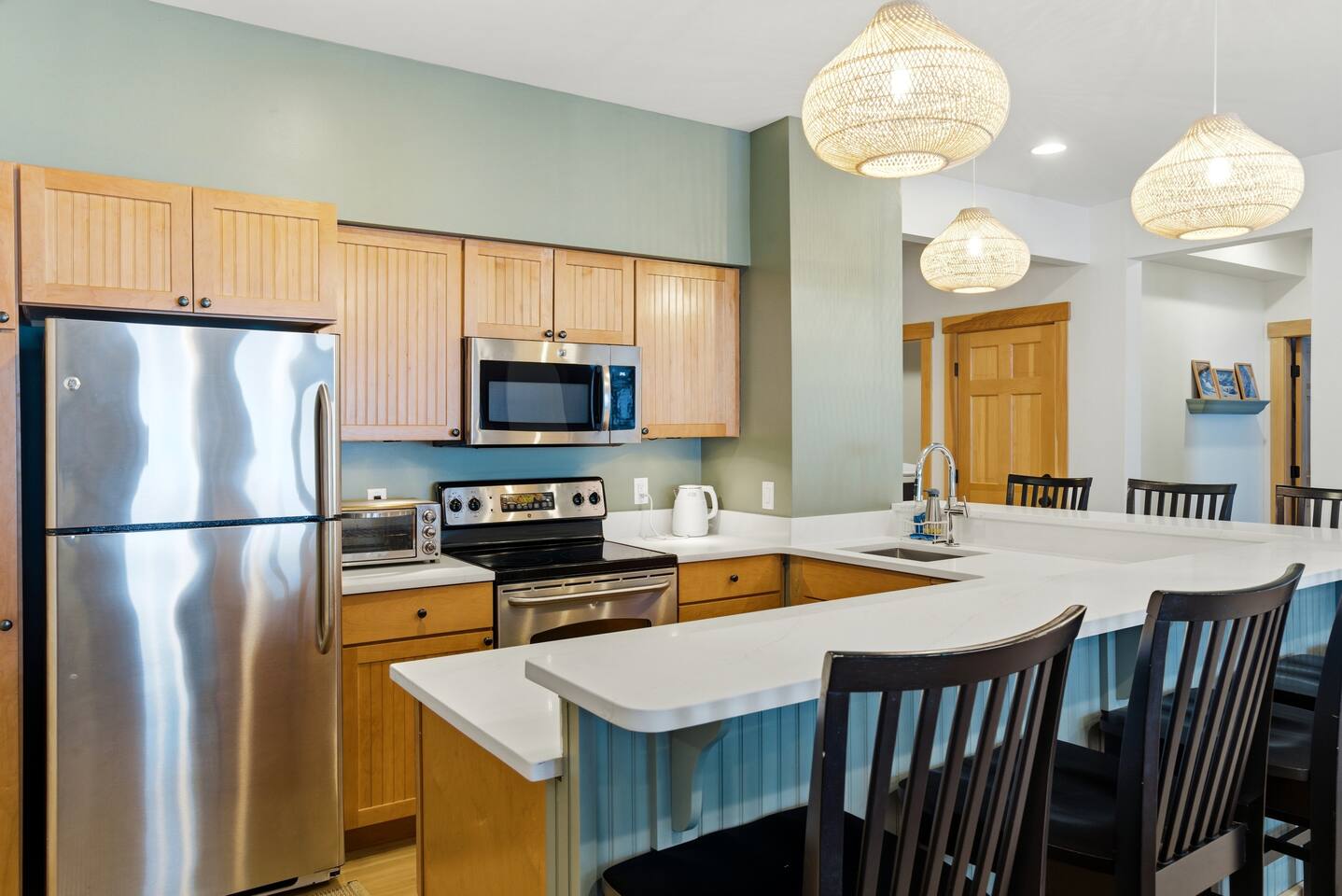 Located in the Viking Village neighborhood of Sunday River, you truly can’t beat this central location. 🚶 5-minute walk to the Roadrunner Trail, the footbridge to South Ridge Lodge, the 6-person Chondola, Foggy Goggle, ski rentals & Mountain Grocer 🚗 1-minute drive to Barker Lodge for easy lift access