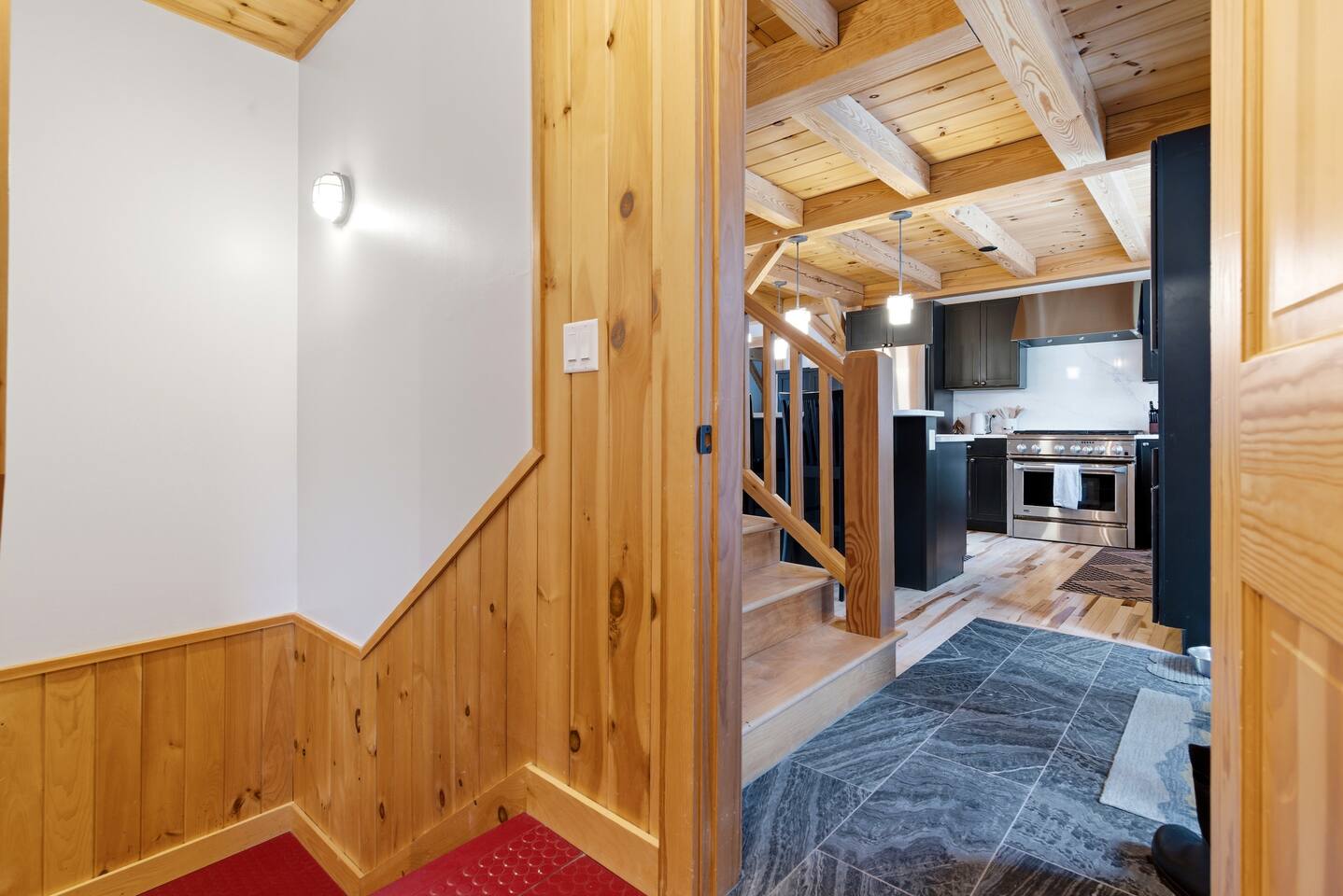 ποΈ Sleeps 16 β 2 Kings + 6 Queens across 3 spacious bedrooms β·οΈ Ski-In/Ski-Out Access β Quick 5-minute walk to lifts & trails π± Game Room Fun β Pool table, shuffleboard & Mortal Kombat arcade game πΆ Dog-Friendly β Bring your furry family members πΏ Gear Storage - Spacious mud room to store all your gear πΆ High-Speed WiFi + Smart 65" TV in the living room π§Ί In-Unit Washer & Dryer β Fresh gear, no hassle ποΈ Flexible Rental Option β Duplex layout; inquire about renting the lower level too (entire home sleeps up to 22 guests) β¨οΈ New Stone Patio + Hot Tub Coming Summer 2026 ββ BEDROOMS ββ Each bedroom is thoughtfully designed for comfort and relaxation, featuring quality linens, plush bedding, and plenty of storage. Primary Suite: King bed, private ensuite bathroom, dresser & closet. Conveniently located just off the kitchen/dining area. Bedroom 2: King bed, dresser & view of the mountain. Located across the hall from bedroom 3. Bedroom 3: Six Queen beds, closet & dresser β perfect for kids, cousins, or group trips. Located at the end of the hallway, away from the main living area. ββ BATHROOMS ββ Two beautifully appointed bathrooms make getting ready easy β even with a full house. Bathroom 1 (Primary Ensuite) β Dual sinks with spacious walk-in shower Bathroom 2 β Full bathroom with walk-in shower located outside bedrooms 2 and 3 Each bathroom is stocked with plush towels, shampoo, conditioner, and body wash for a stress-free stay. ββ KITCHEN, DINING & LIVING AREAS ββ This apartment features an open-concept living area. The bright and airy main level features an open kitchen, dining, and living space with cathedral ceilings opening up to a 2nd story deck. π³ Fully equipped chefβs kitchen with high-end appliances π½οΈ Dining table seating for 5 + kitchen island seating for 6 πΊ 65β Smart TV π Direct access to the 2nd story deck Whether youβre cooking a big family breakfast before hitting the slopes or winding down by the fire, this space was designed for gathering. ββ OUTDOOR SPACE ββ Step outside and fully embrace Maineβs mountain lifestyle. β·οΈ Ski-In/Ski-Out Convenience β Just a 5-minute walk to Roadrunner Trail and Chondola List π 2nd Story Deck + Gas Grill β Ideal for summer cookouts β¨οΈ Hot Tub (Coming Summer 2026) β Inquire for installation updates ββ ENHANCE YOUR STAY ββ Take your Sunday River vacation to the next level with optional local add-ons: π©π»βπ³ Private Chef Experience β Enjoy a gourmet dinner without leaving the house ππ»ββοΈ In-Home Massage Services β Unwind after a day on the slopes