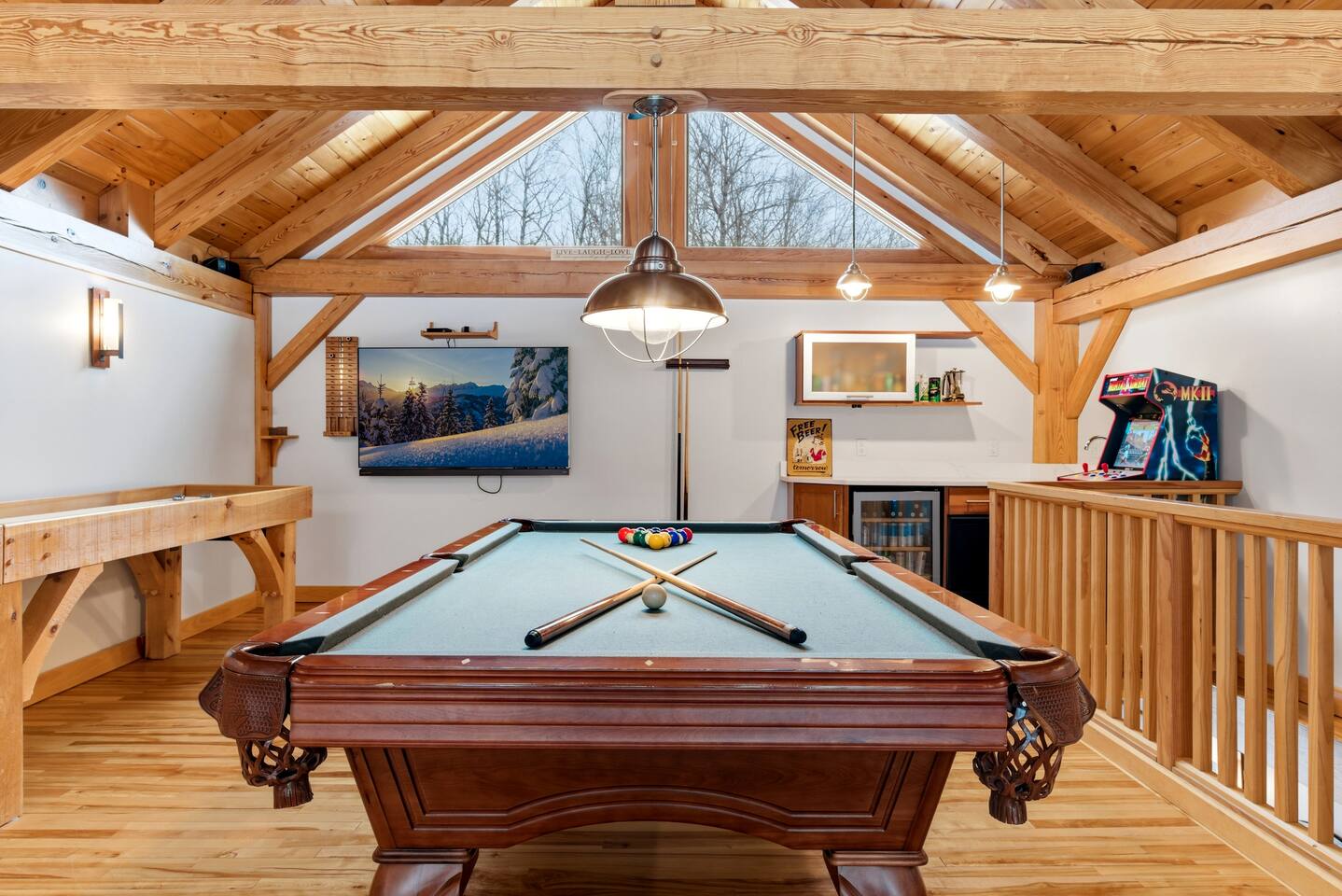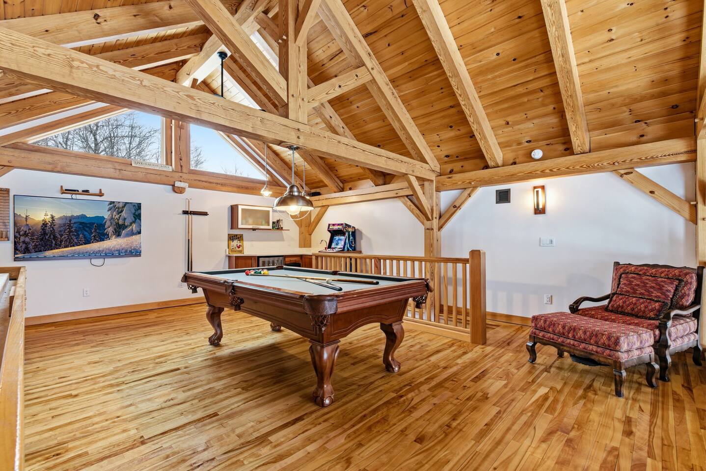 Welcome to Viking Village Chalet - a spacious, modern mountain retreat designed for unforgettable group getaways at Sunday River. With room for up to 16 guests and a game room featuring pool and shuffleboard, this home was built for gathering. Whether you're traveling with multiple families, hosting a ski trip with friends, or planning a special celebration, everyone has space to spread out and come together.